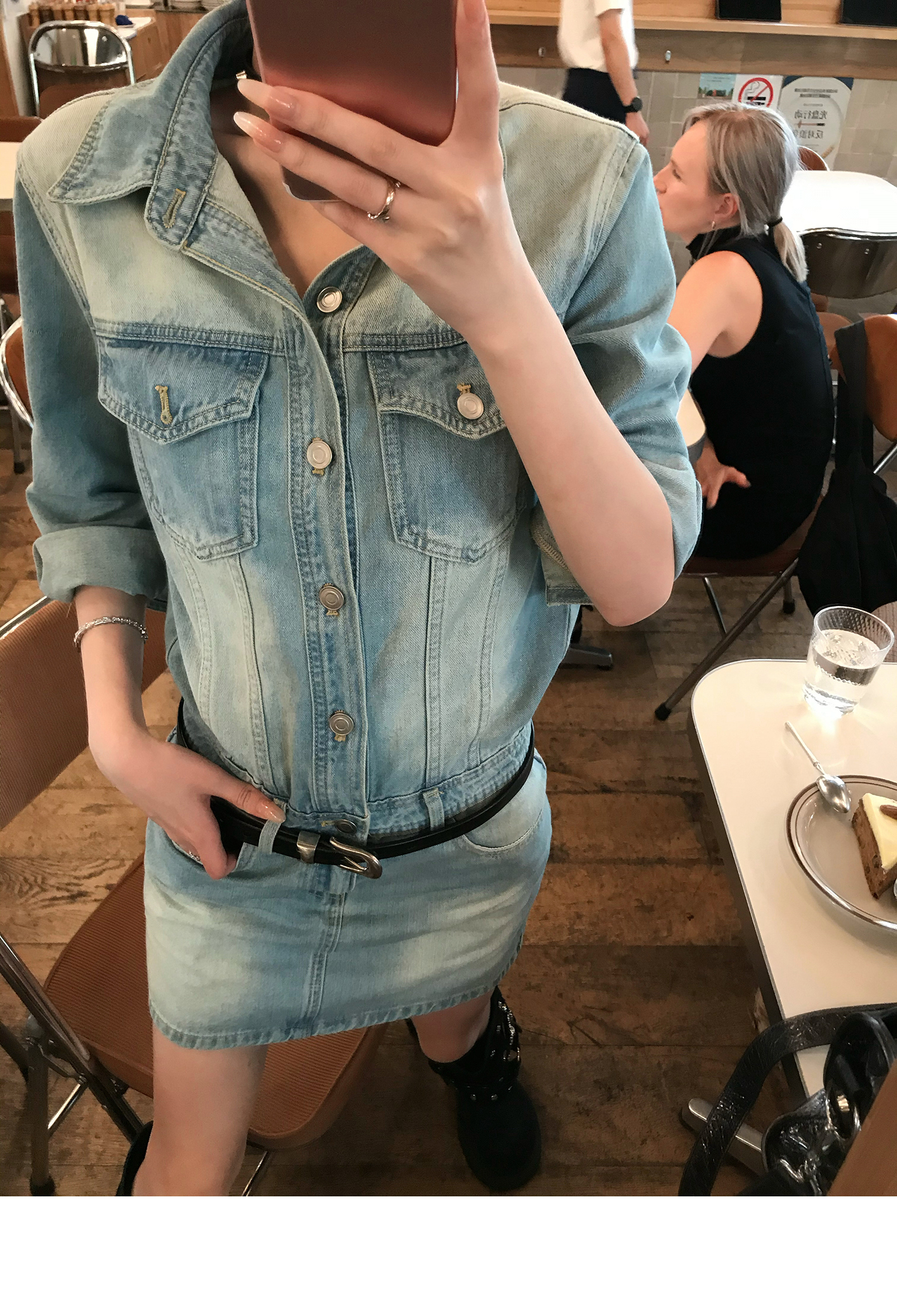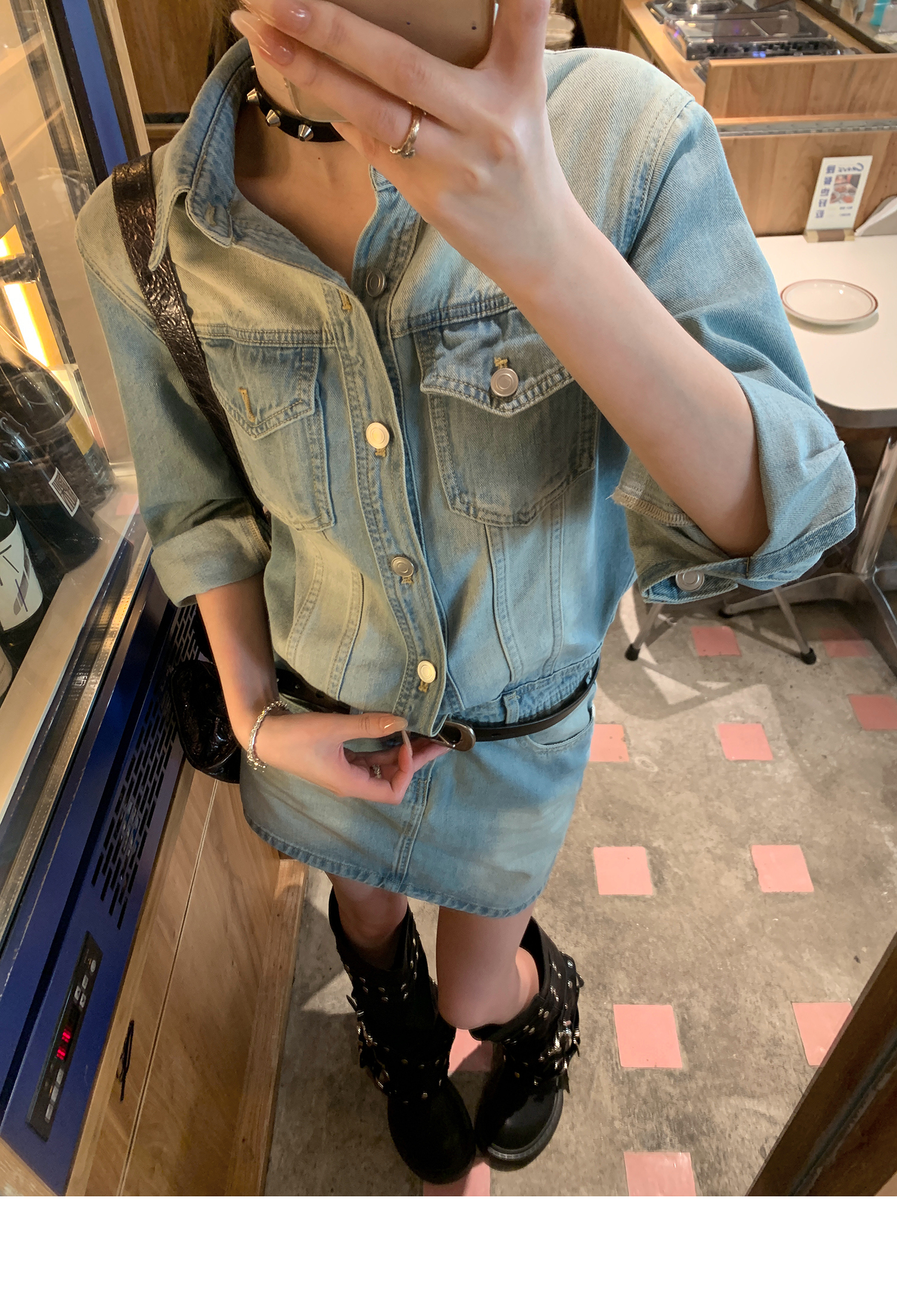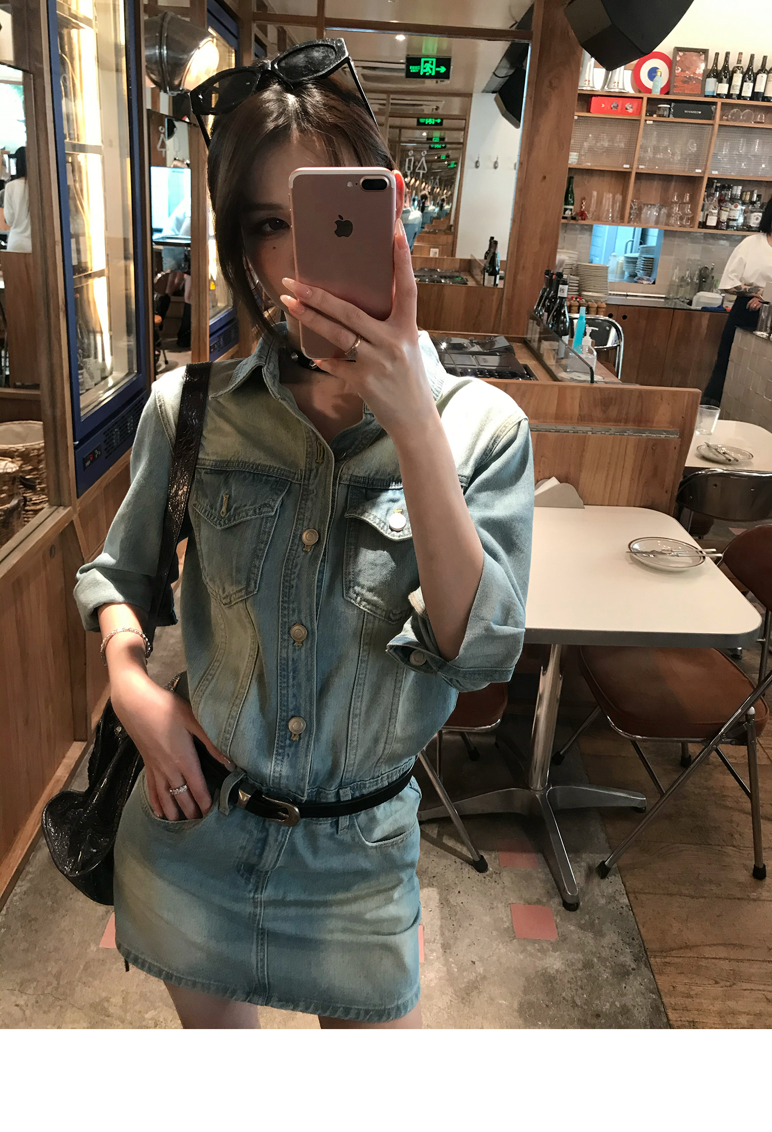 [90s High Beauty Hot Girl] Short Denim Dress - Heavy Industry Collar Style
