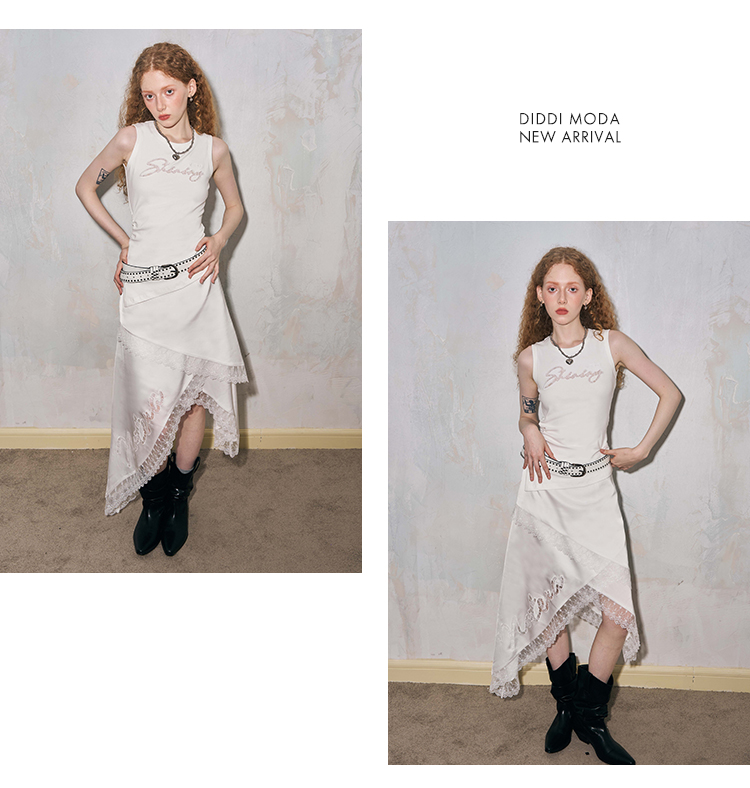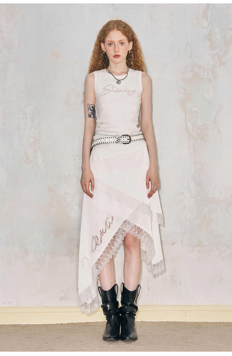 الدانتيل جوفاء تانك الأعلى غير المتماثلة
