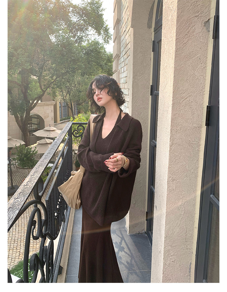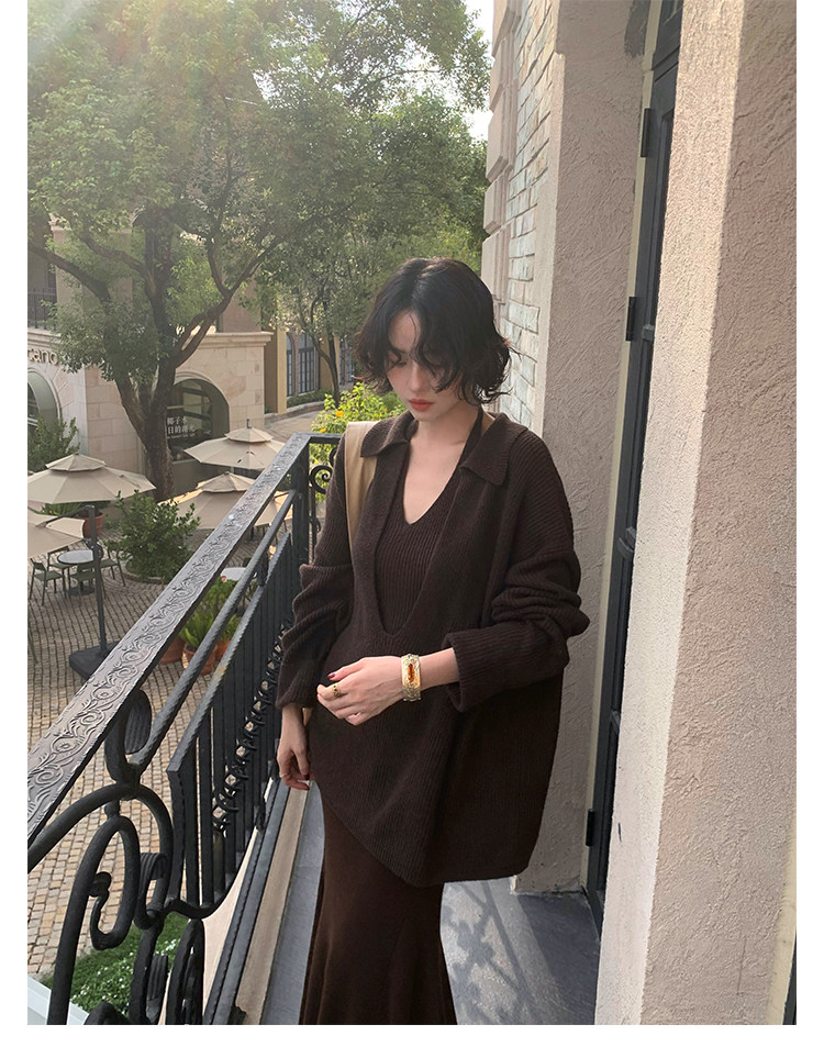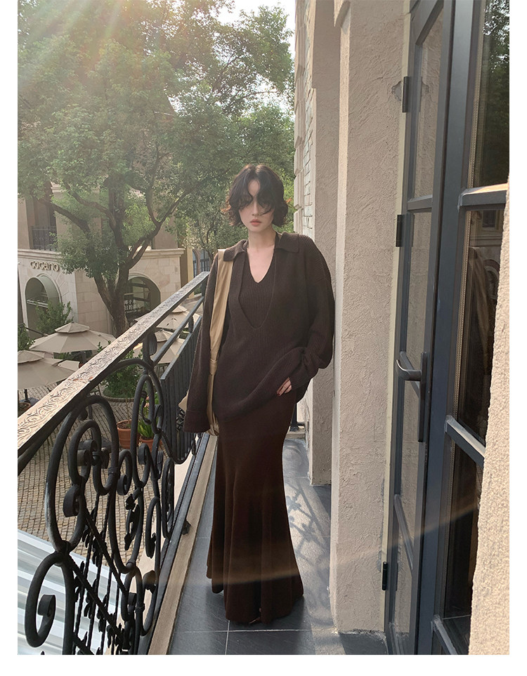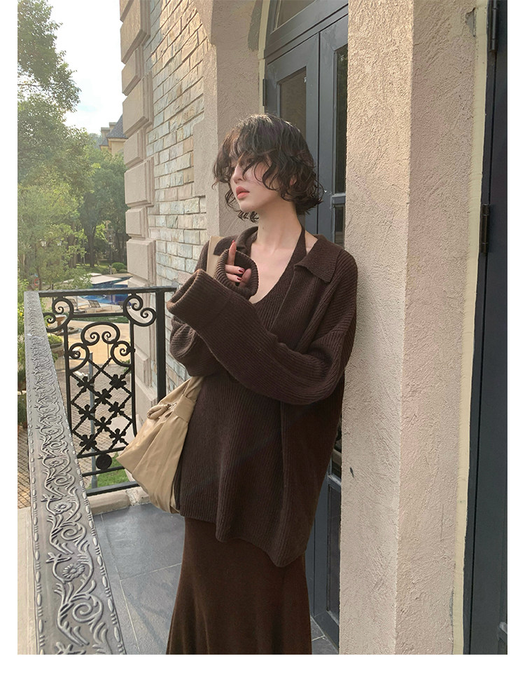 Jiu Wu Wool-Blend Layered Knit Two-Piece Set