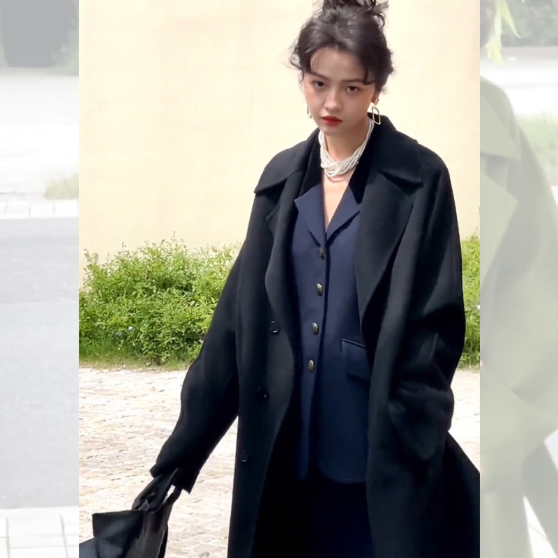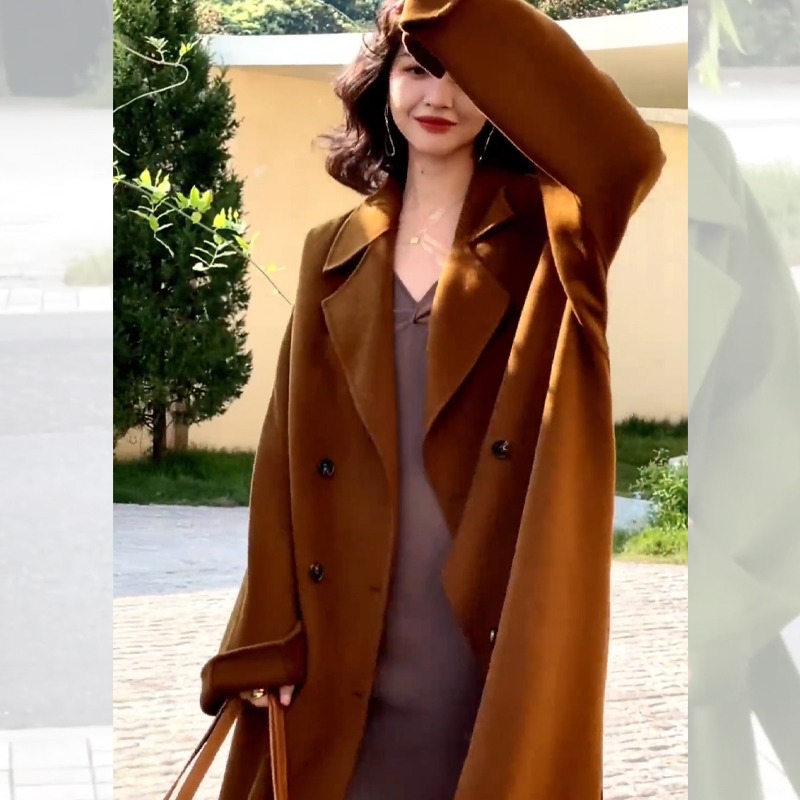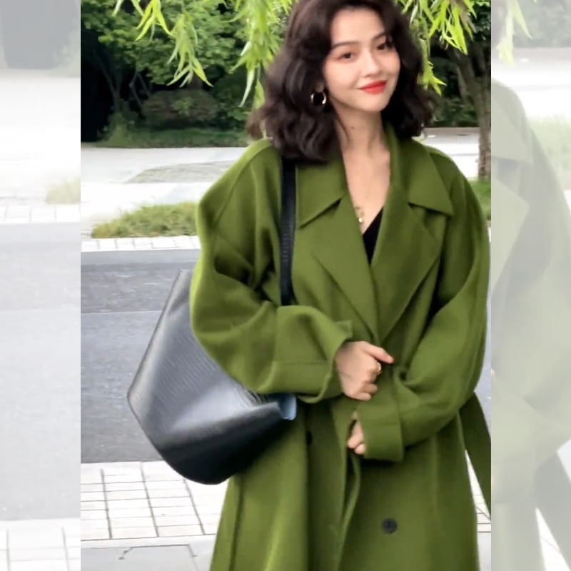 Green Reversible Cashmere Coat – Hepburn-Inspired Midi Lapel Jacket