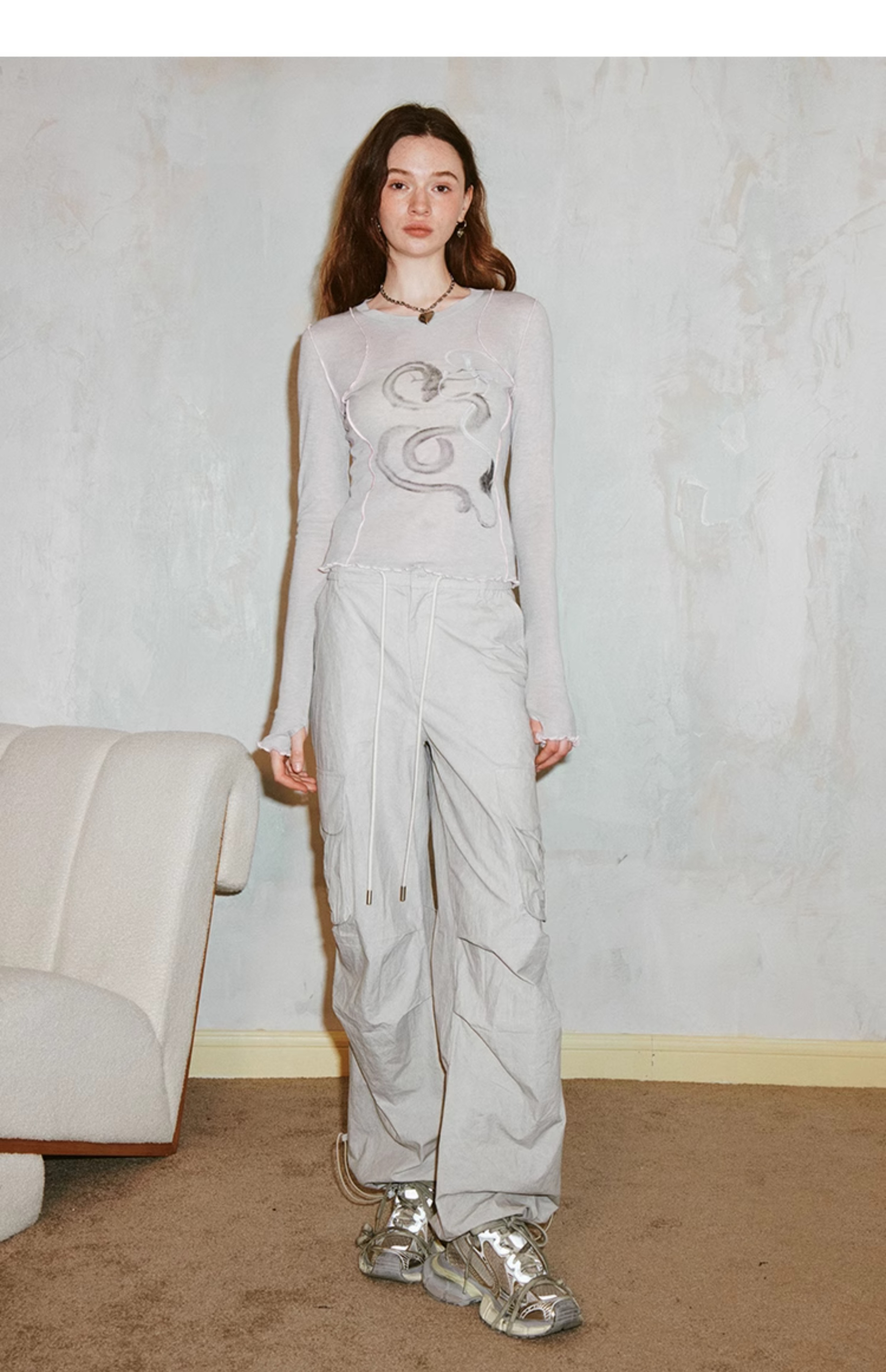 سروال رياضي برباط رمادي