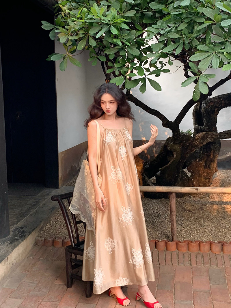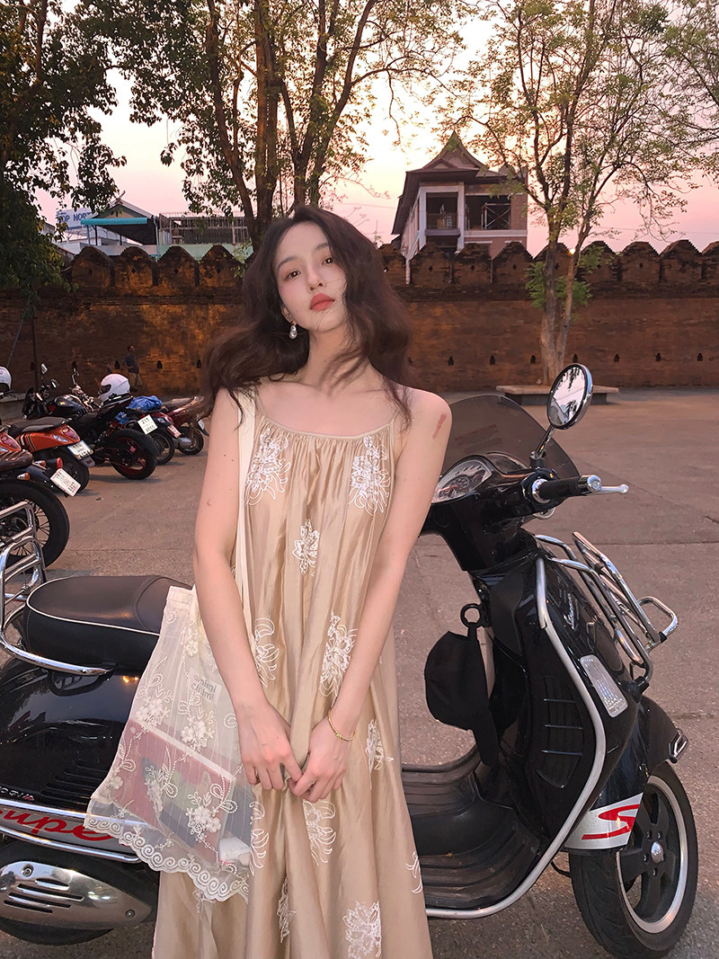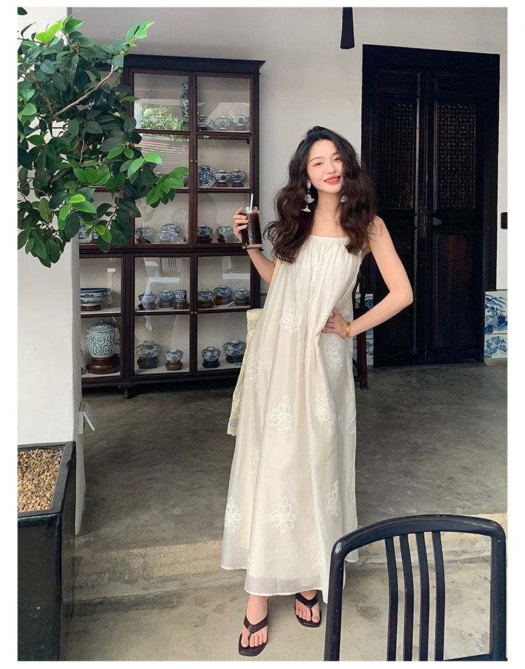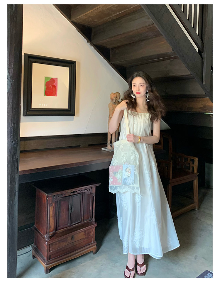 الرجعية الأبيض فستان الحمالة ضوء القمر