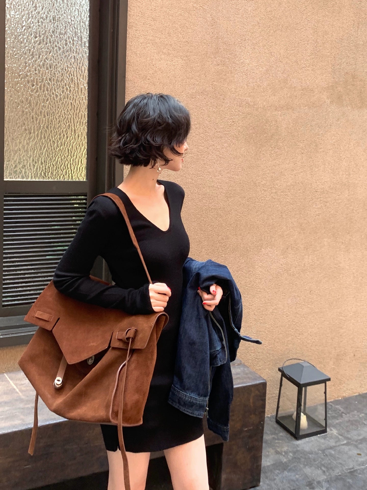 Fine Wool-Blend V-Neck Knit Inner Dress – Hong Kong Retro Fall Collection