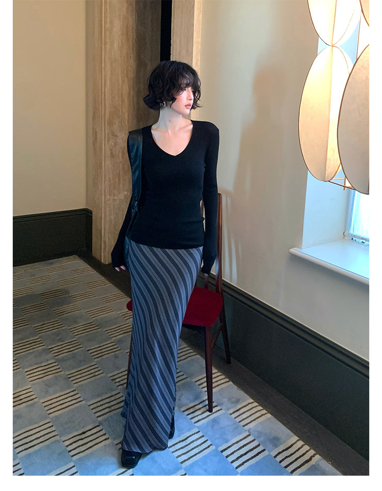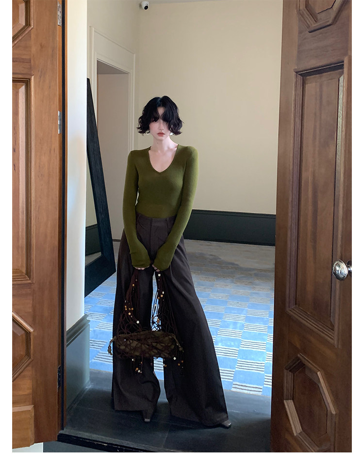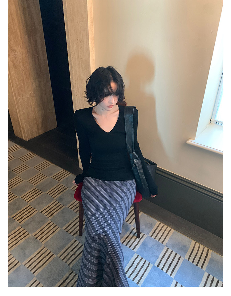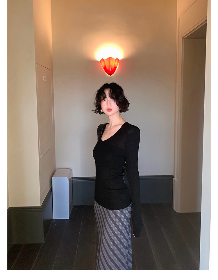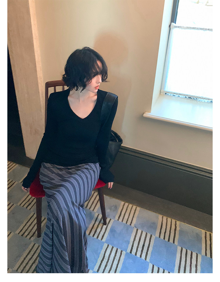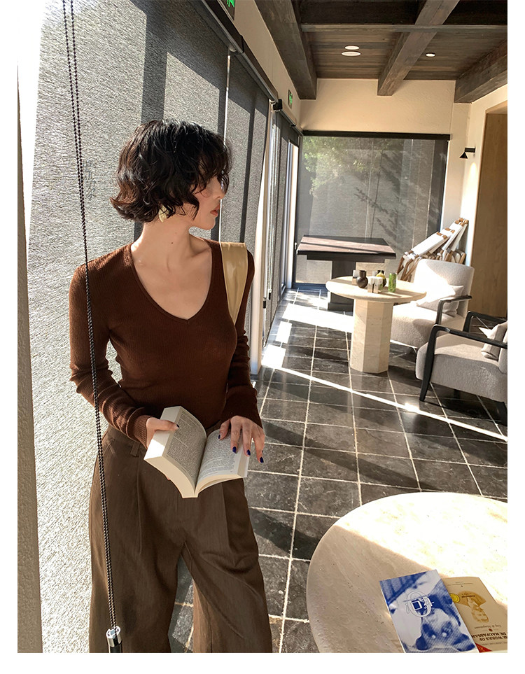 Slim V-Neck Long-Sleeve Knit Top – Hong Kong Retro Autumn Base Layer