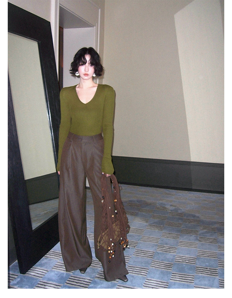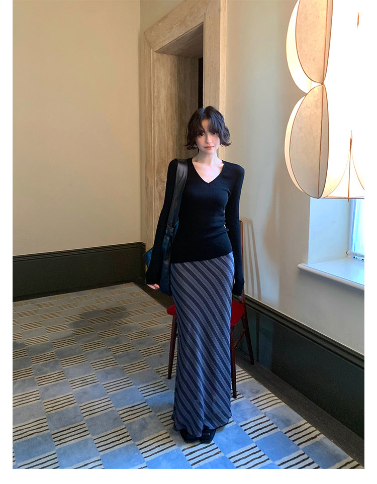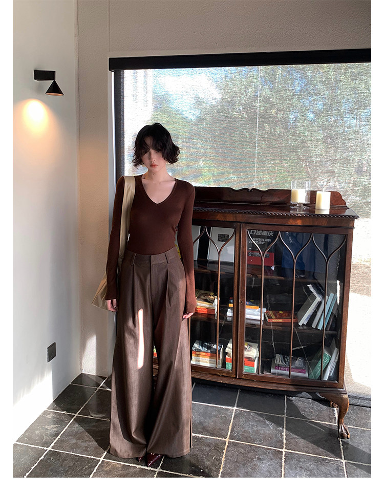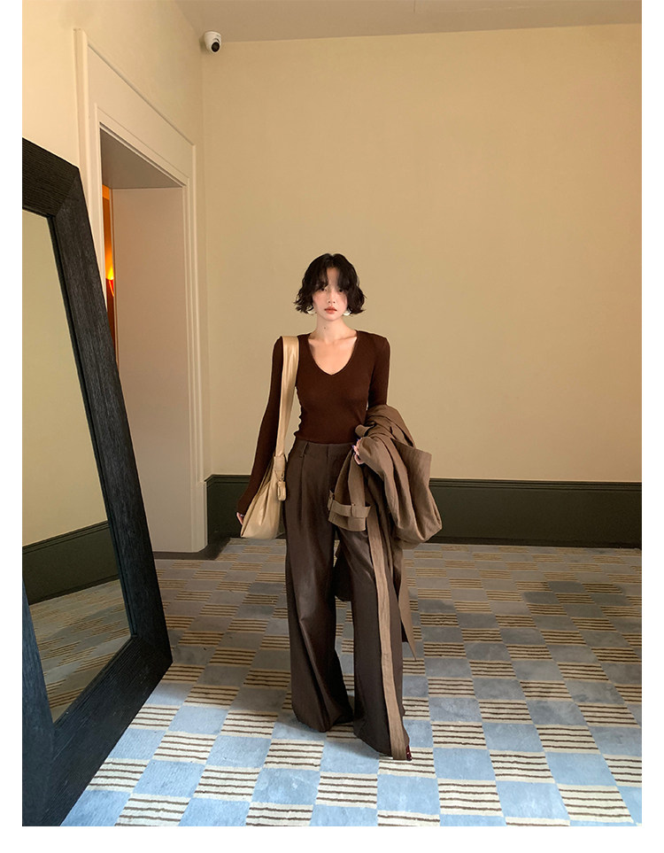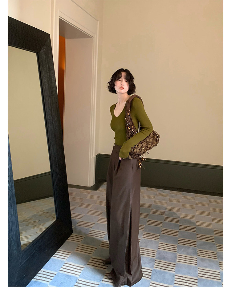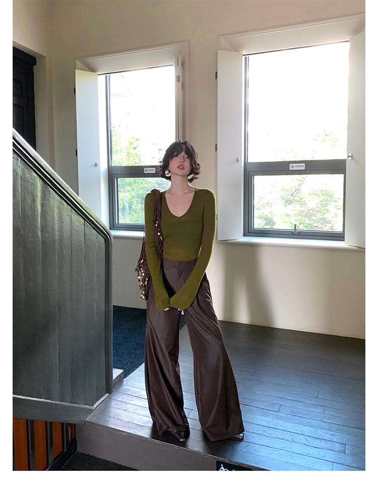 Slim V-Neck Long-Sleeve Knit Top – Hong Kong Retro Autumn Base Layer