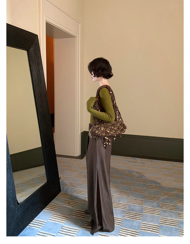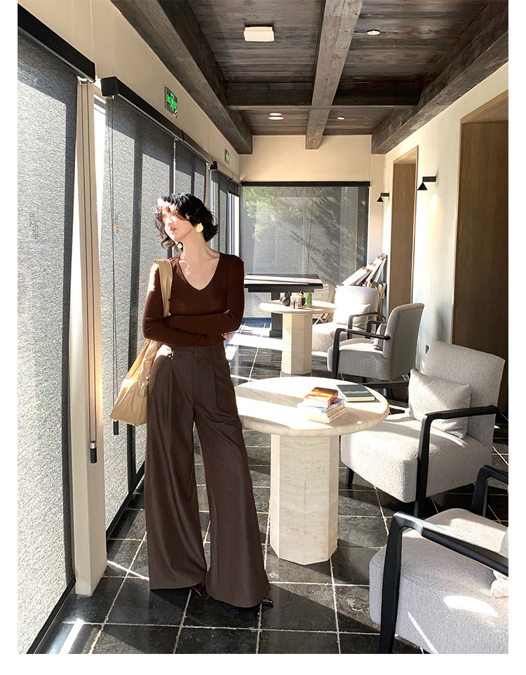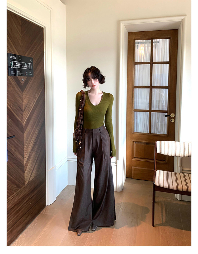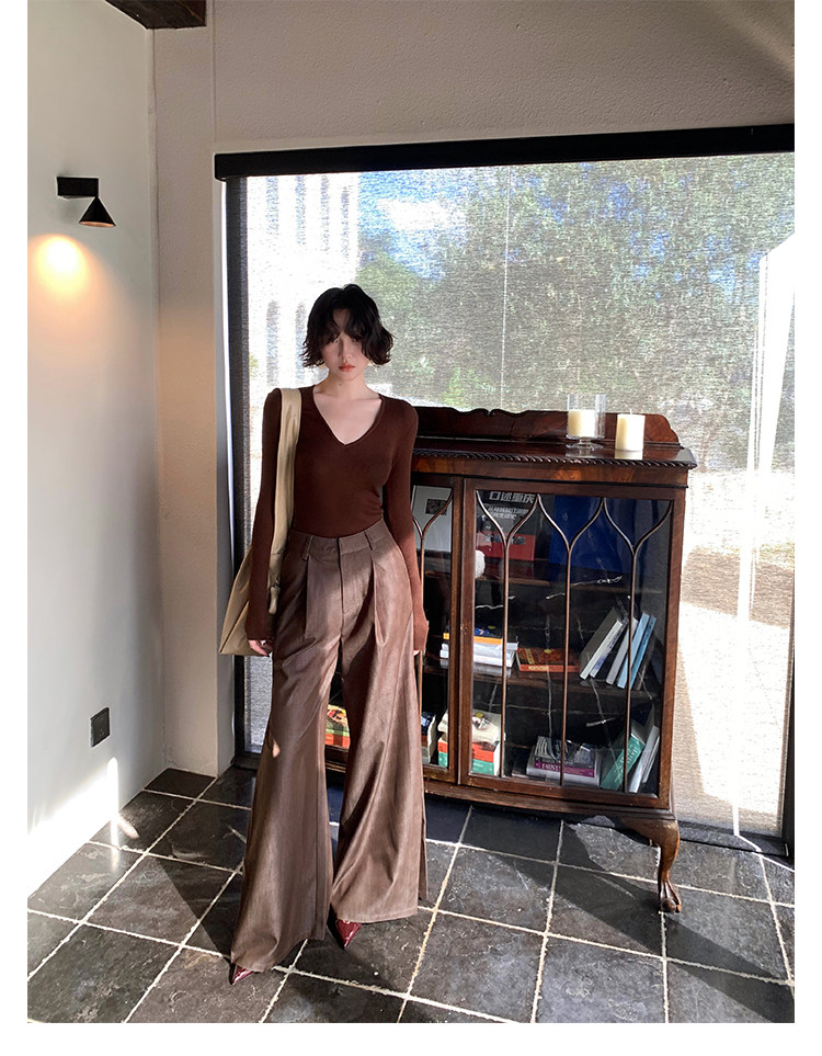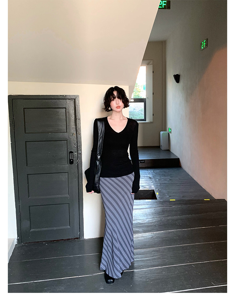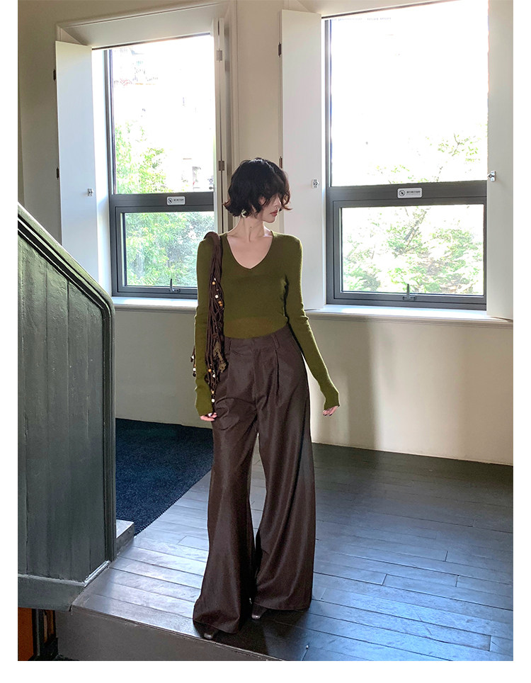Slim V-Neck Long-Sleeve Knit Top – Hong Kong Retro Autumn Base Layer