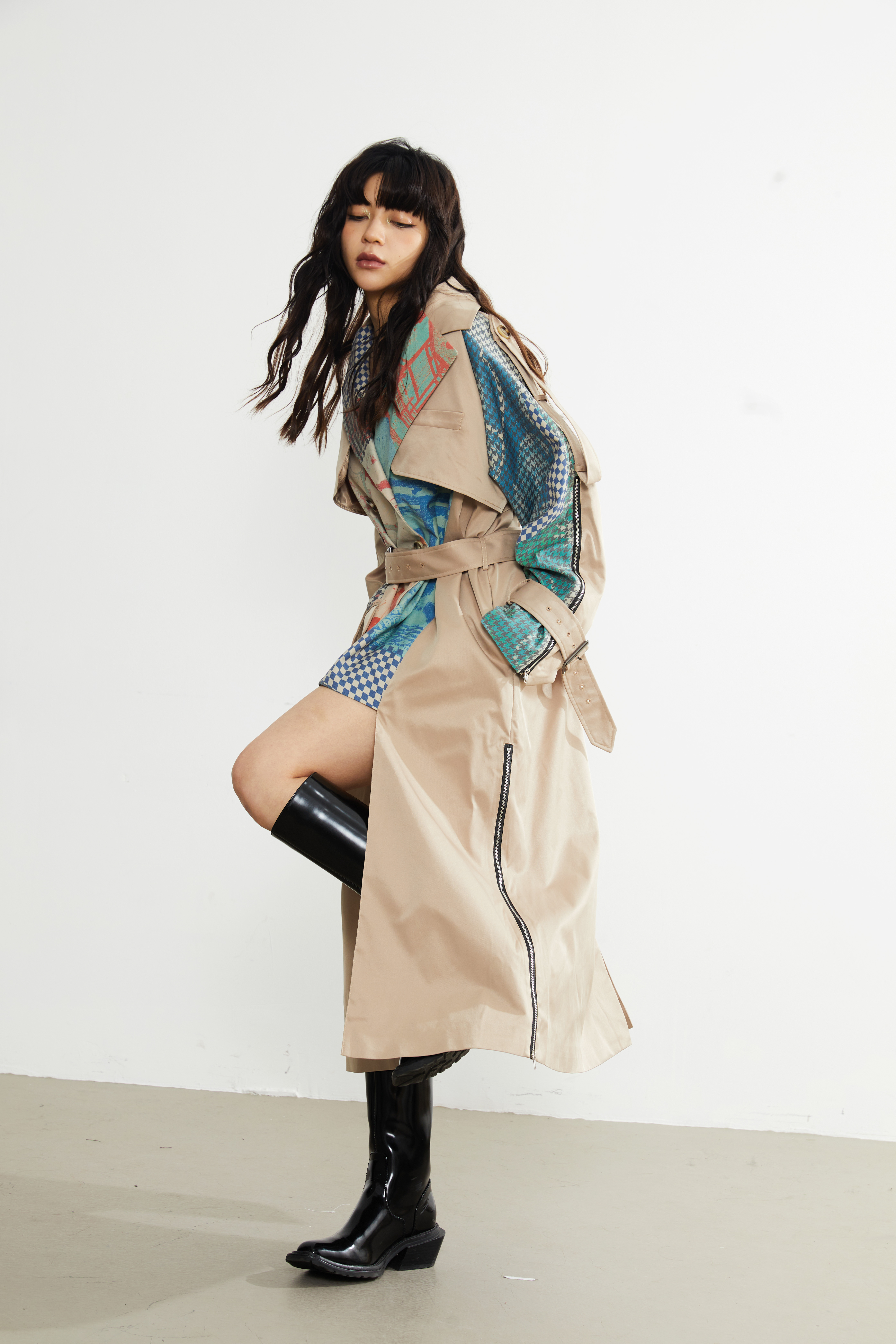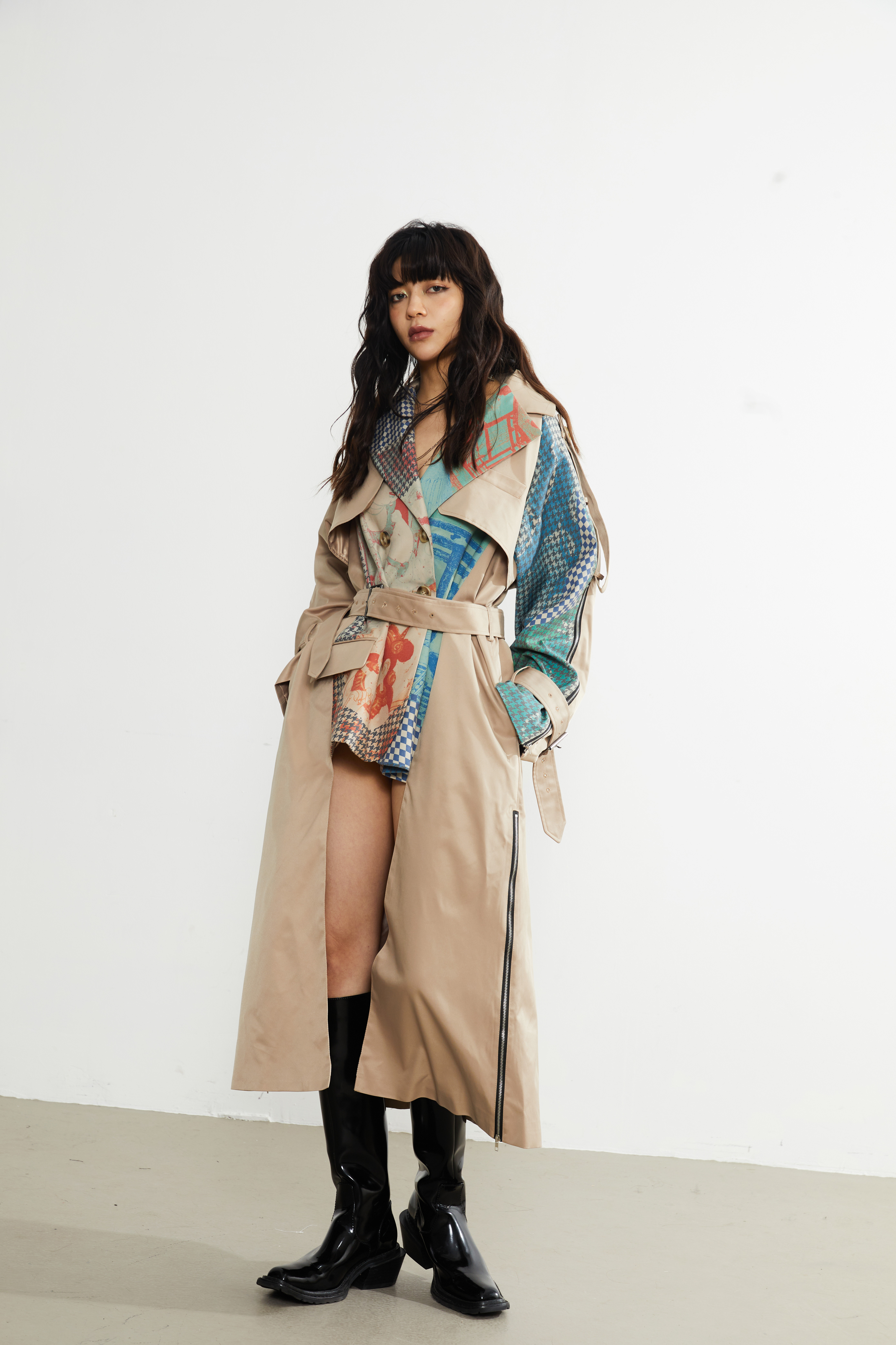Fabric A: 77% polyester, 20% rayon, 3% spandex