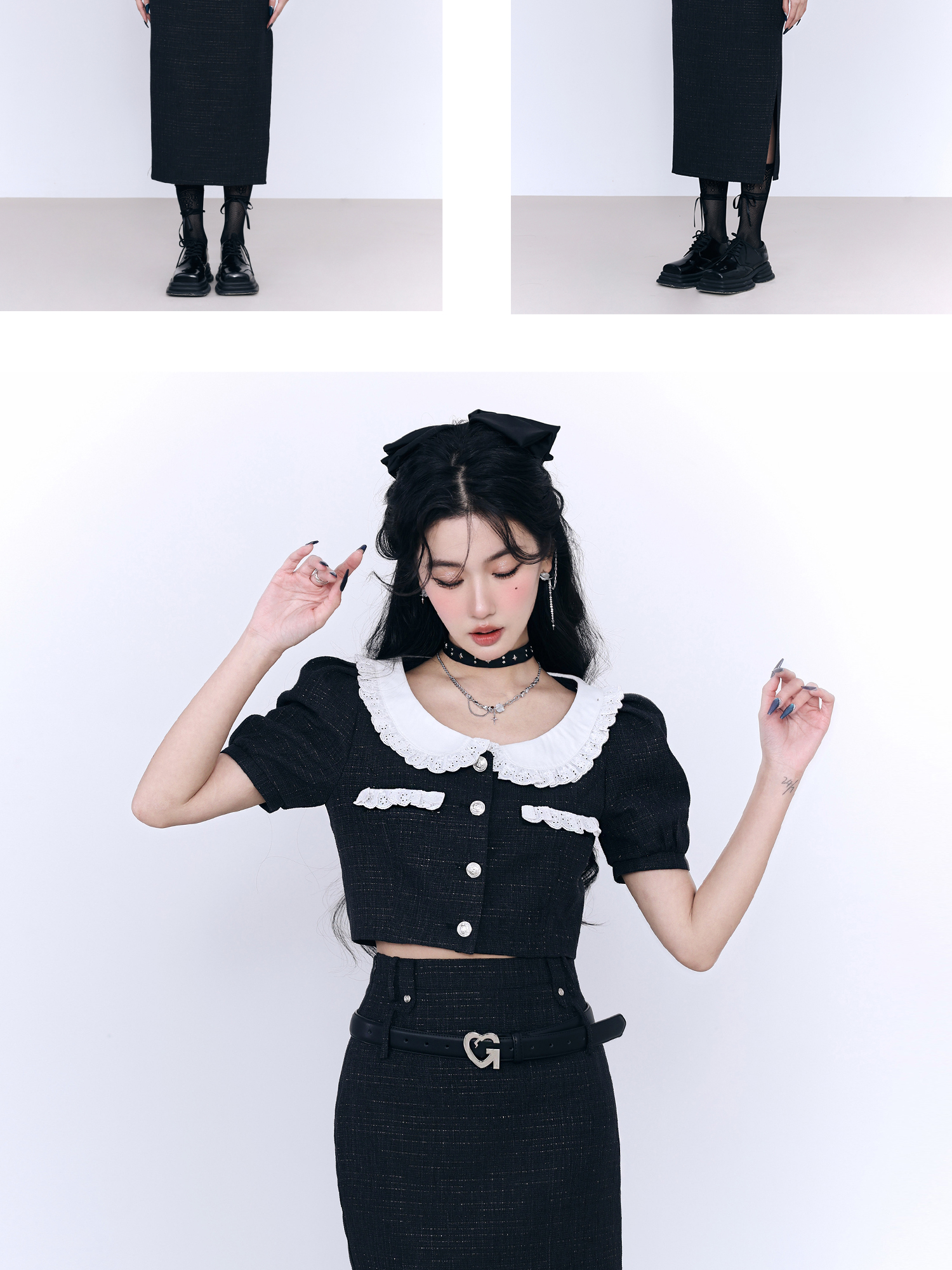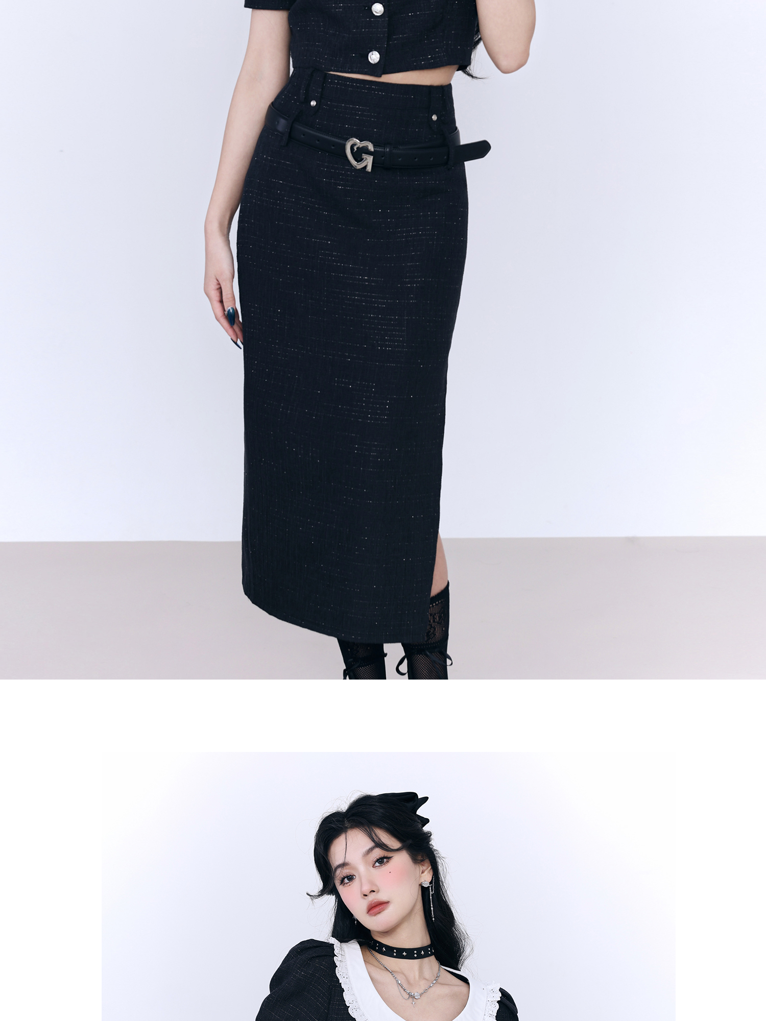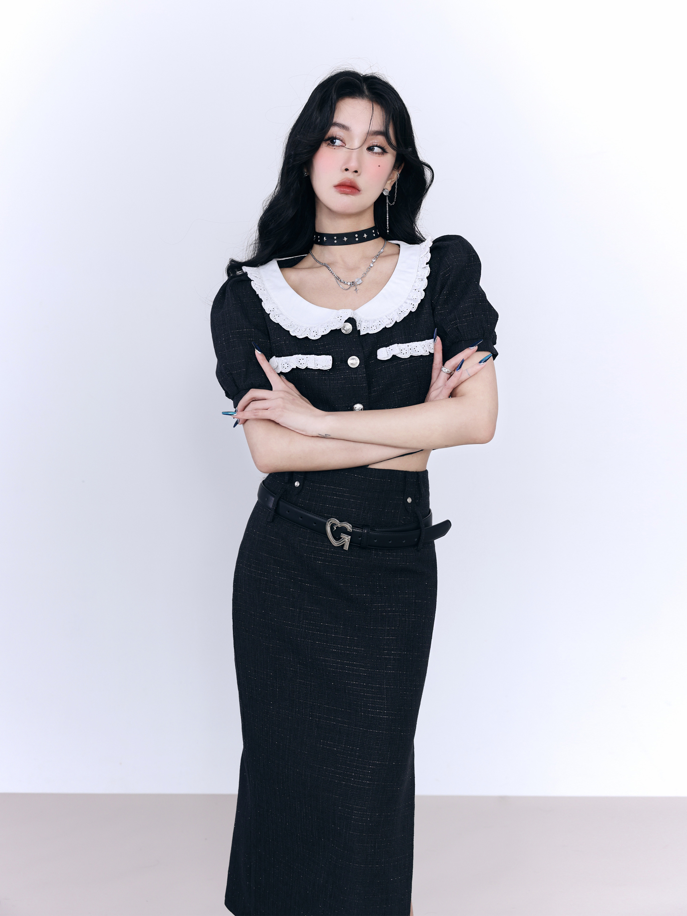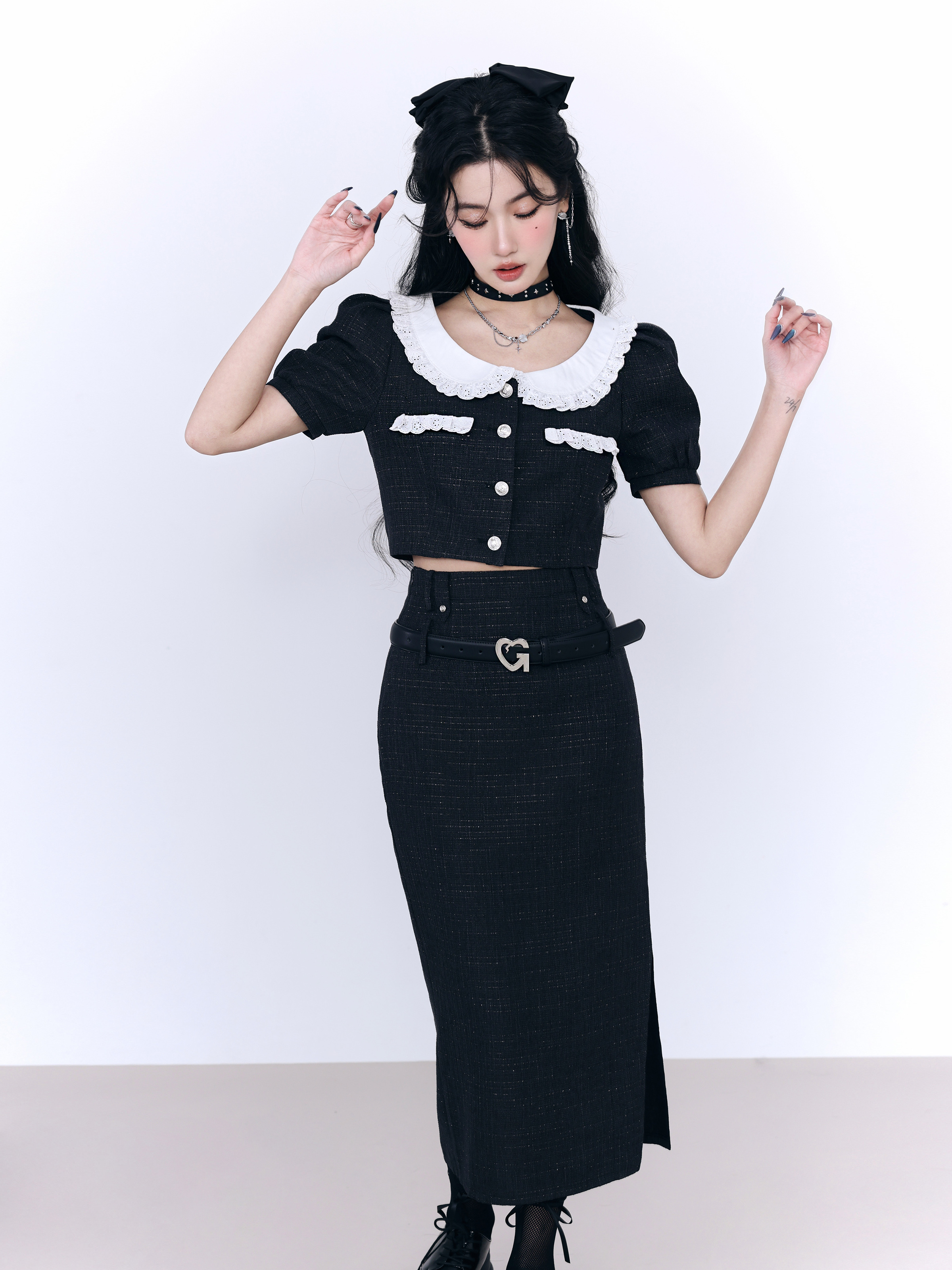 Black Doll Neck Thousand Gold Two-Piece Skirt
