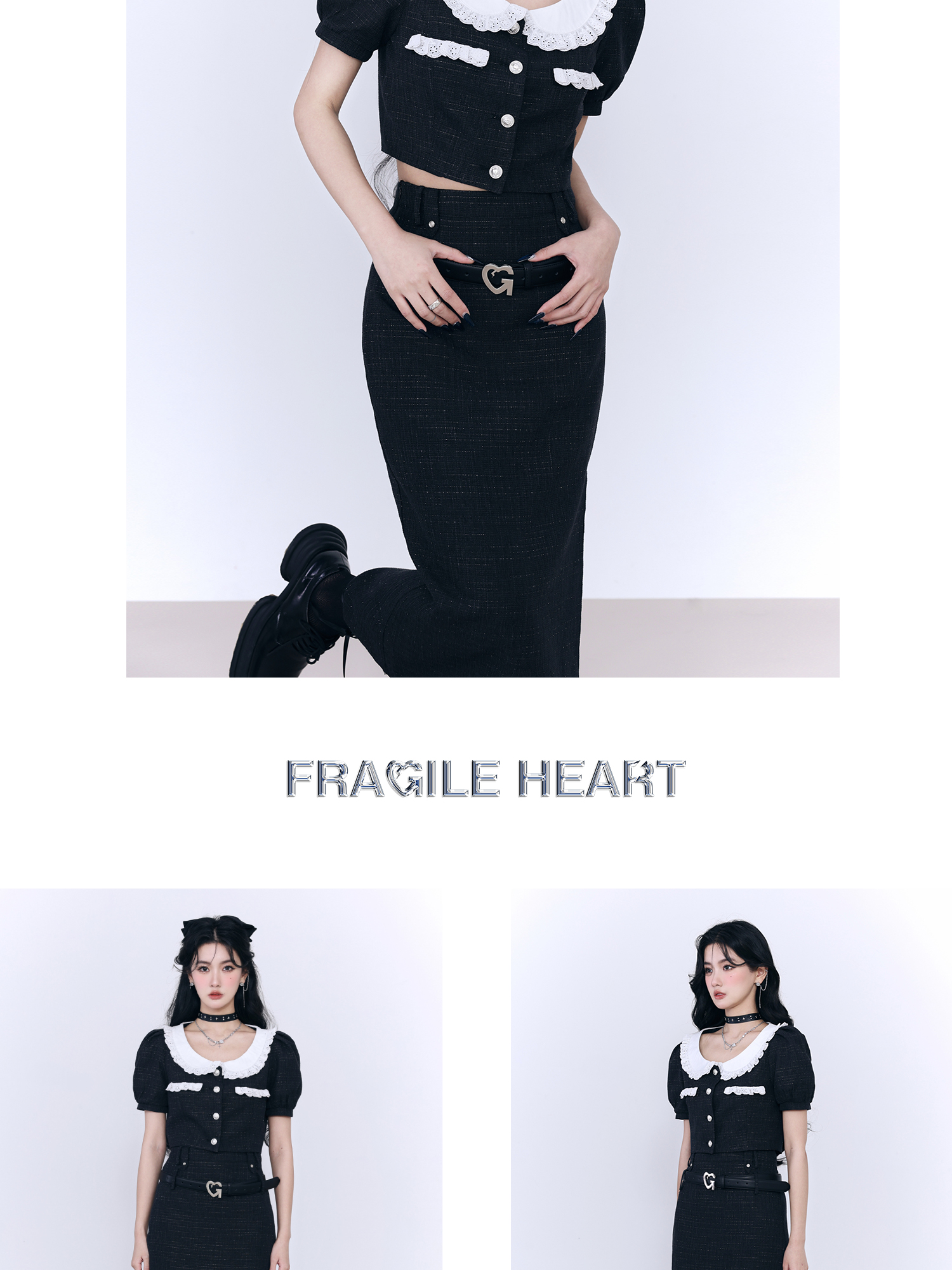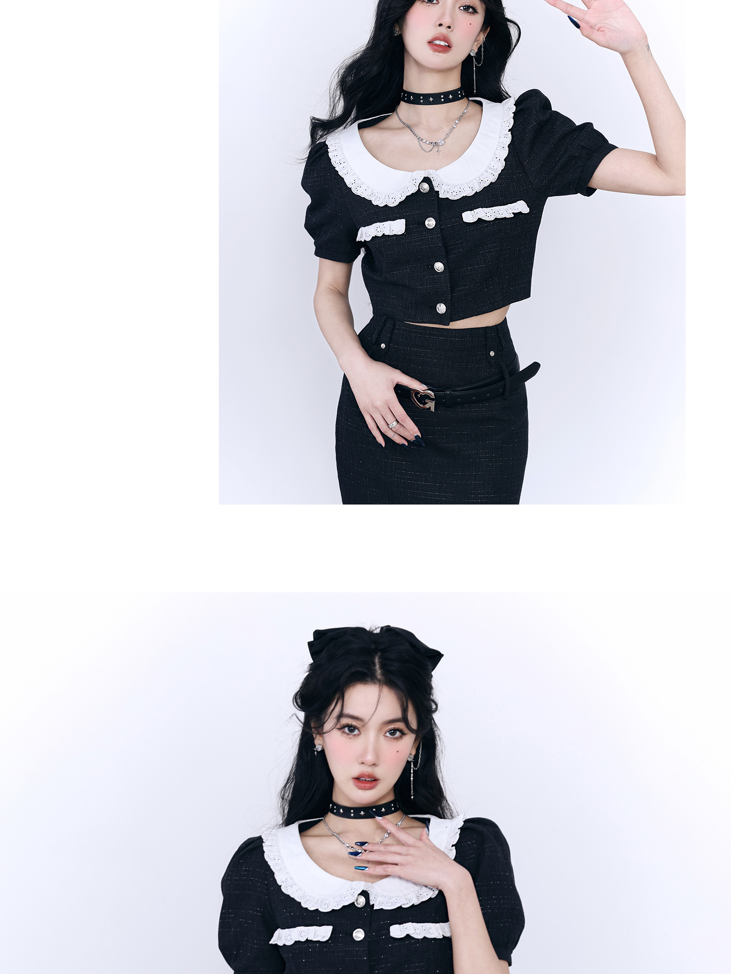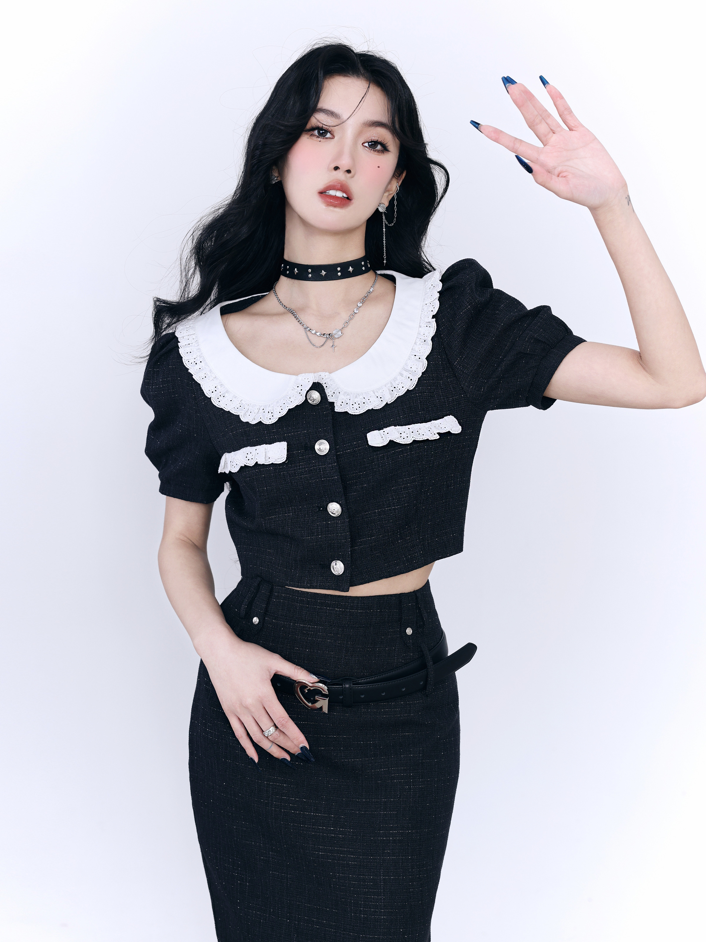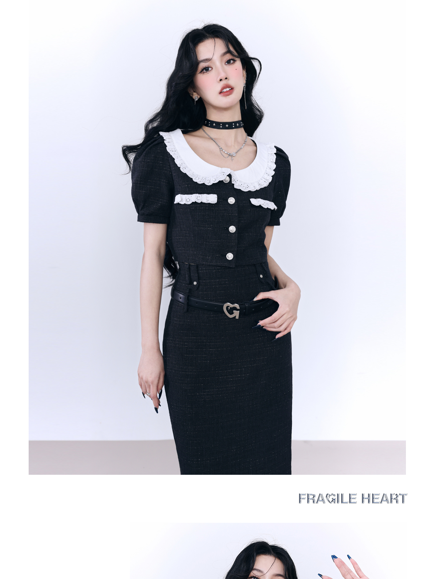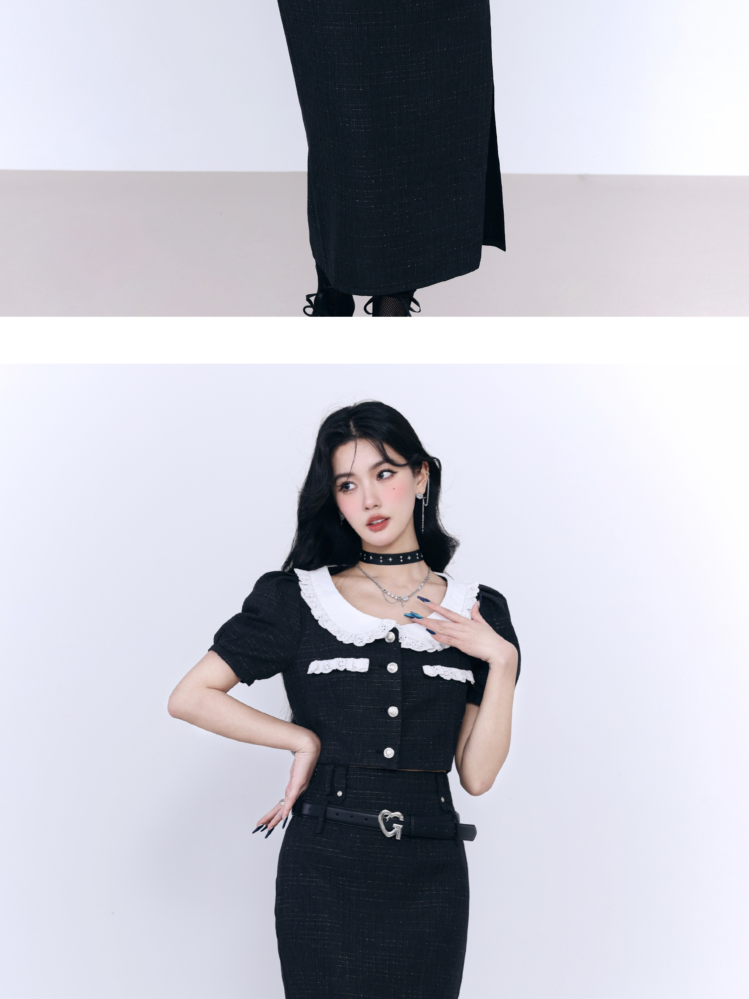 Black Doll Neck Thousand Gold Two-Piece Skirt