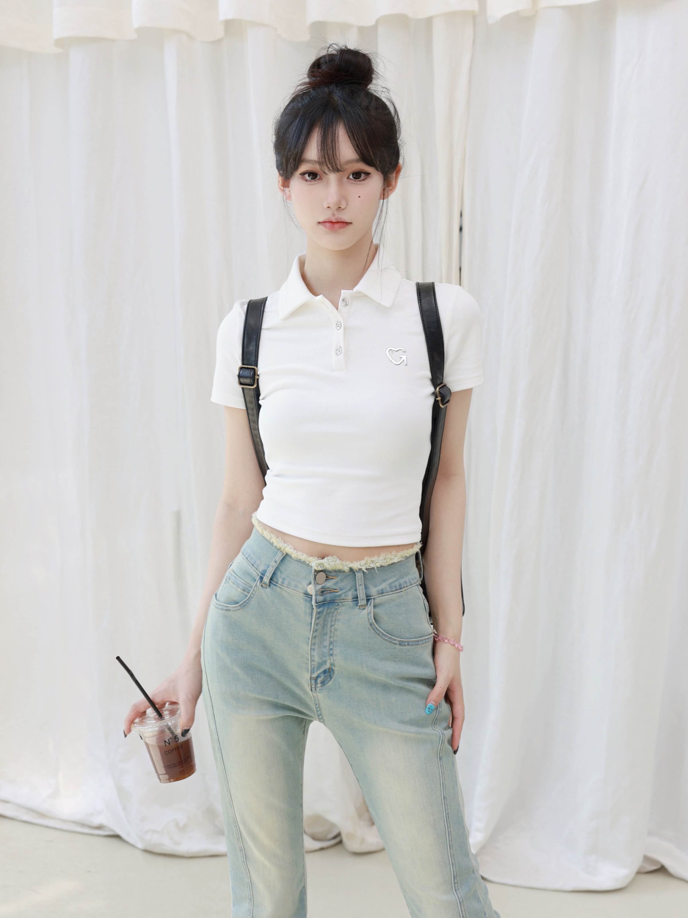 Hot Silver Short Sleeved Spicy Girl Polo Shirt