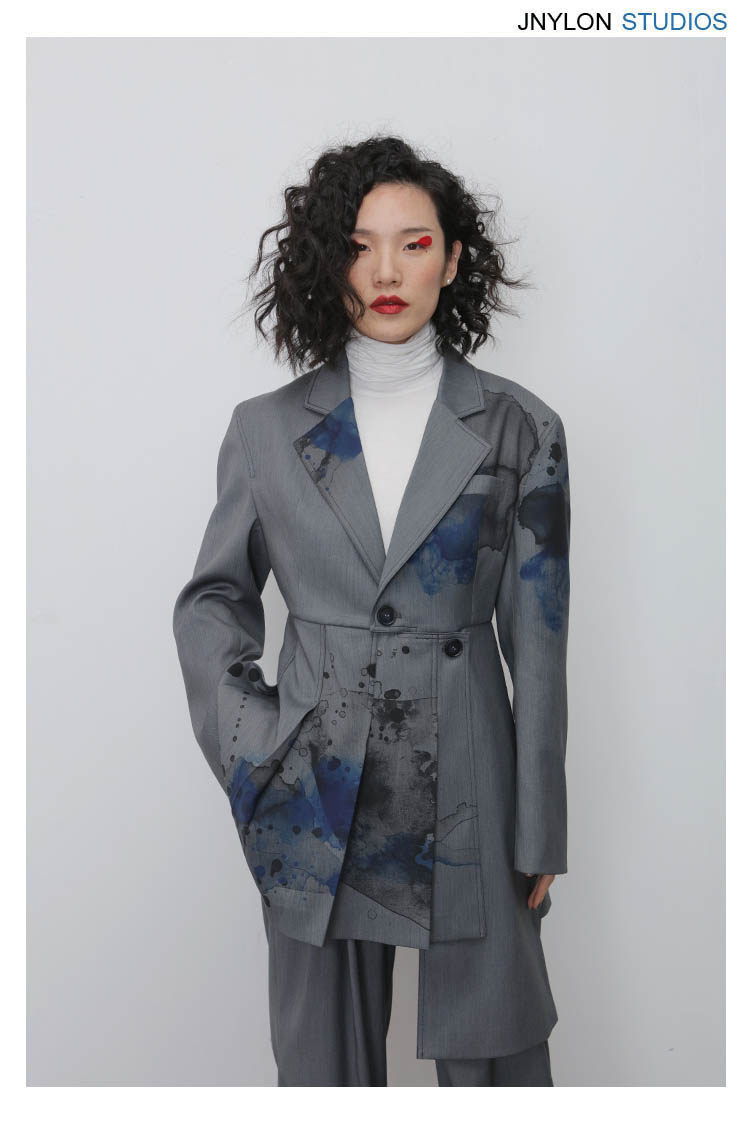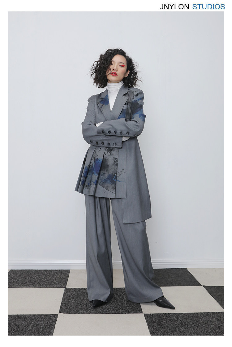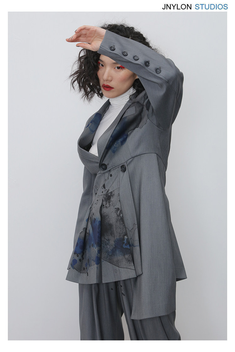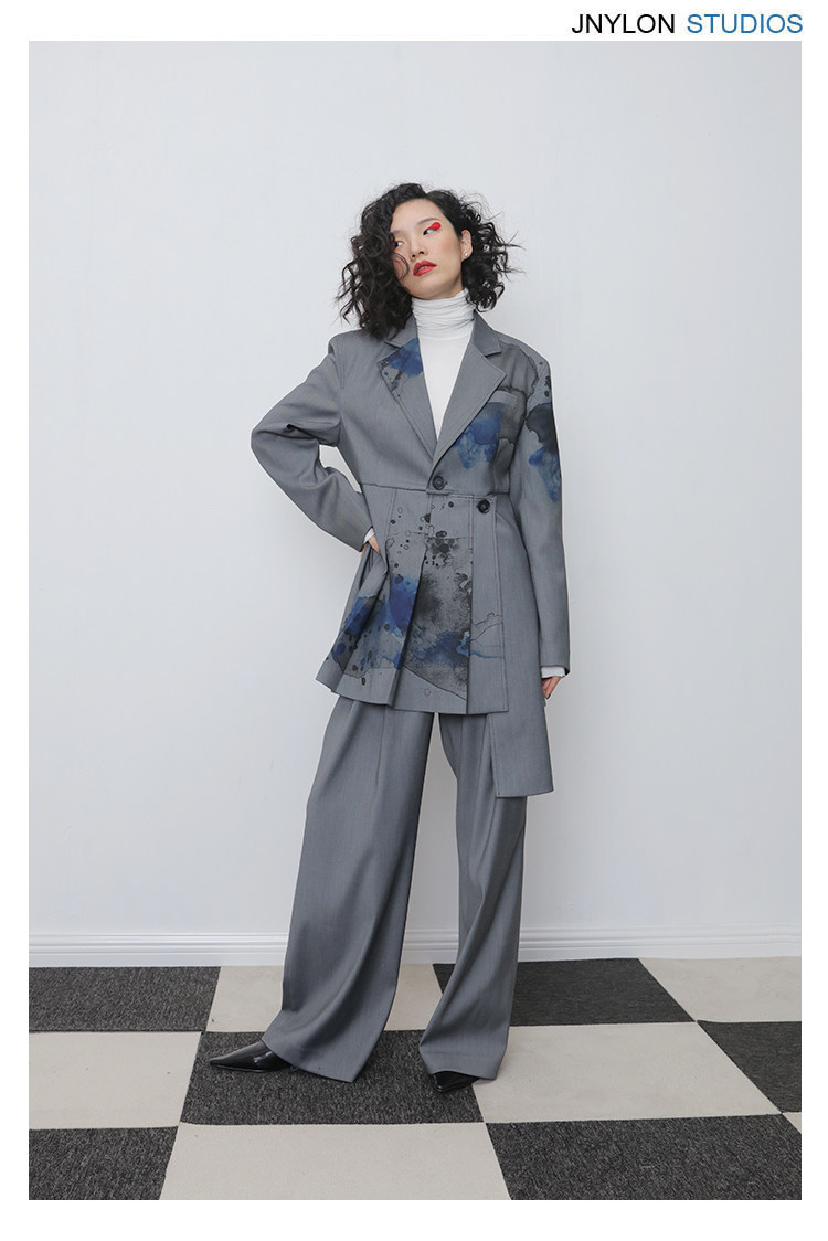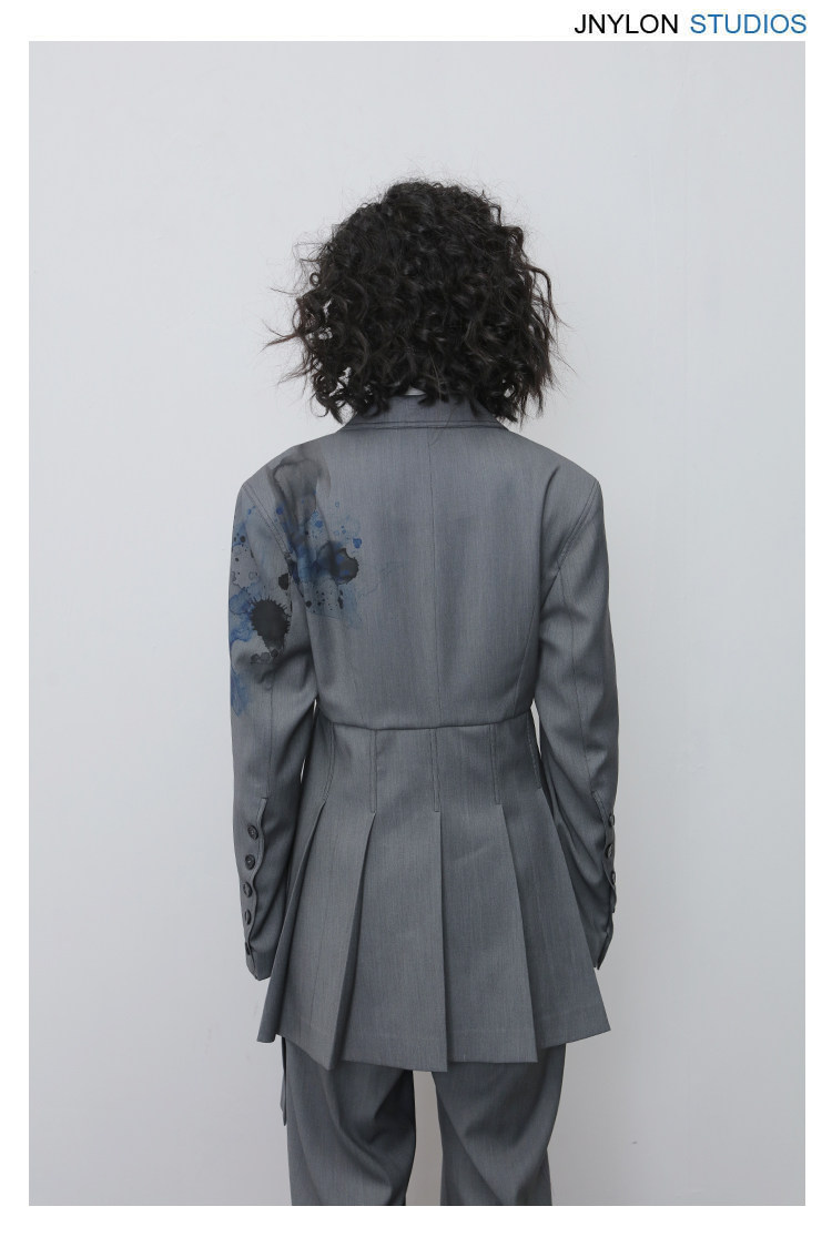 سترة بدلة ذات تنحنح مطوي بطبعة الحبر T324