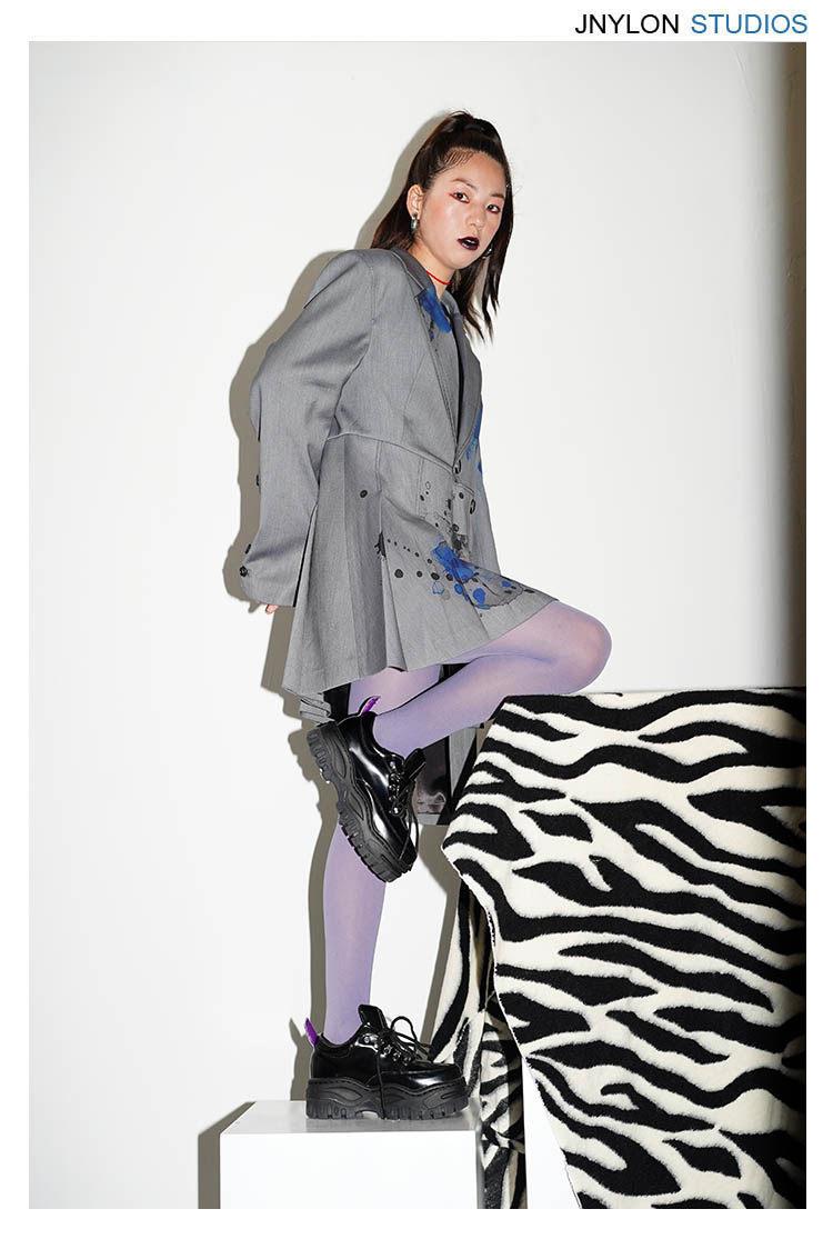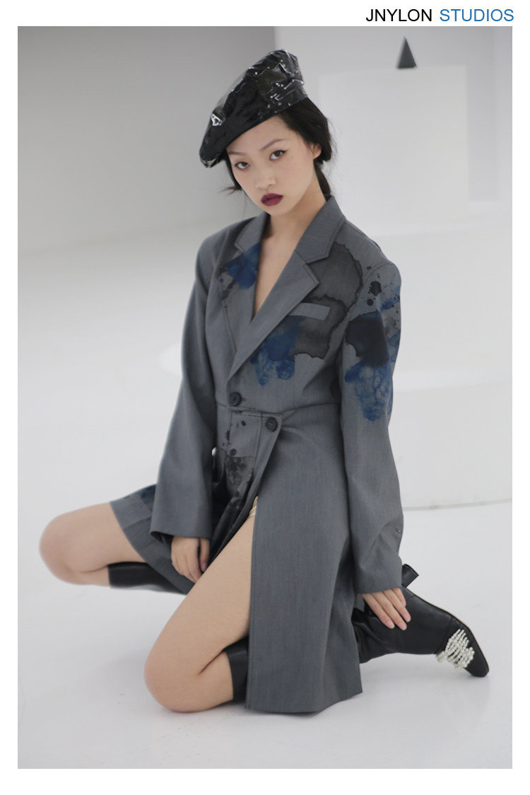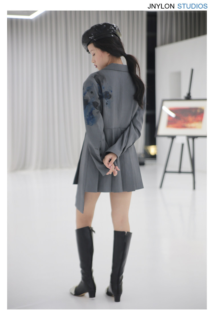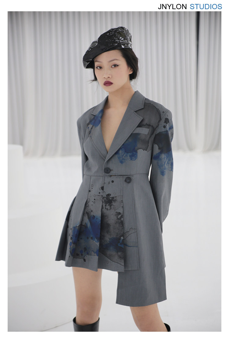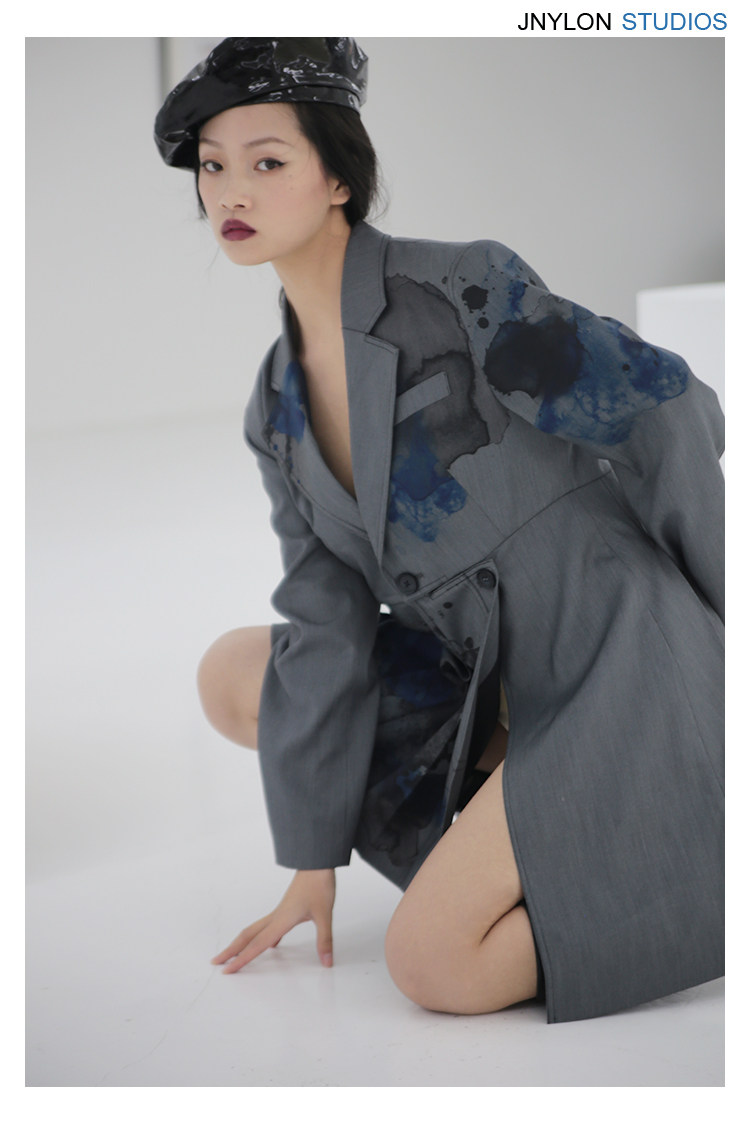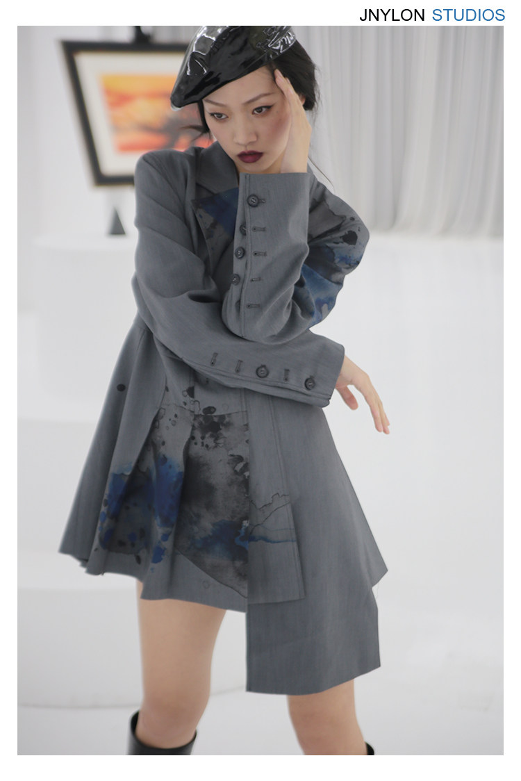 سترة بدلة ذات تنحنح مطوي بطبعة الحبر T324