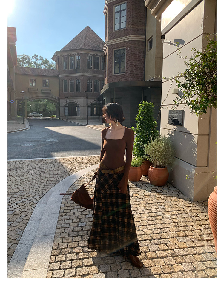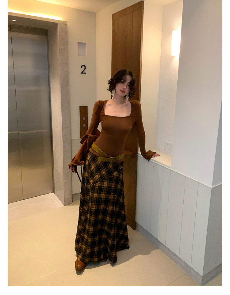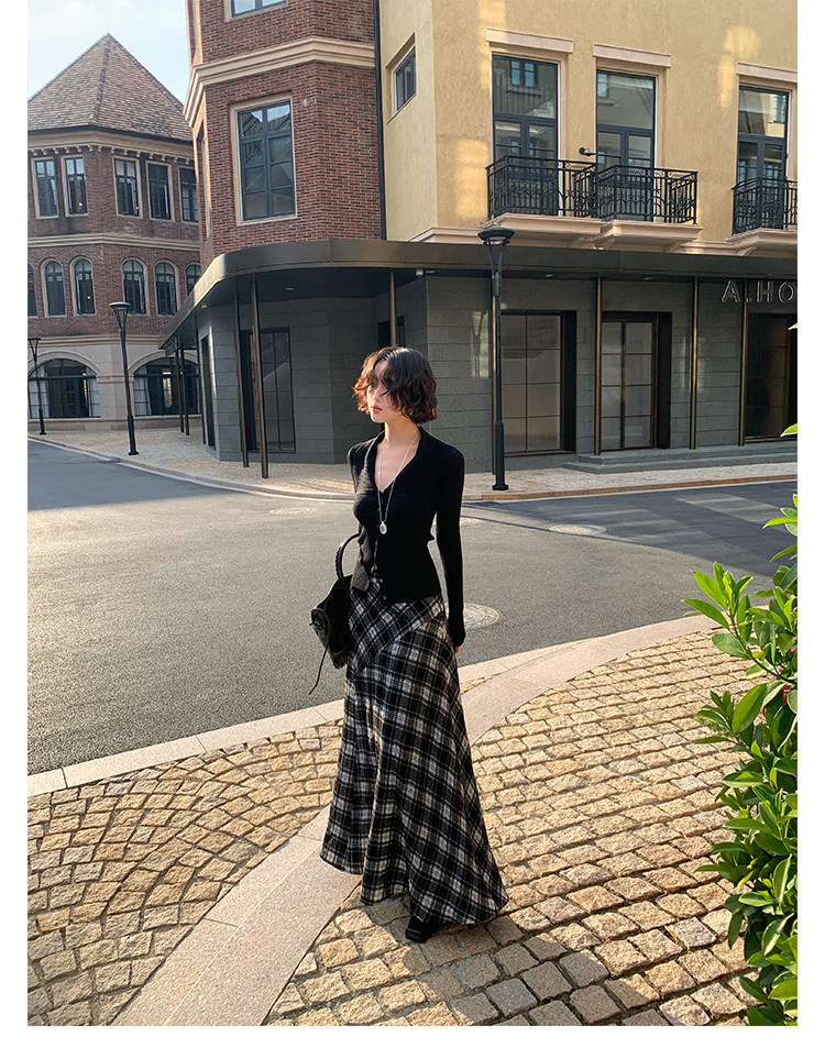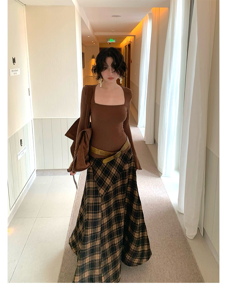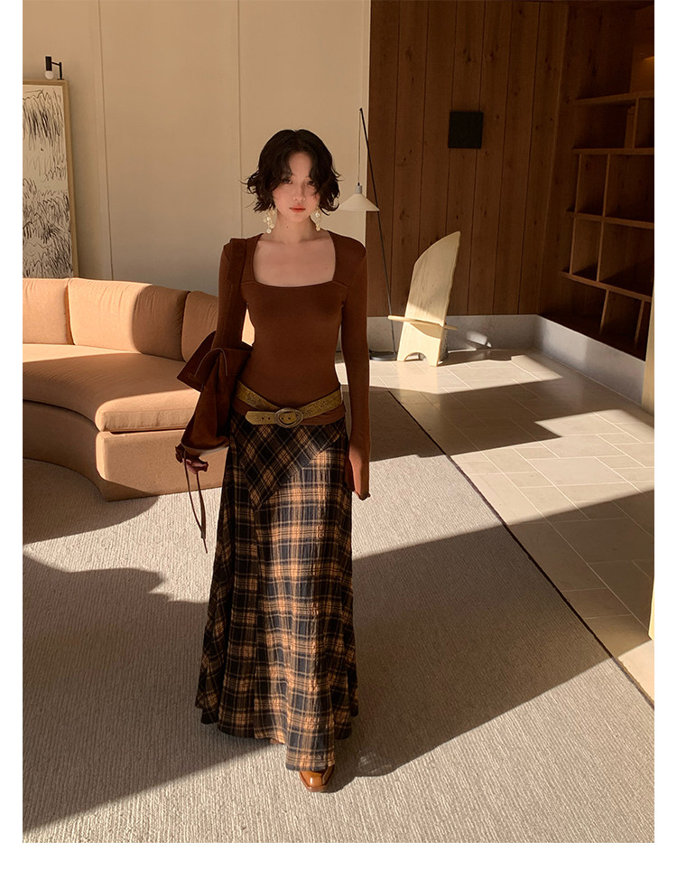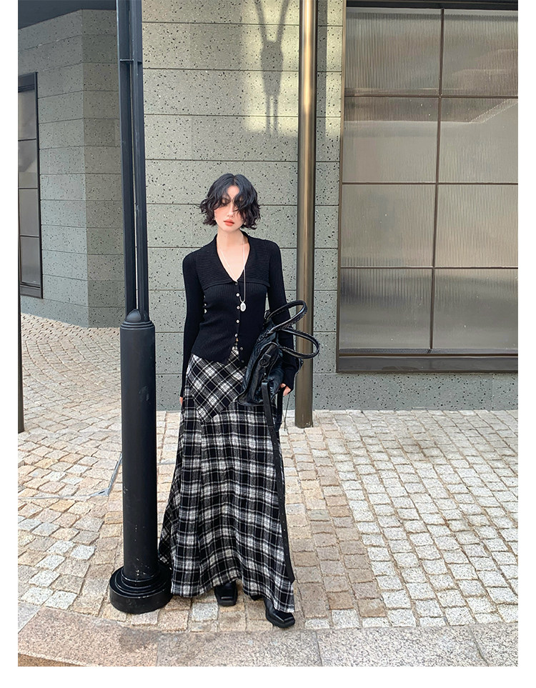 Nordic Plaid Wool-Blend Long Skirt – Hong Kong Retro Autumn/Winter