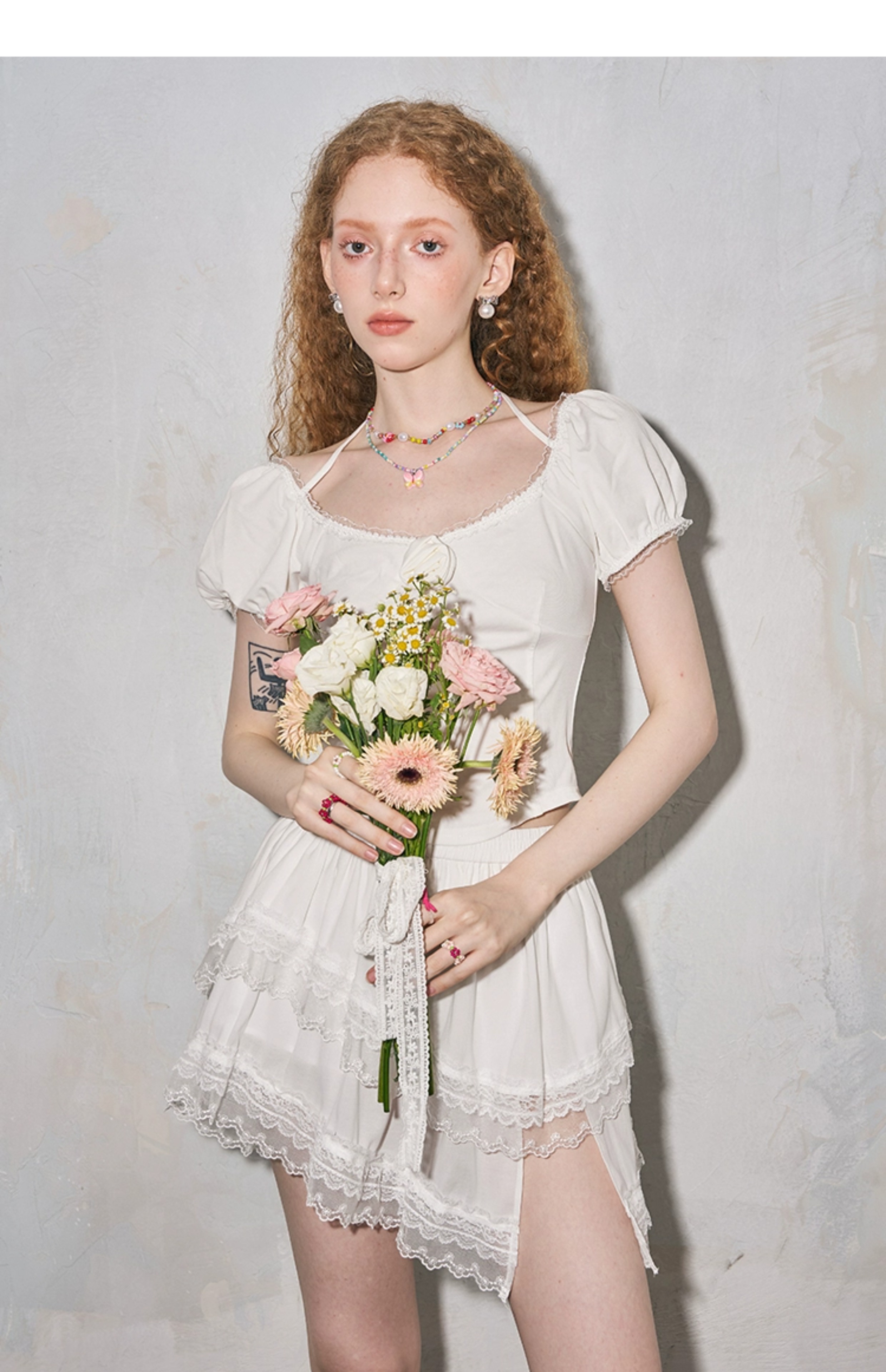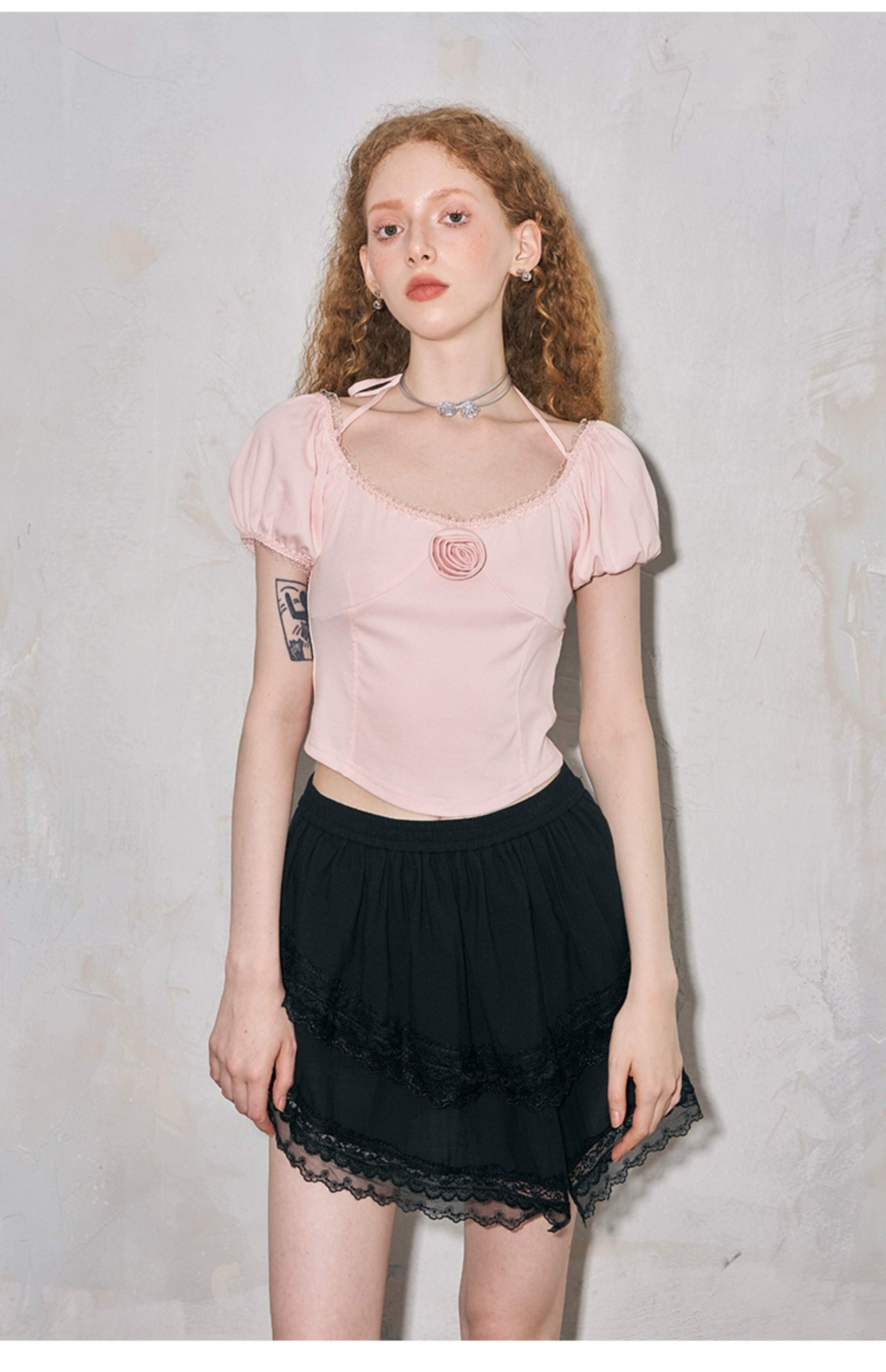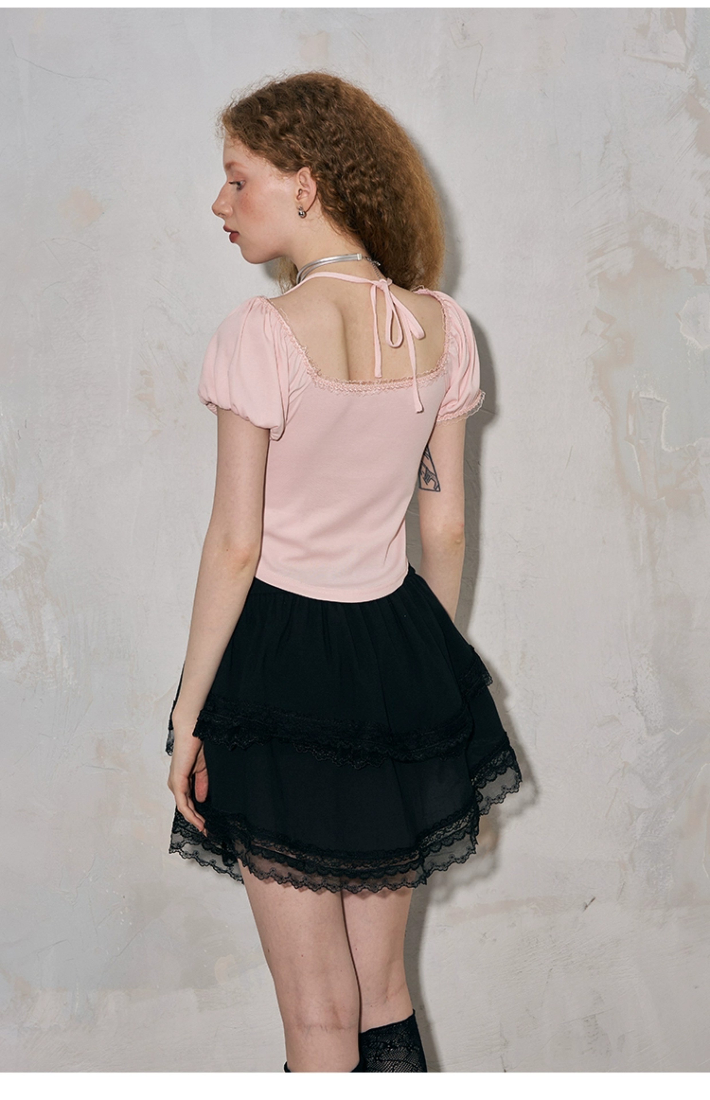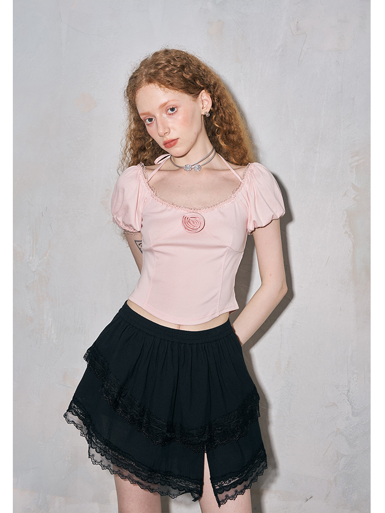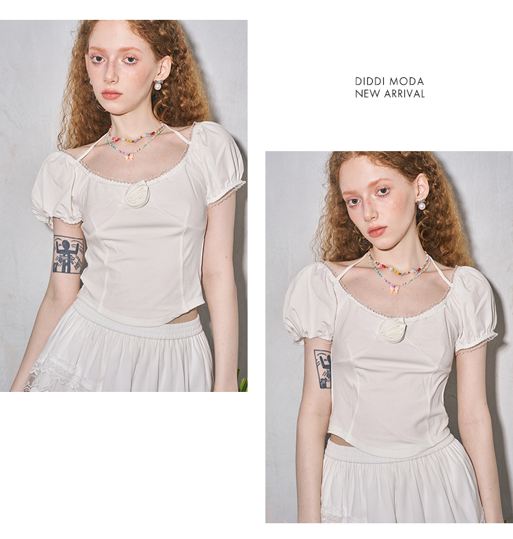 بلوزة بياقة مربعة وأكمام منتفخة
