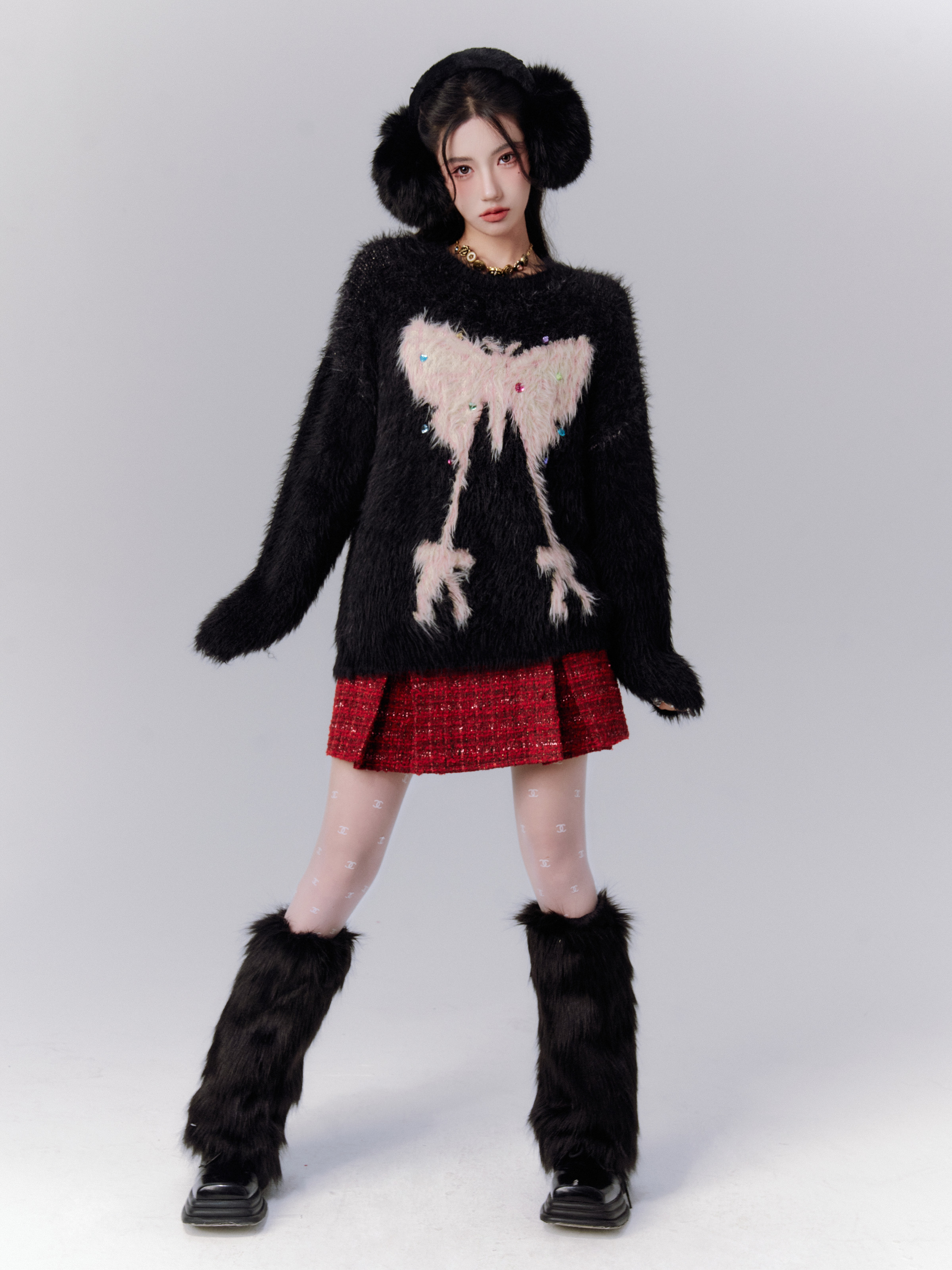 سترة السمور المقلدة على شكل فراشة الرياح الكسولة