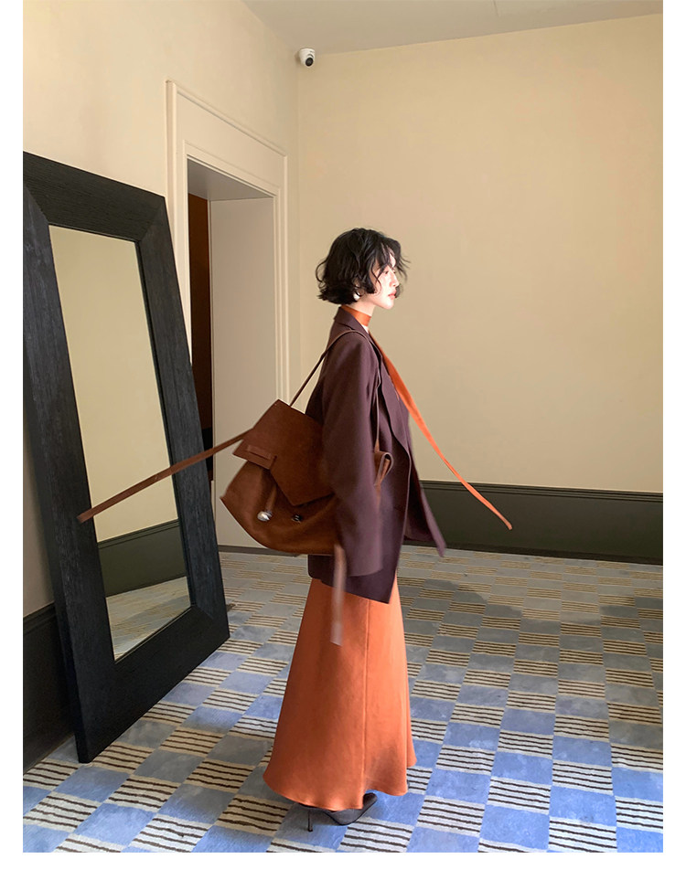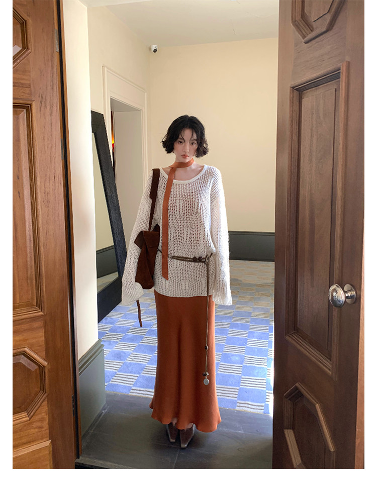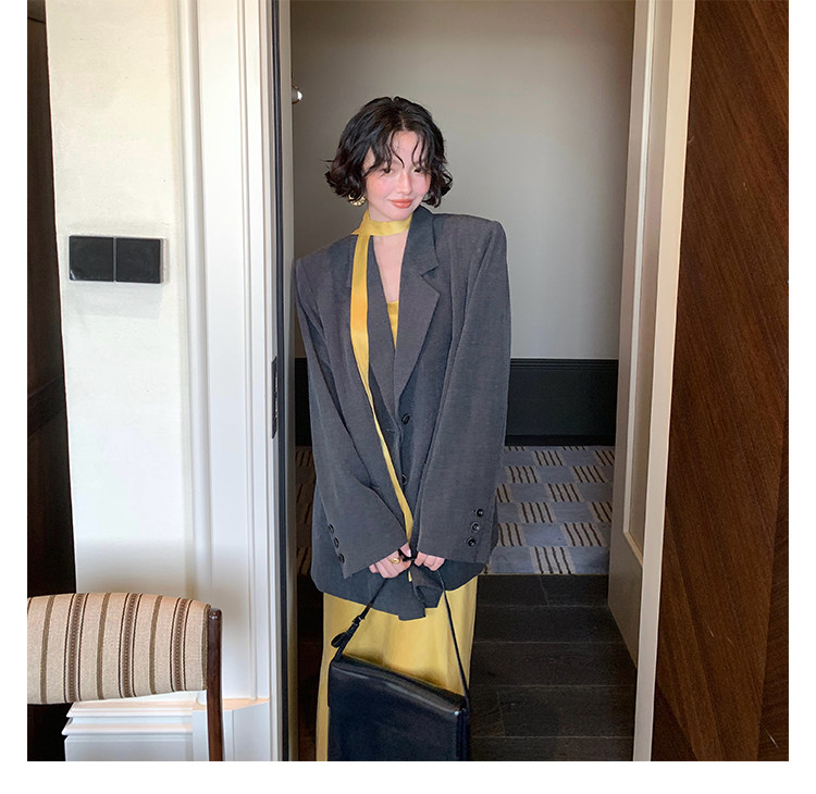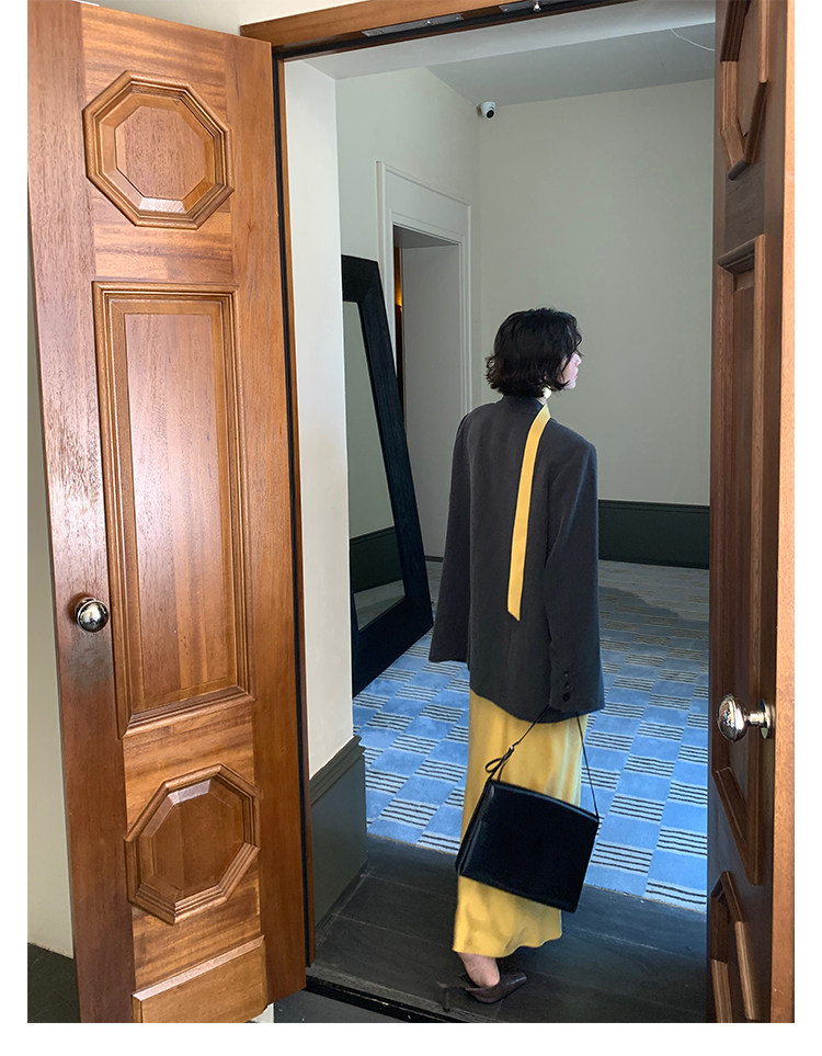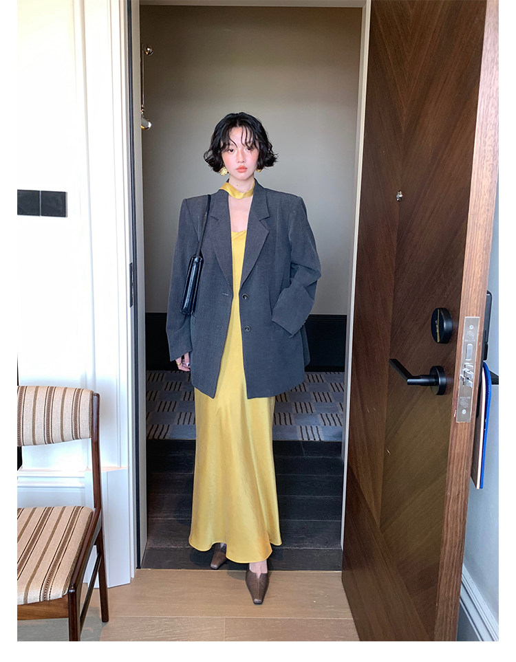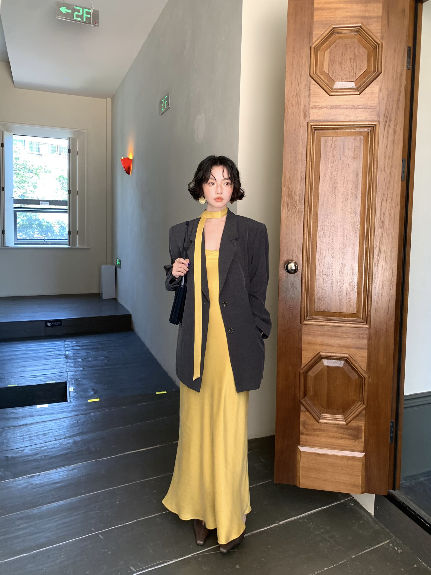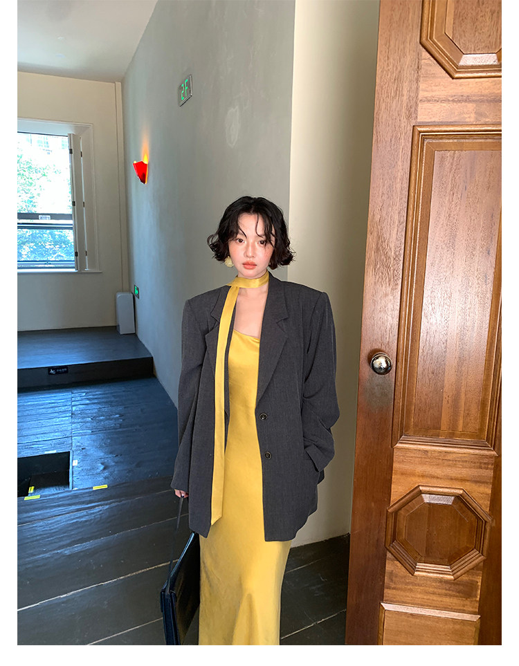 Sunlight Charm Tencel Satin Suspender Dress with Neck Tie – Retro Autumn