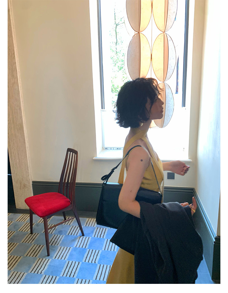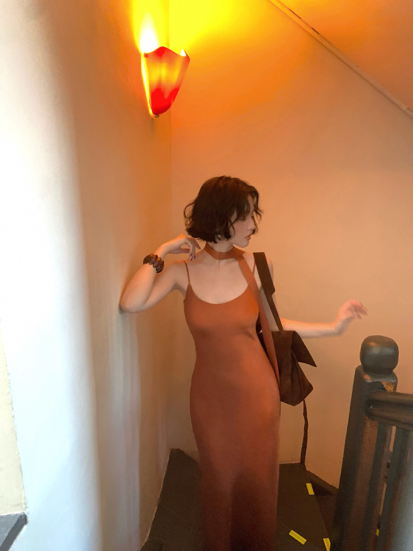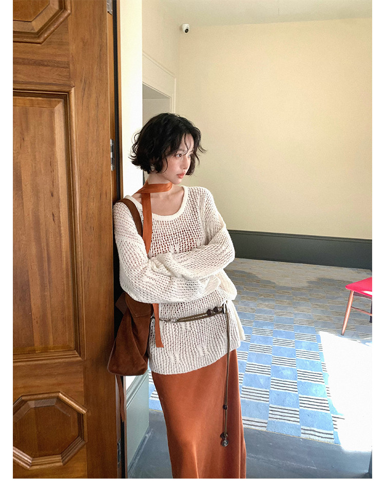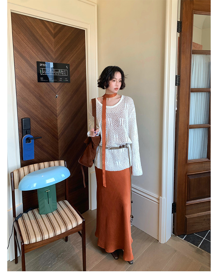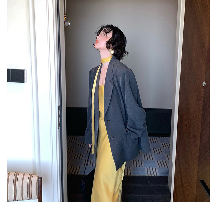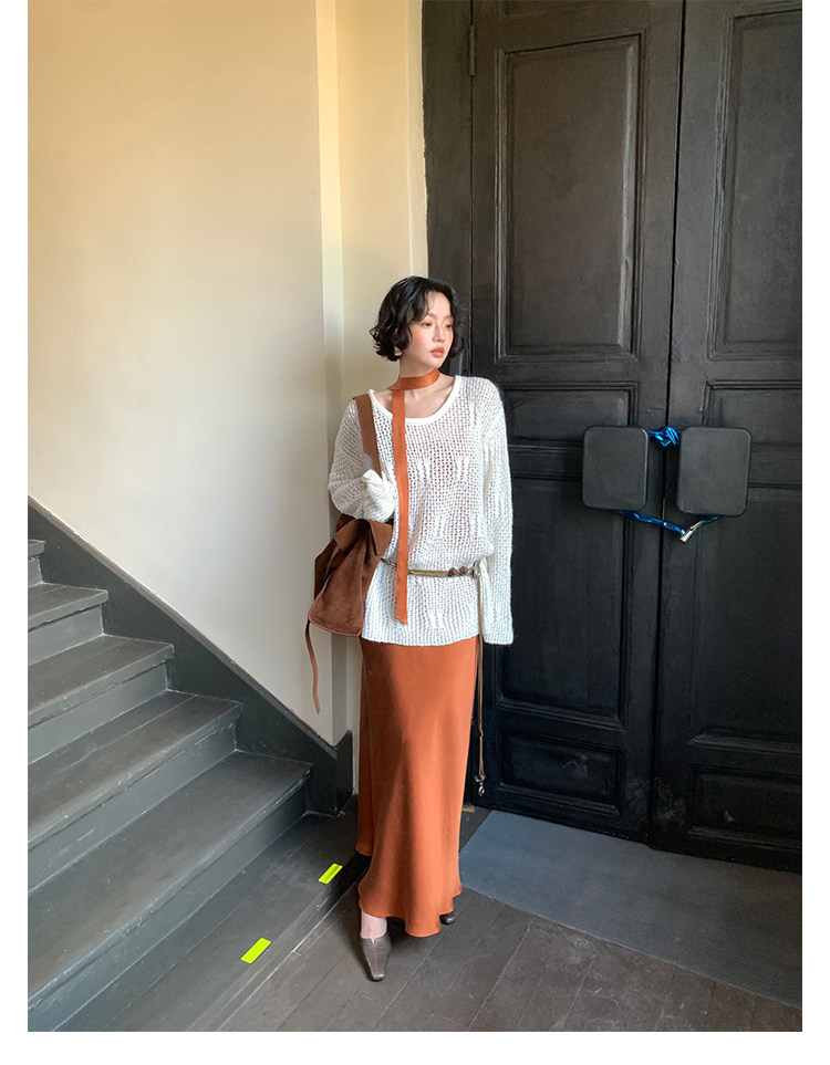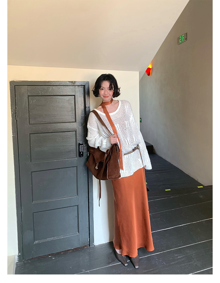 Sunlight Charm Tencel Satin Suspender Dress with Neck Tie – Retro Autumn