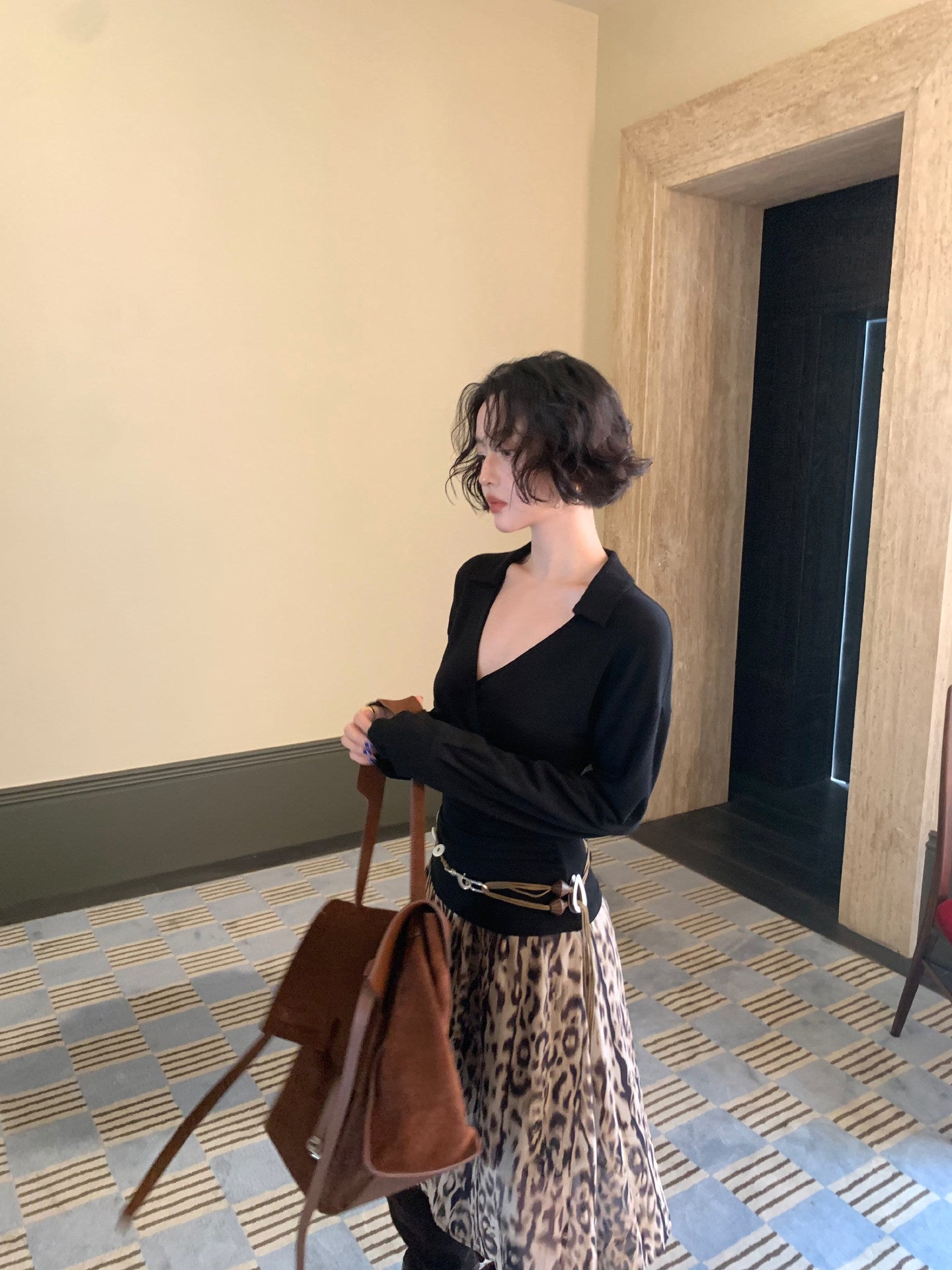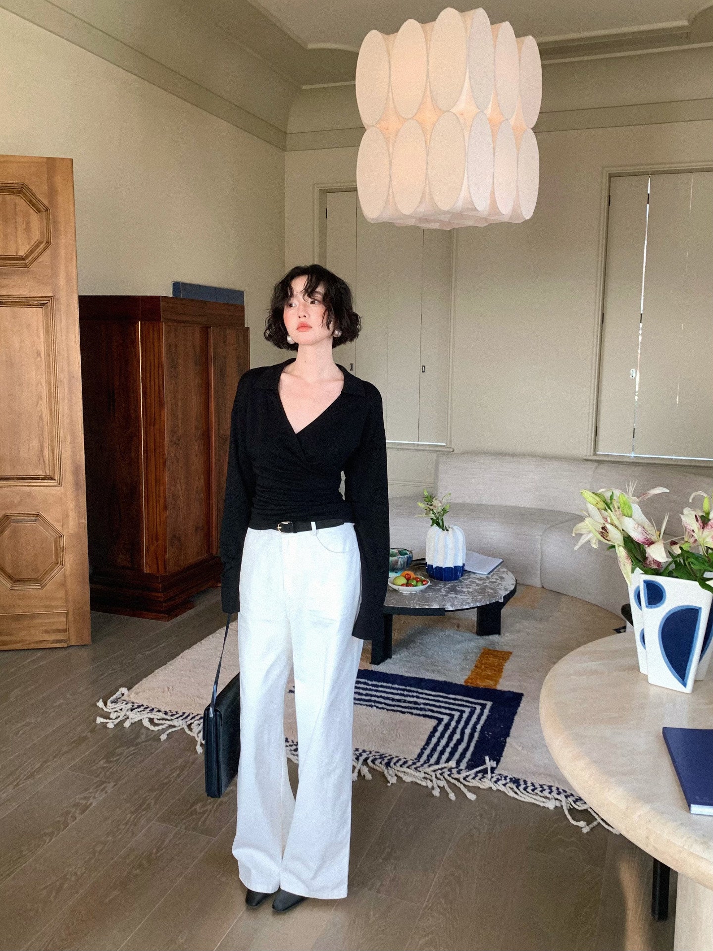 Warm and Cozy Tencel Wool-Blend V-Neck Knit Top – Slim Waist Autumn Style