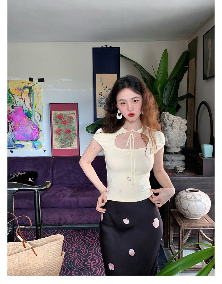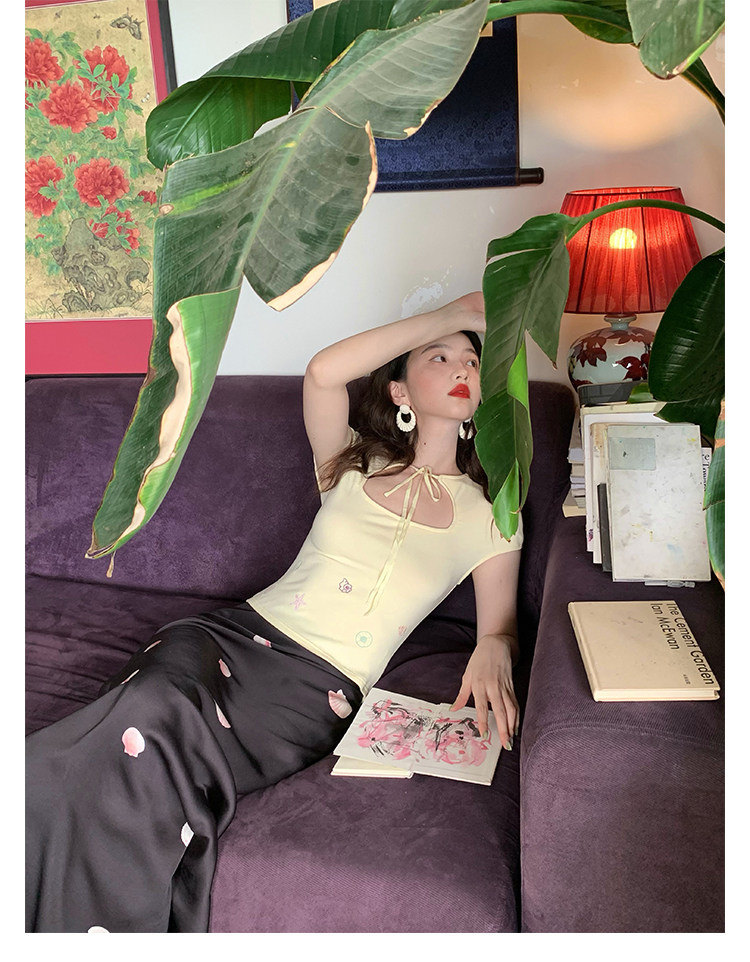 Cream Yellow Lace-Up Knit Top