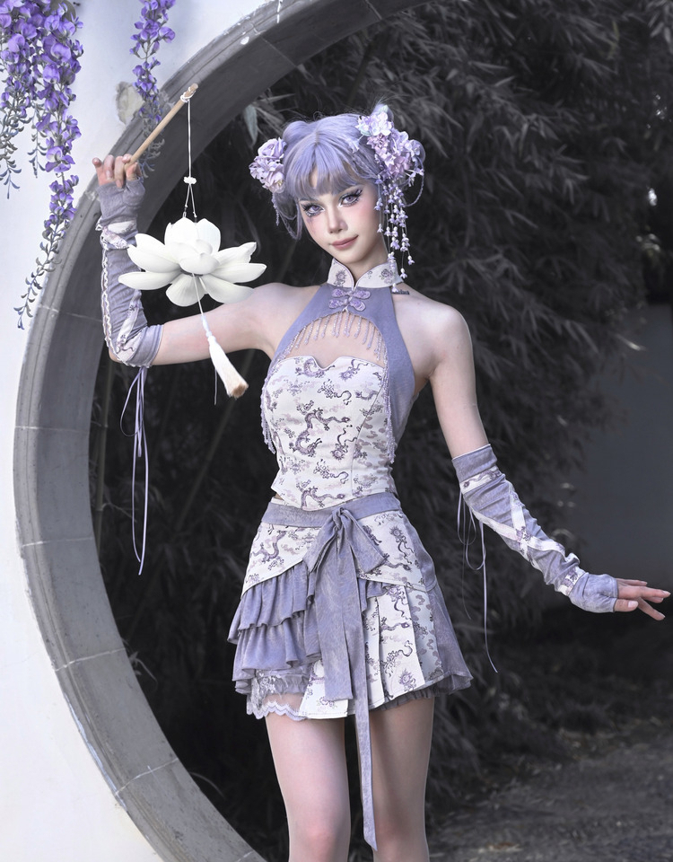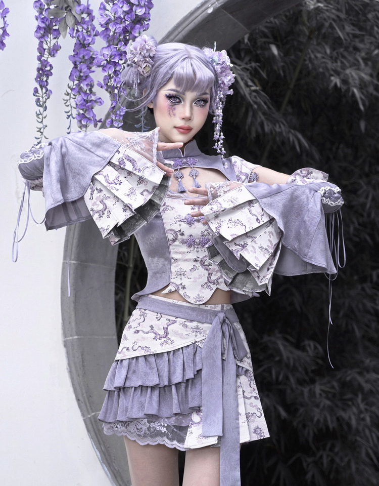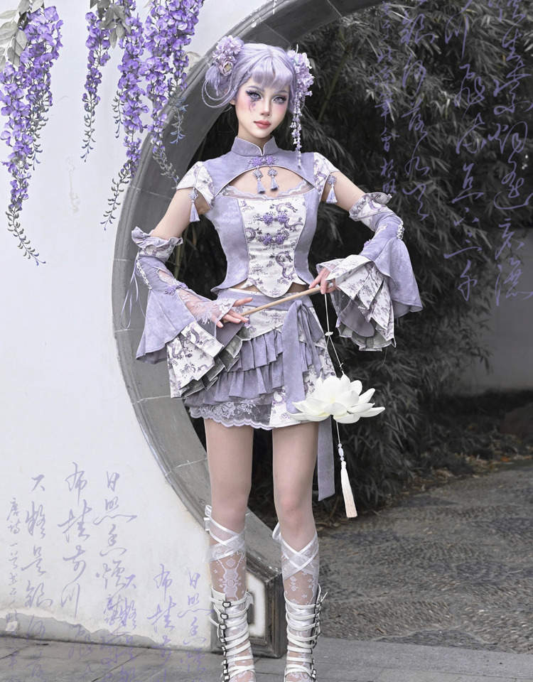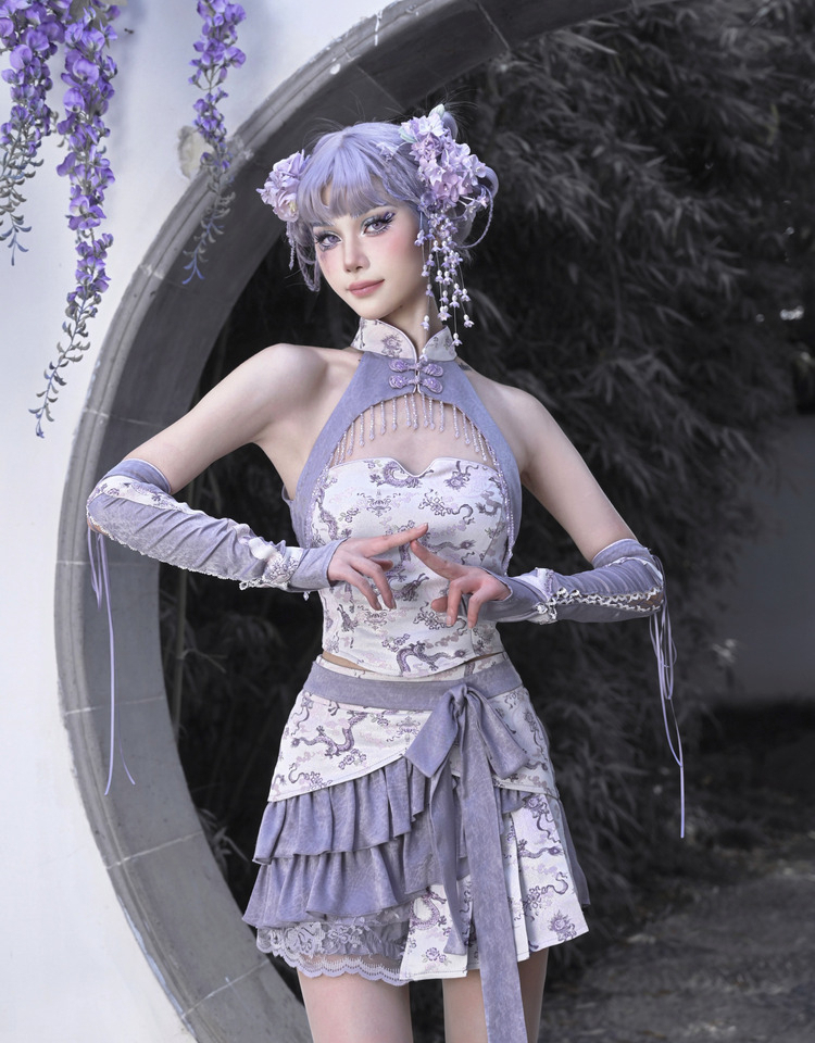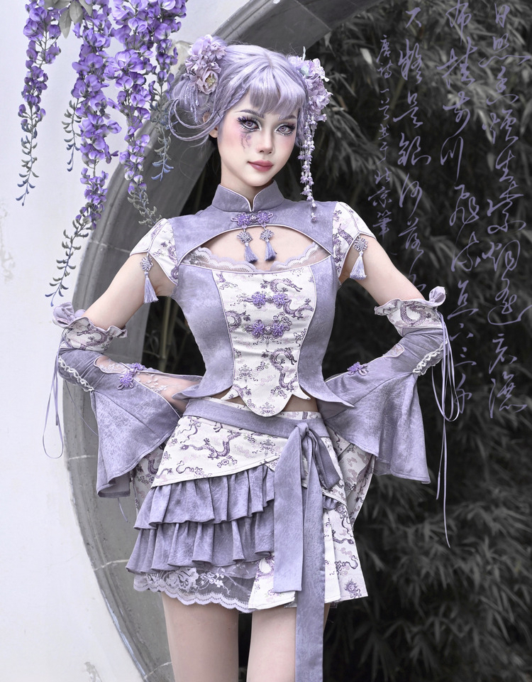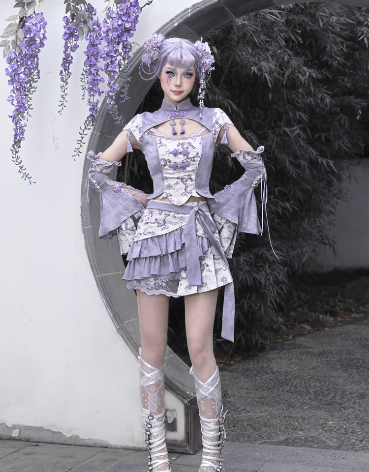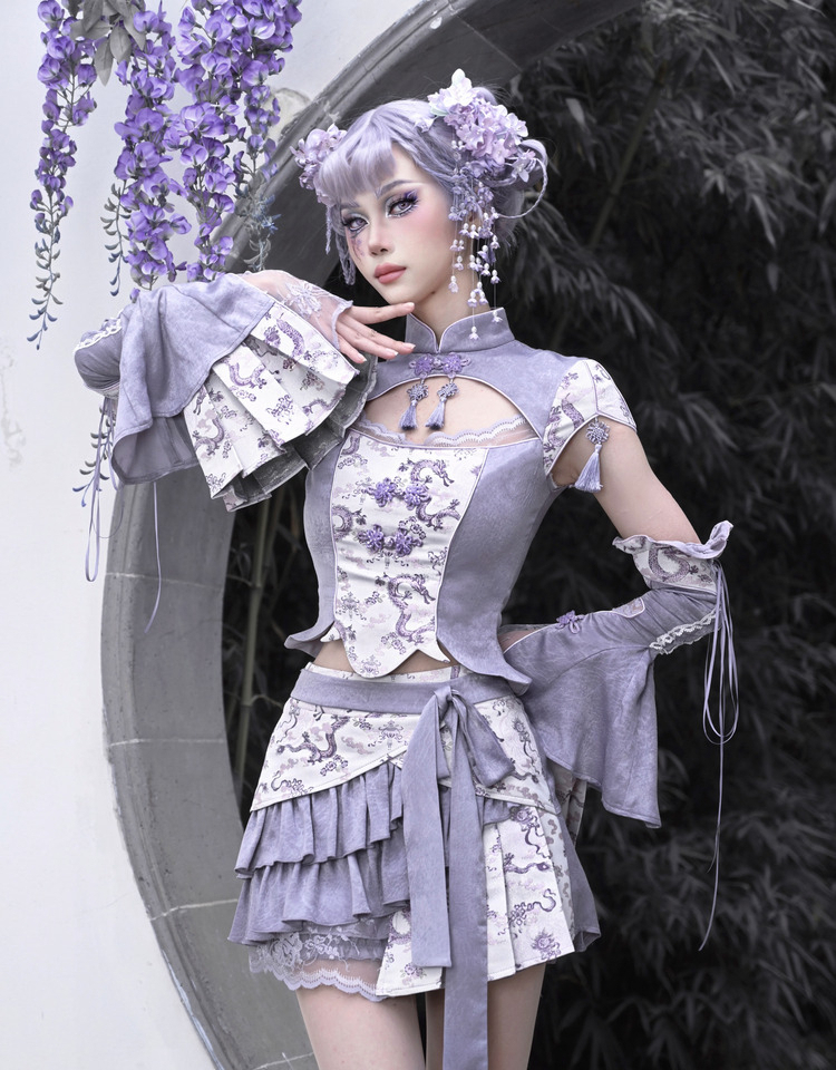 Agarwood Jacquard Pleated Cheongsam Culottes