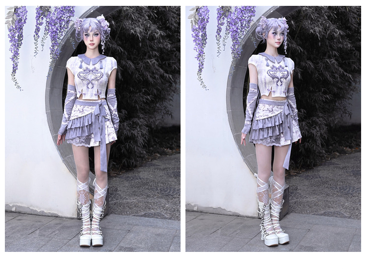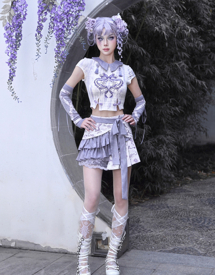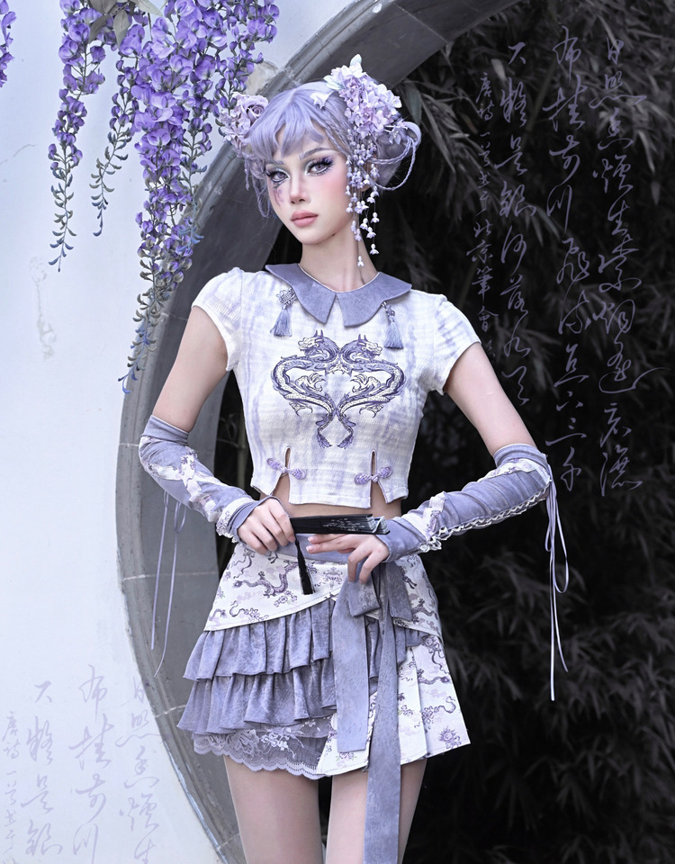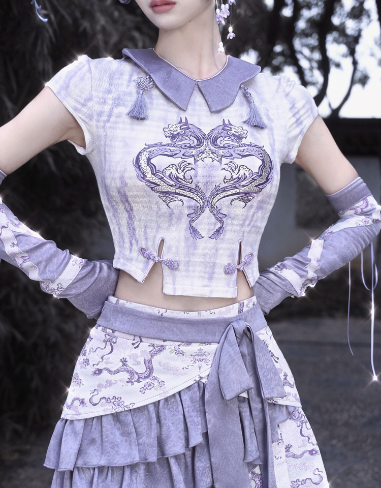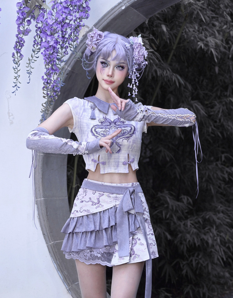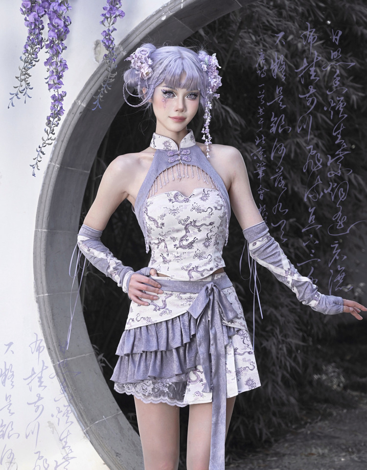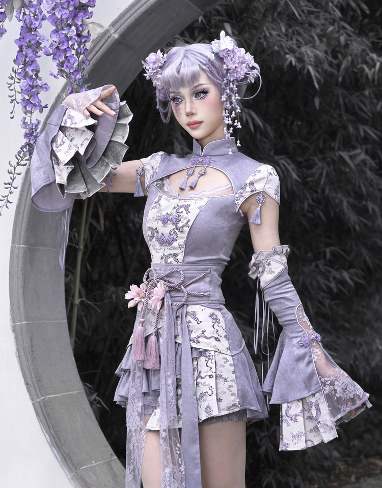 Agarwood Jacquard Pleated Cheongsam Culottes