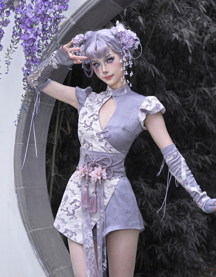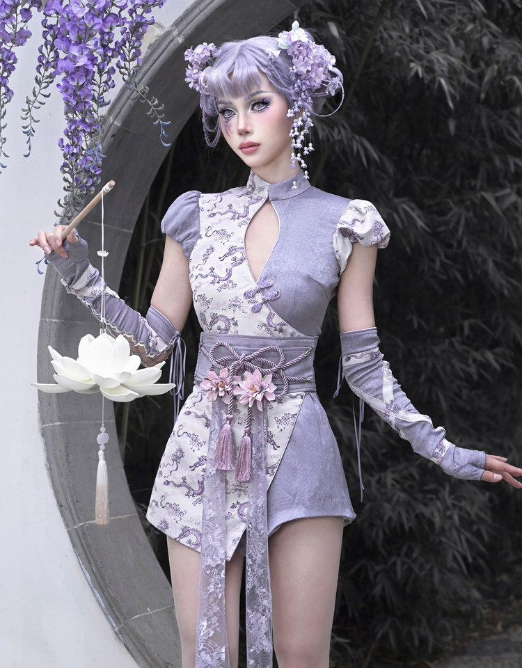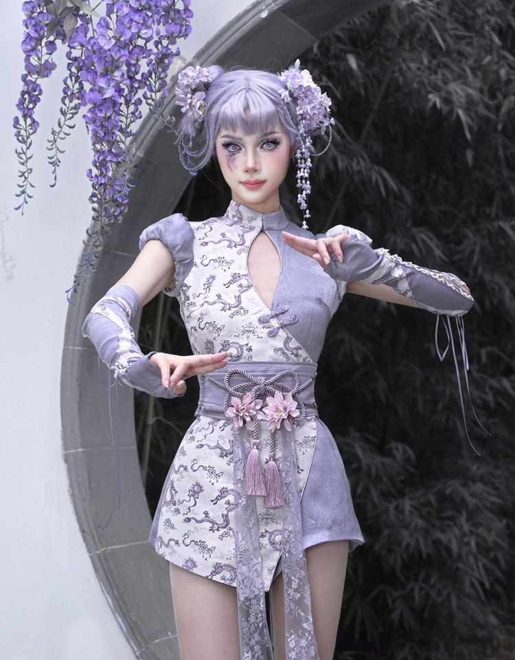 Agarwood Dragon Jacquard Cheongsam Culottes