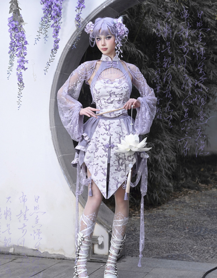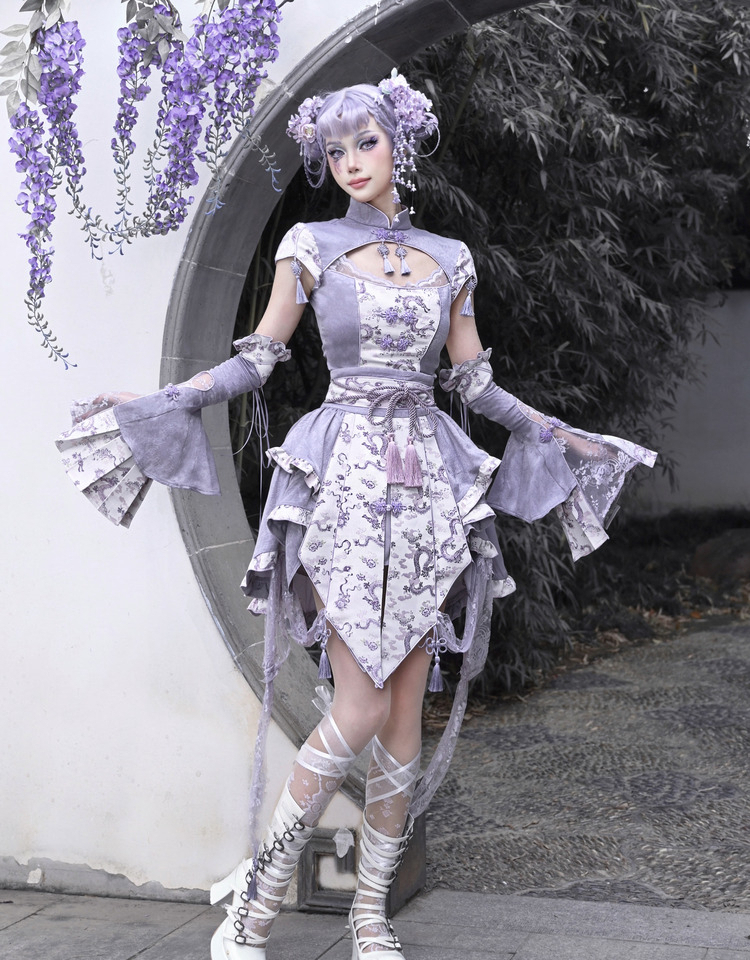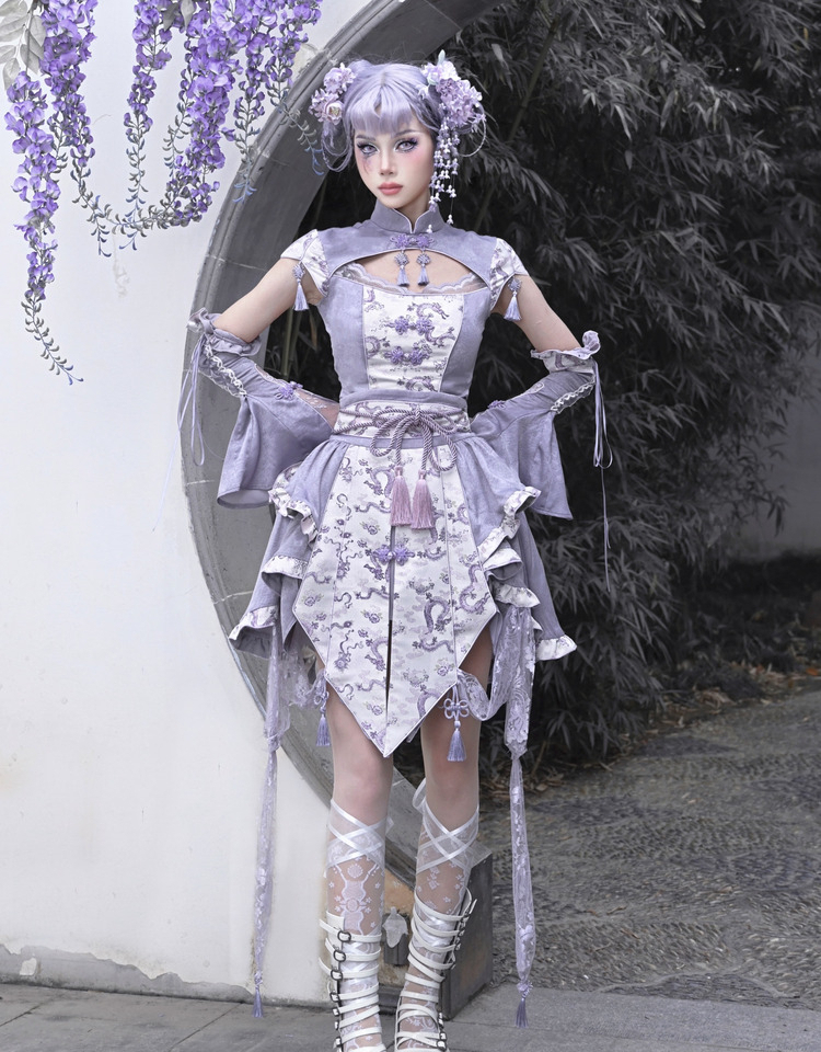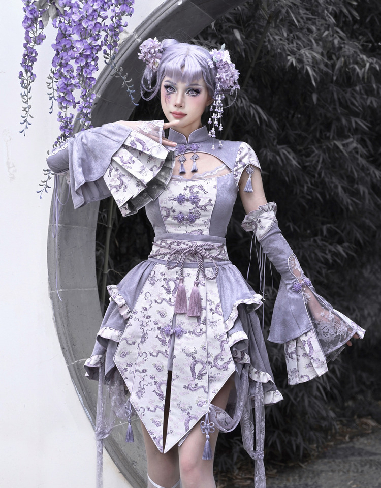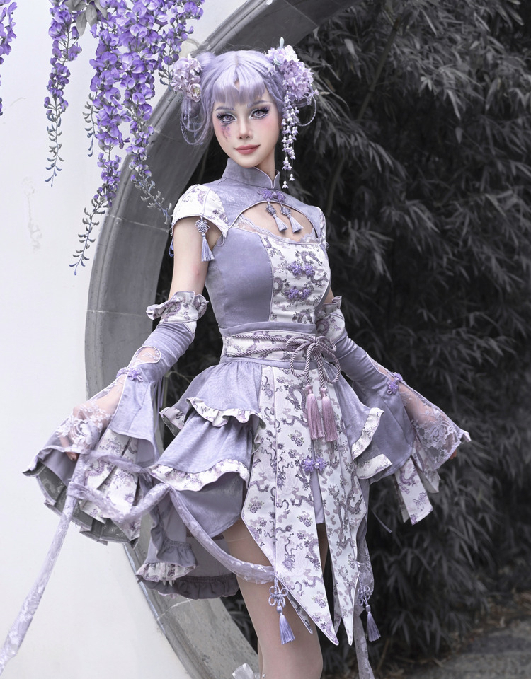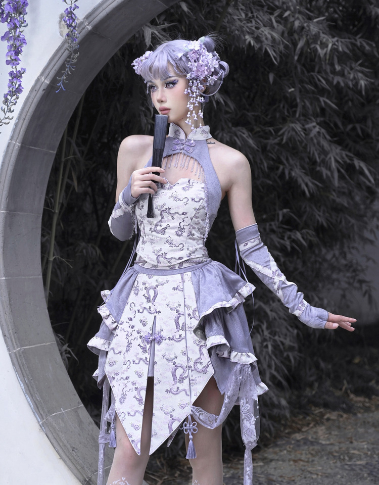 Agarwood Ruffled Slim Cheongsam Skirt