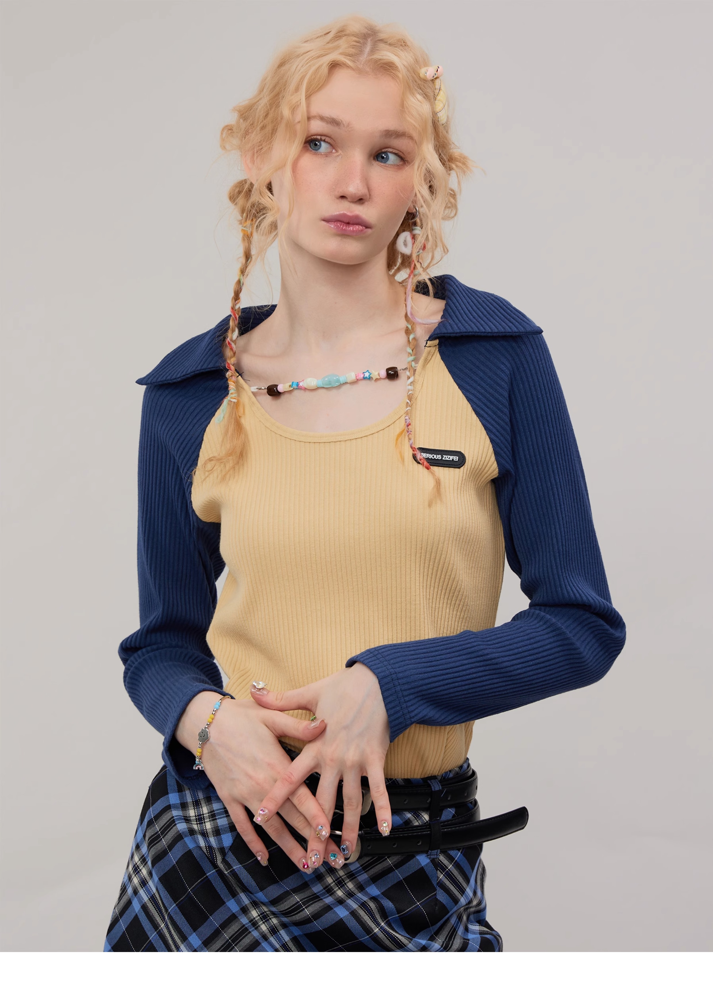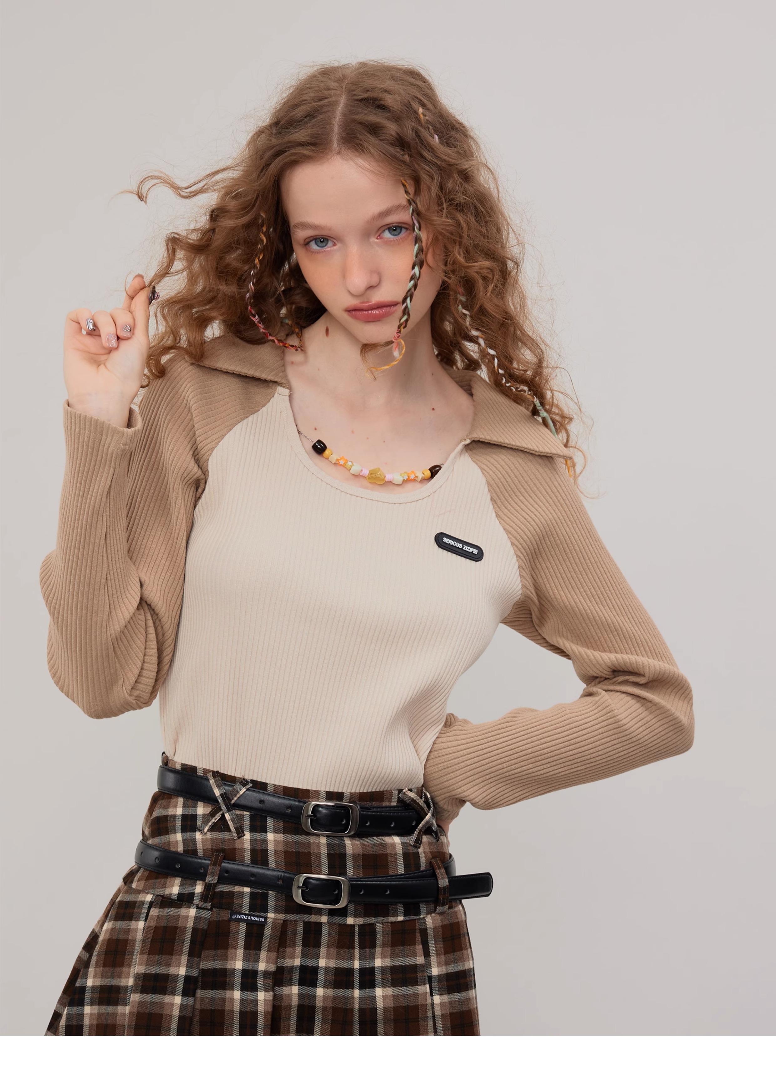 Raglan হাতা পোলো চেইন নিট শীর্ষ |