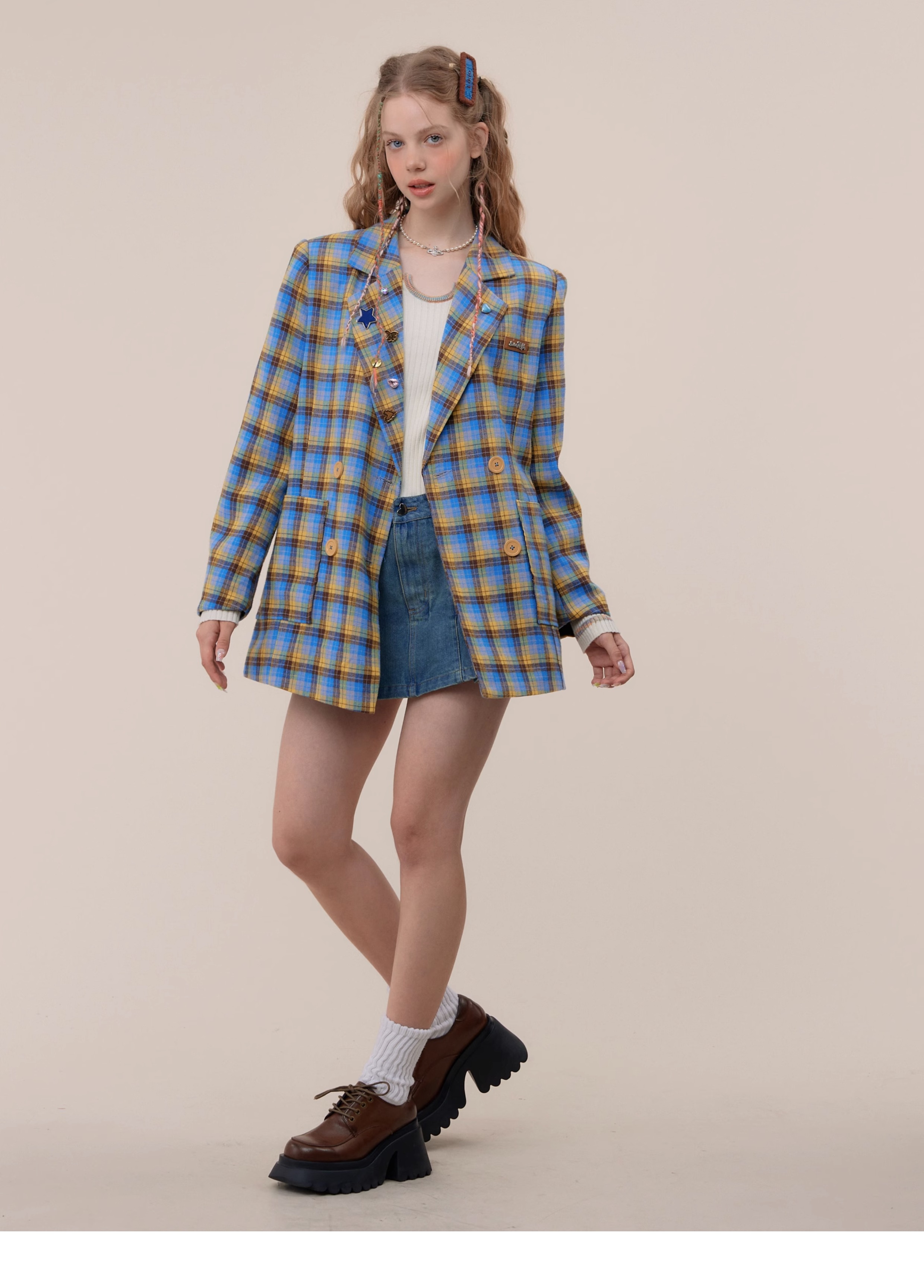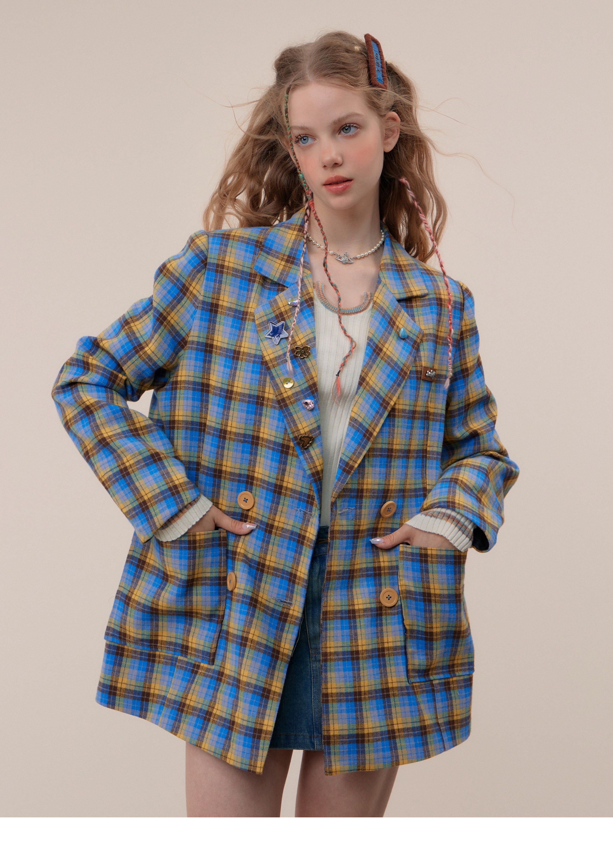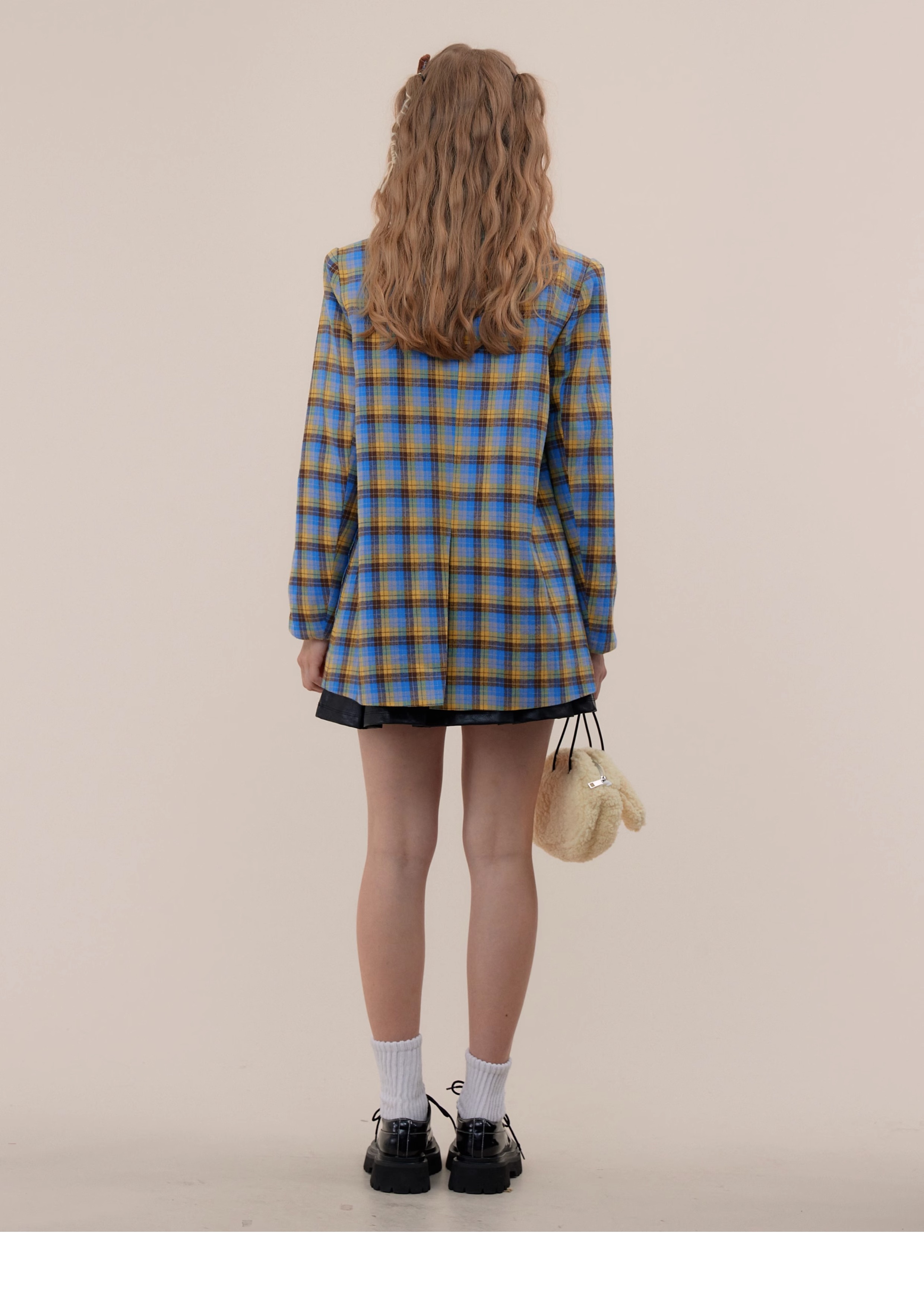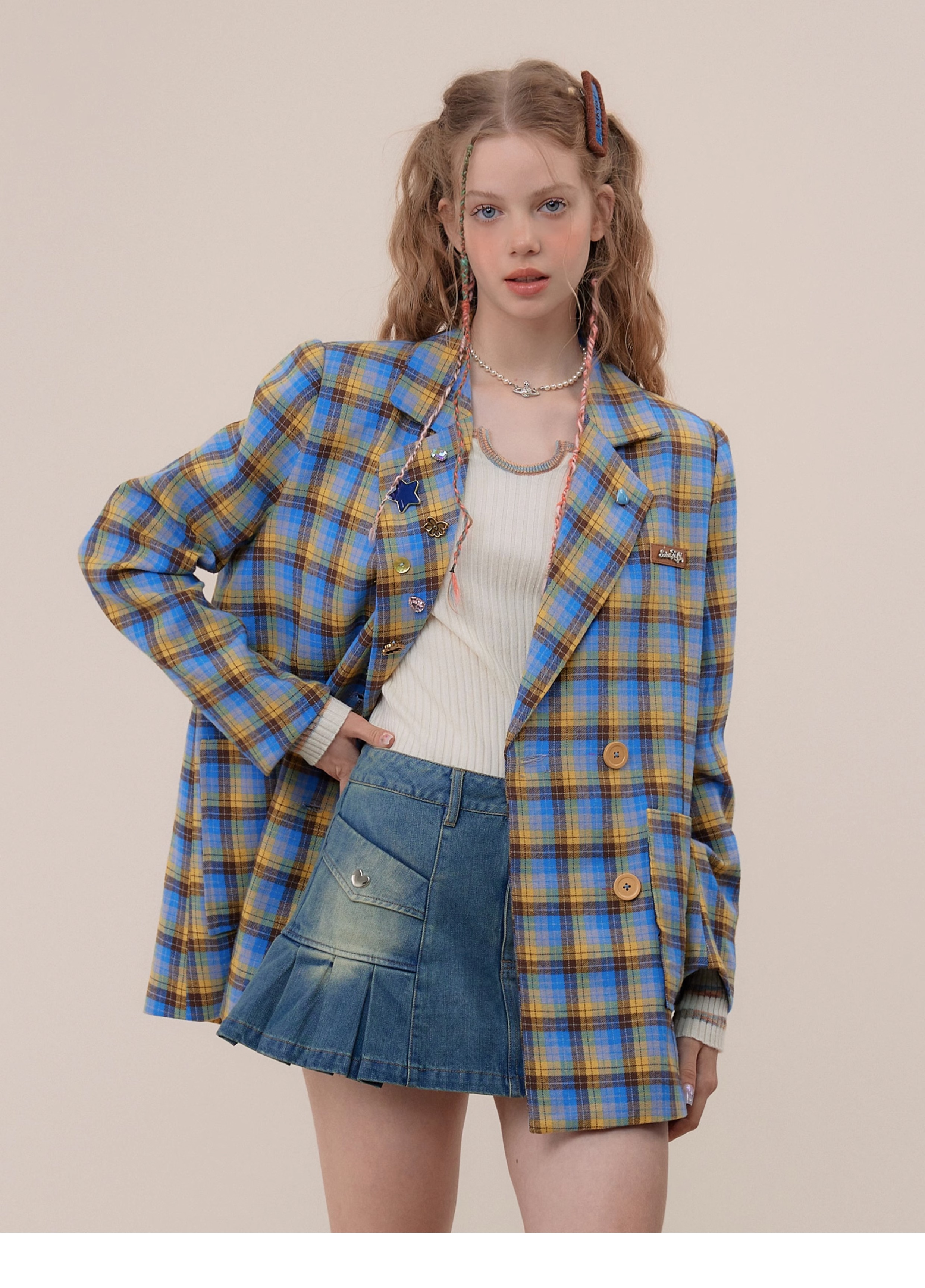 চেকার্ড ক্যাজুয়াল স্যুট কোট | শরৎ/শীতের জন্য হাই-এন্ড পাতলা ফিট রেট্রো ডিজাইন