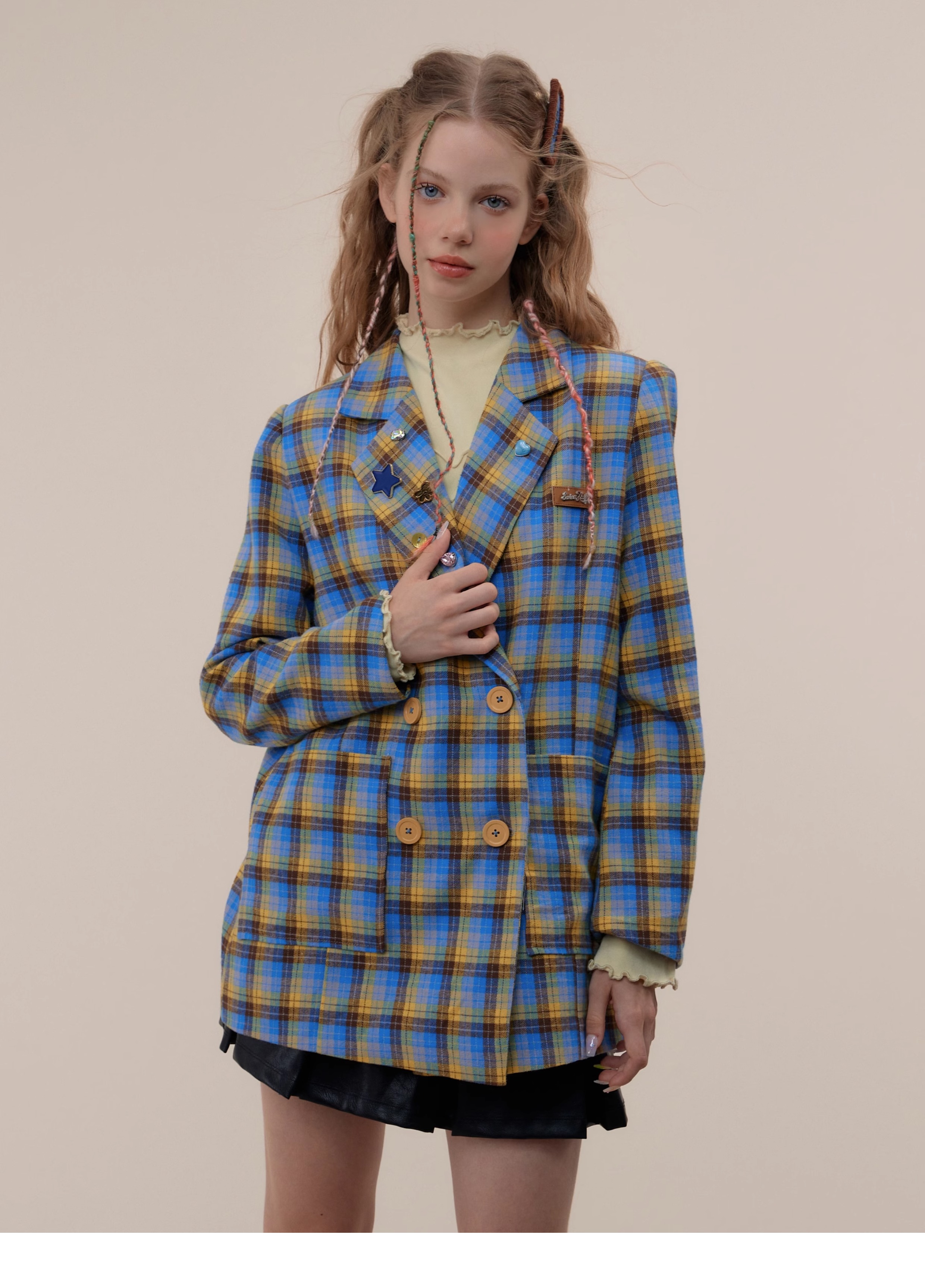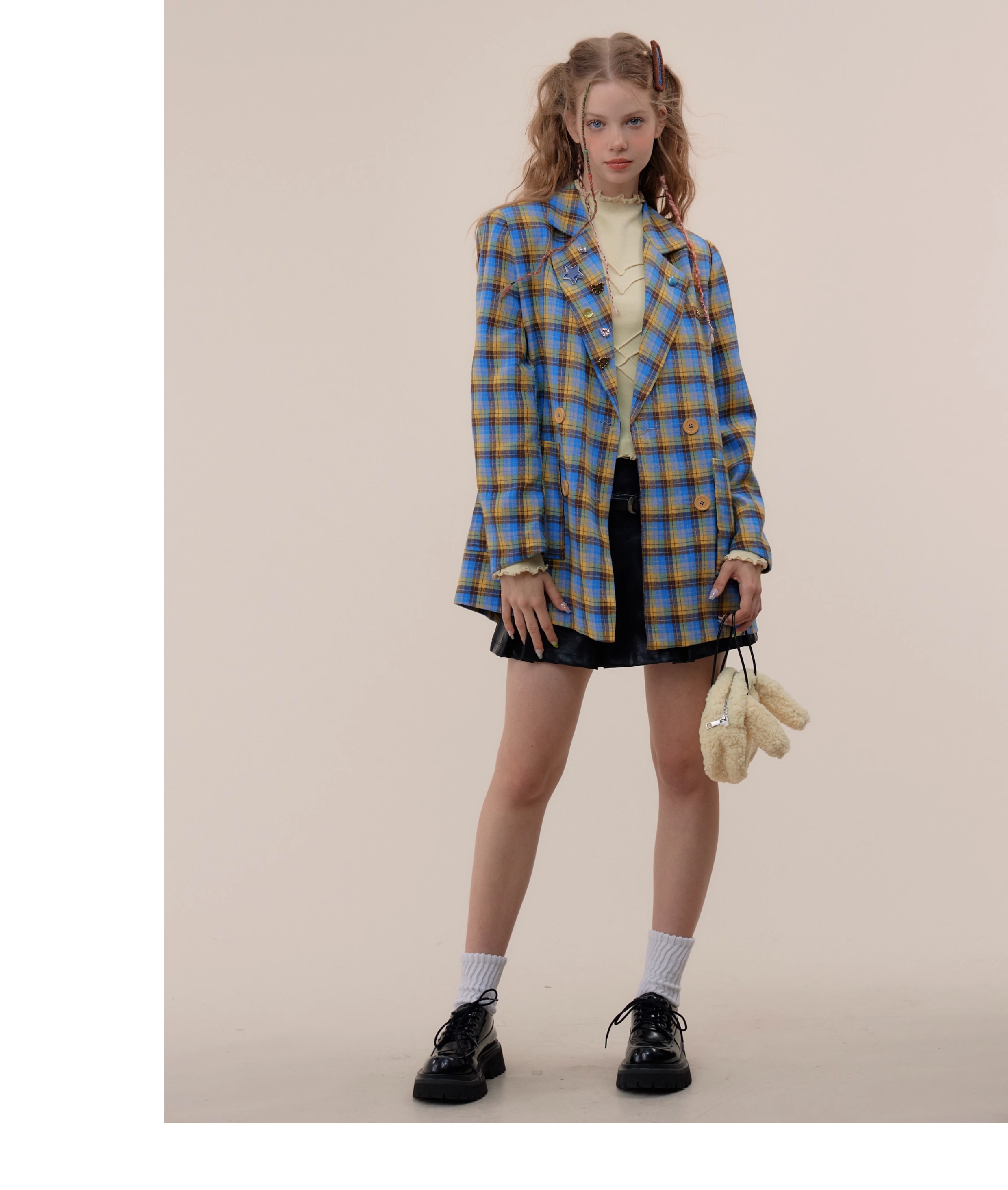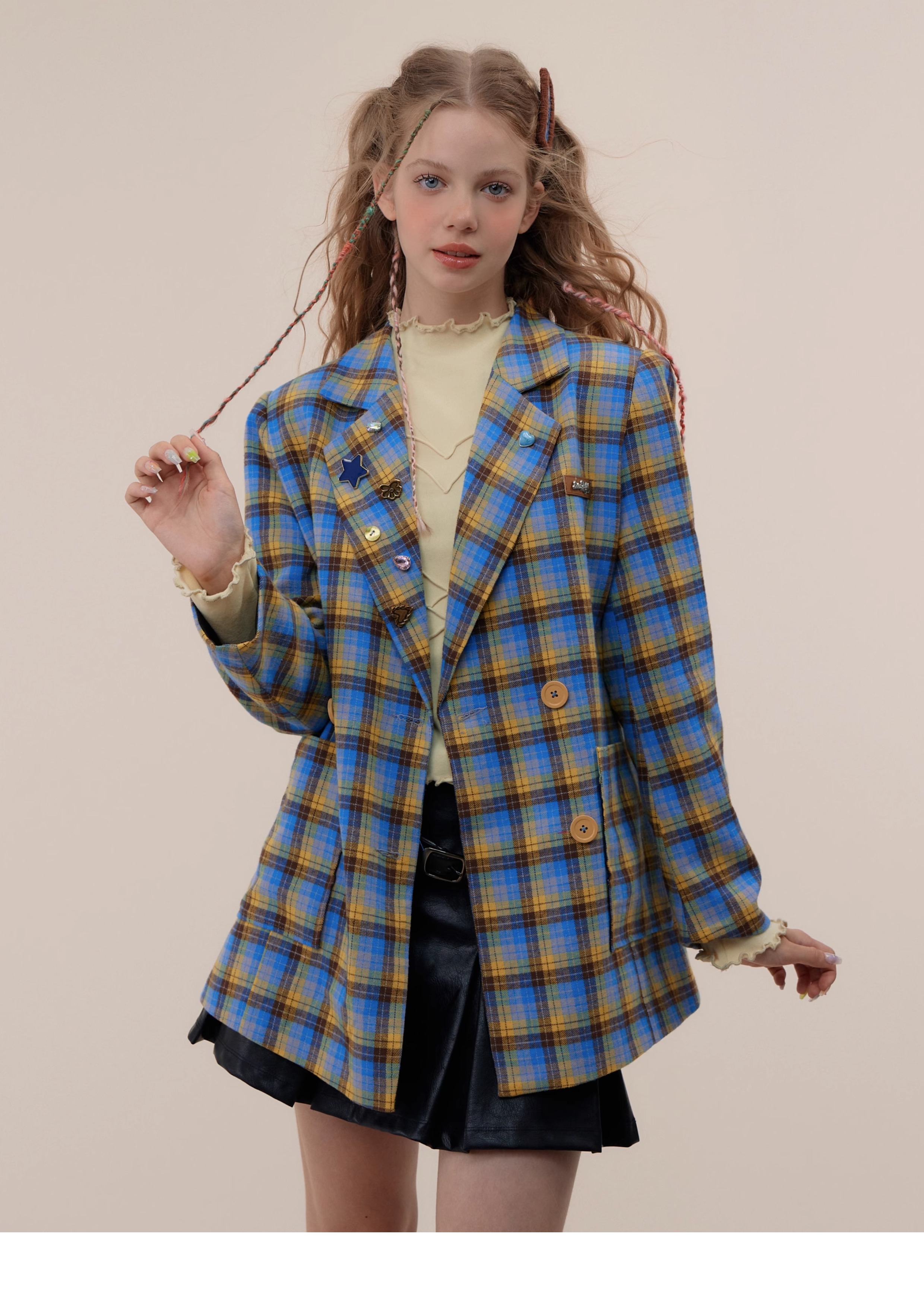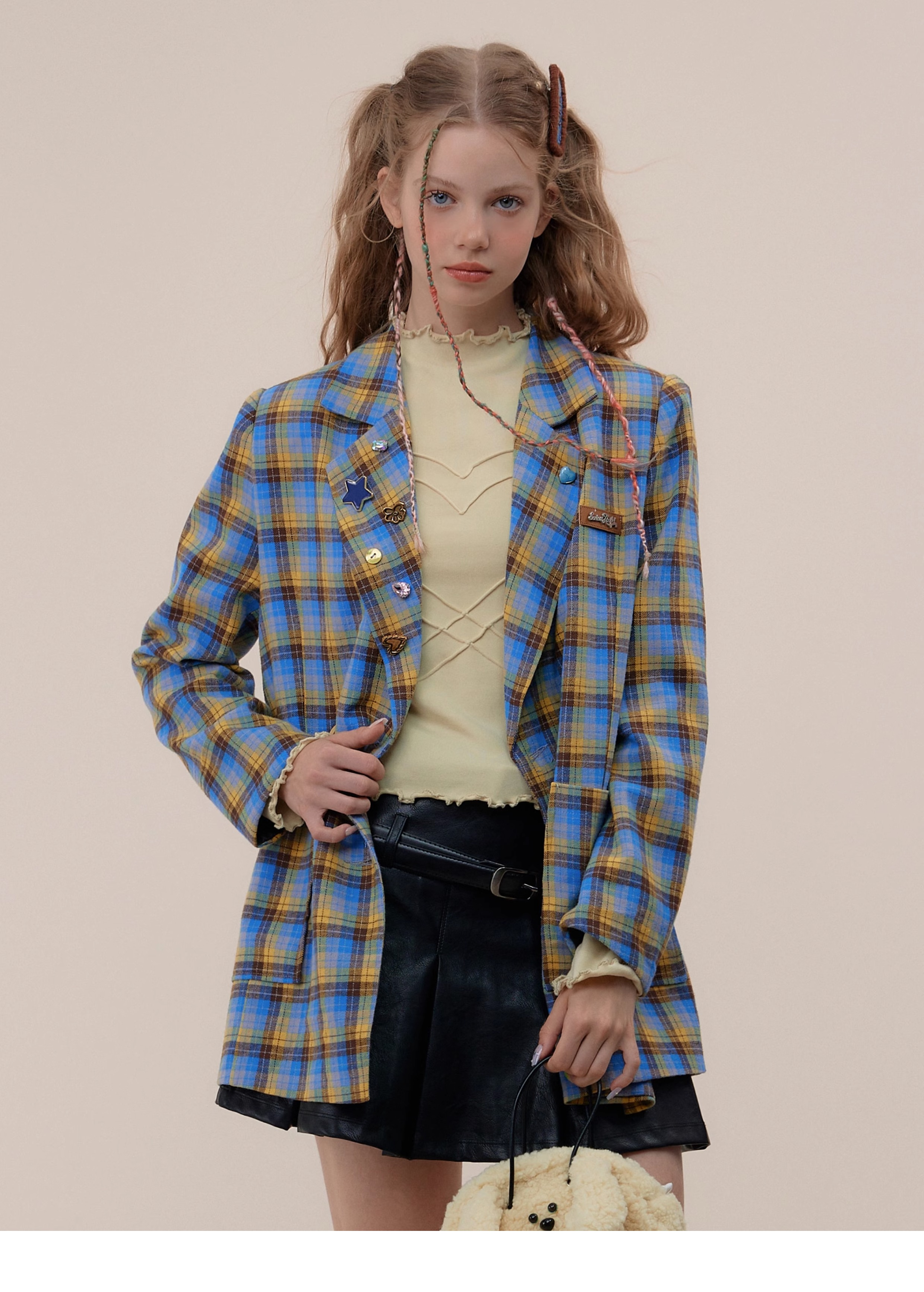 চেকার্ড ক্যাজুয়াল স্যুট কোট | শরৎ/শীতের জন্য হাই-এন্ড পাতলা ফিট রেট্রো ডিজাইন