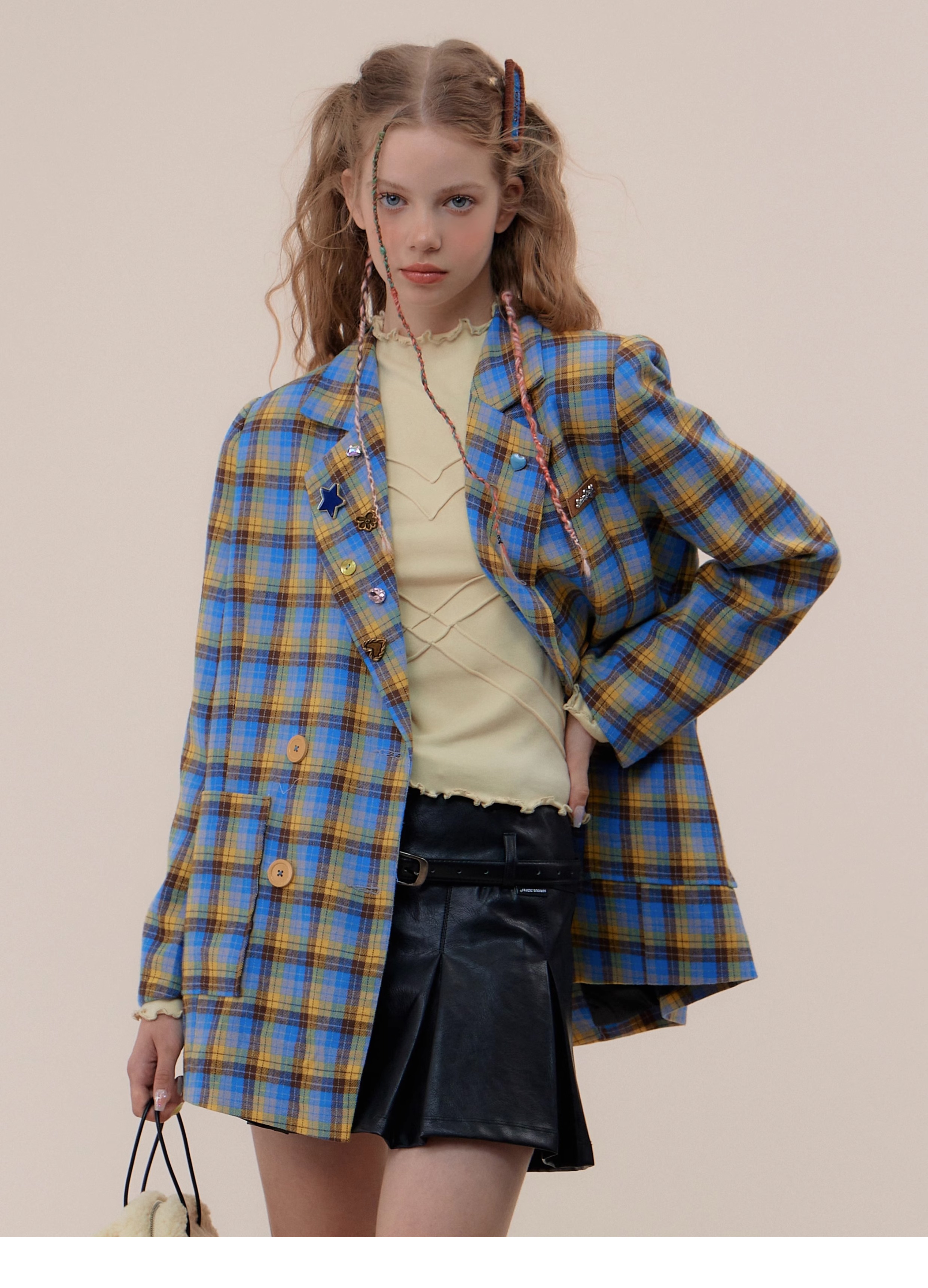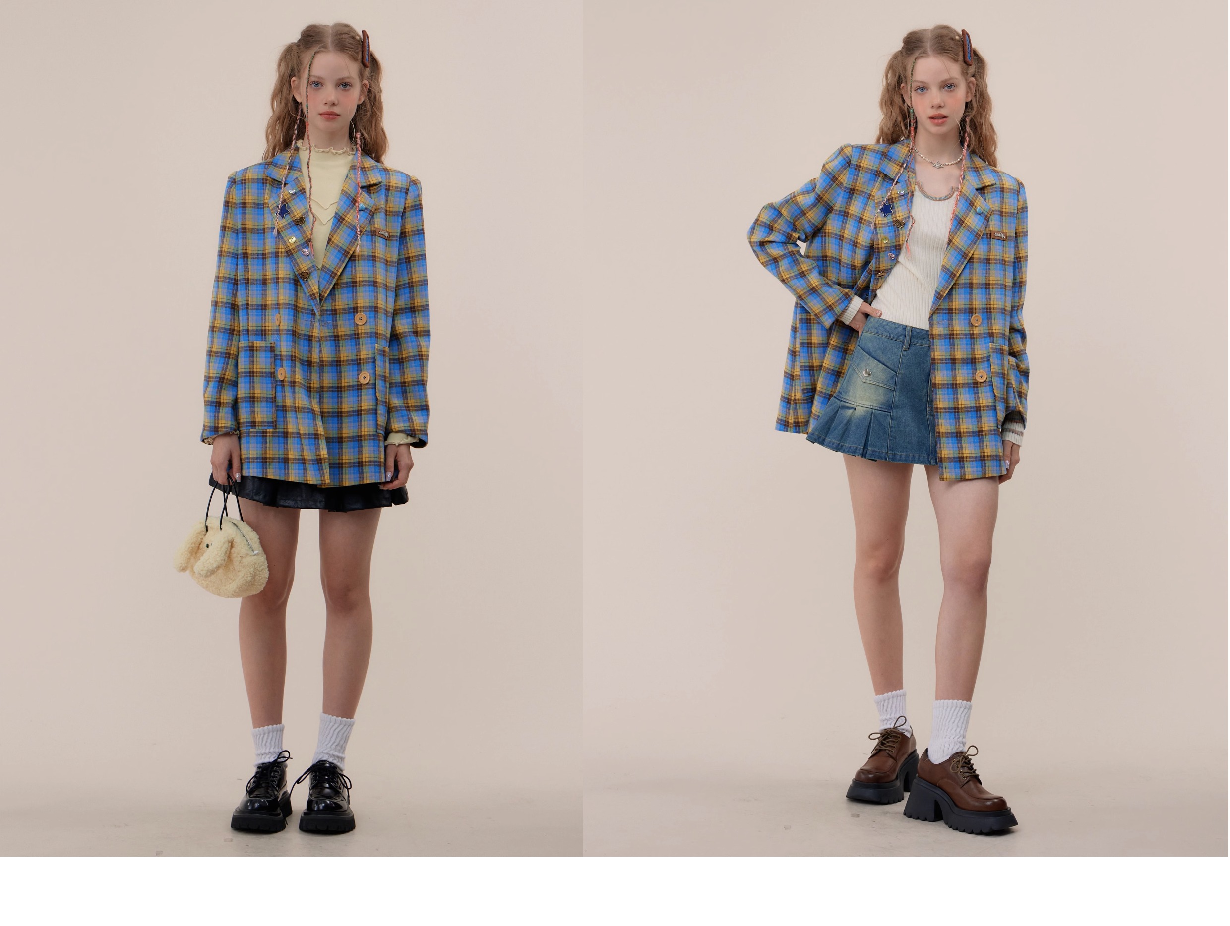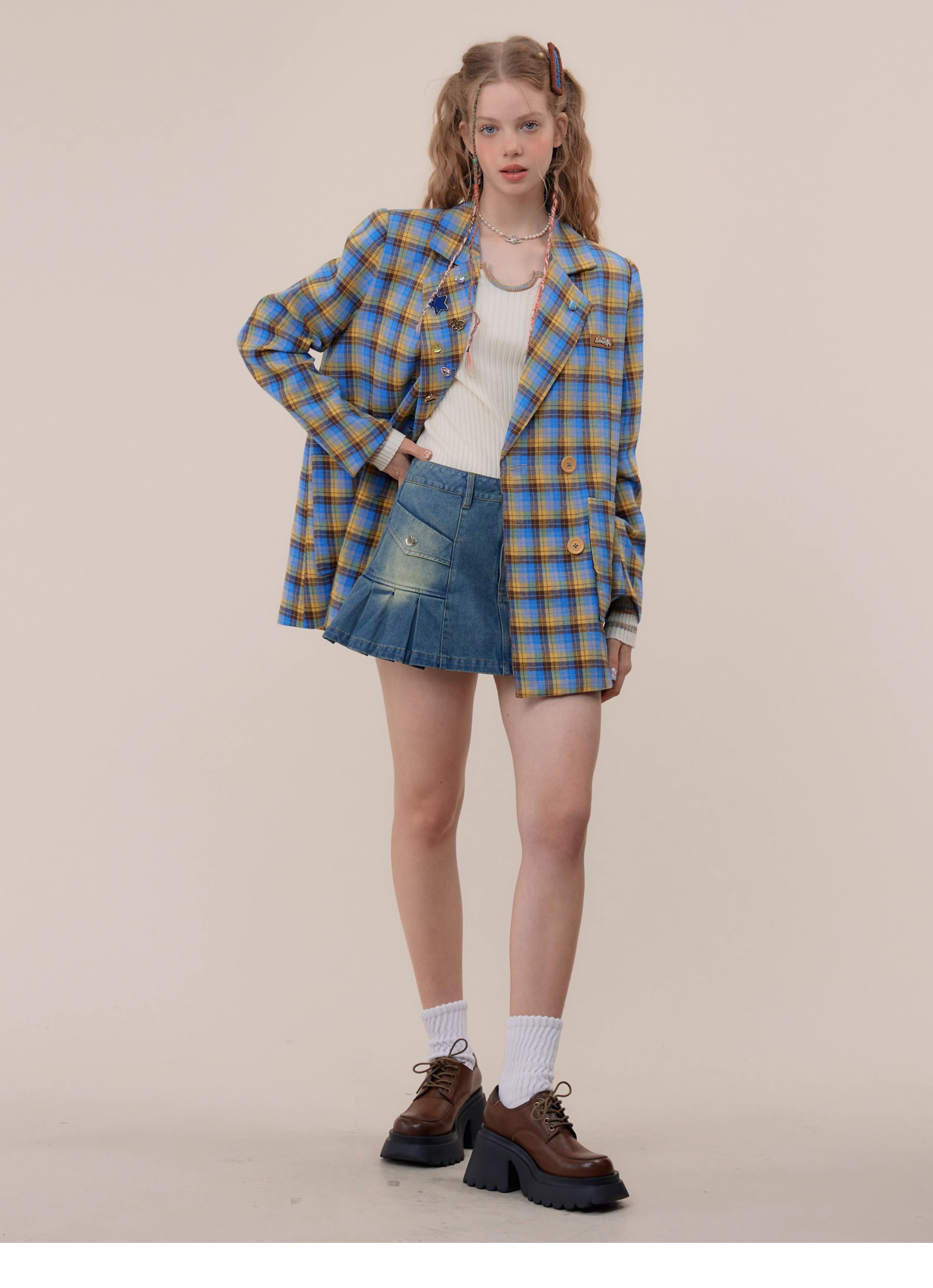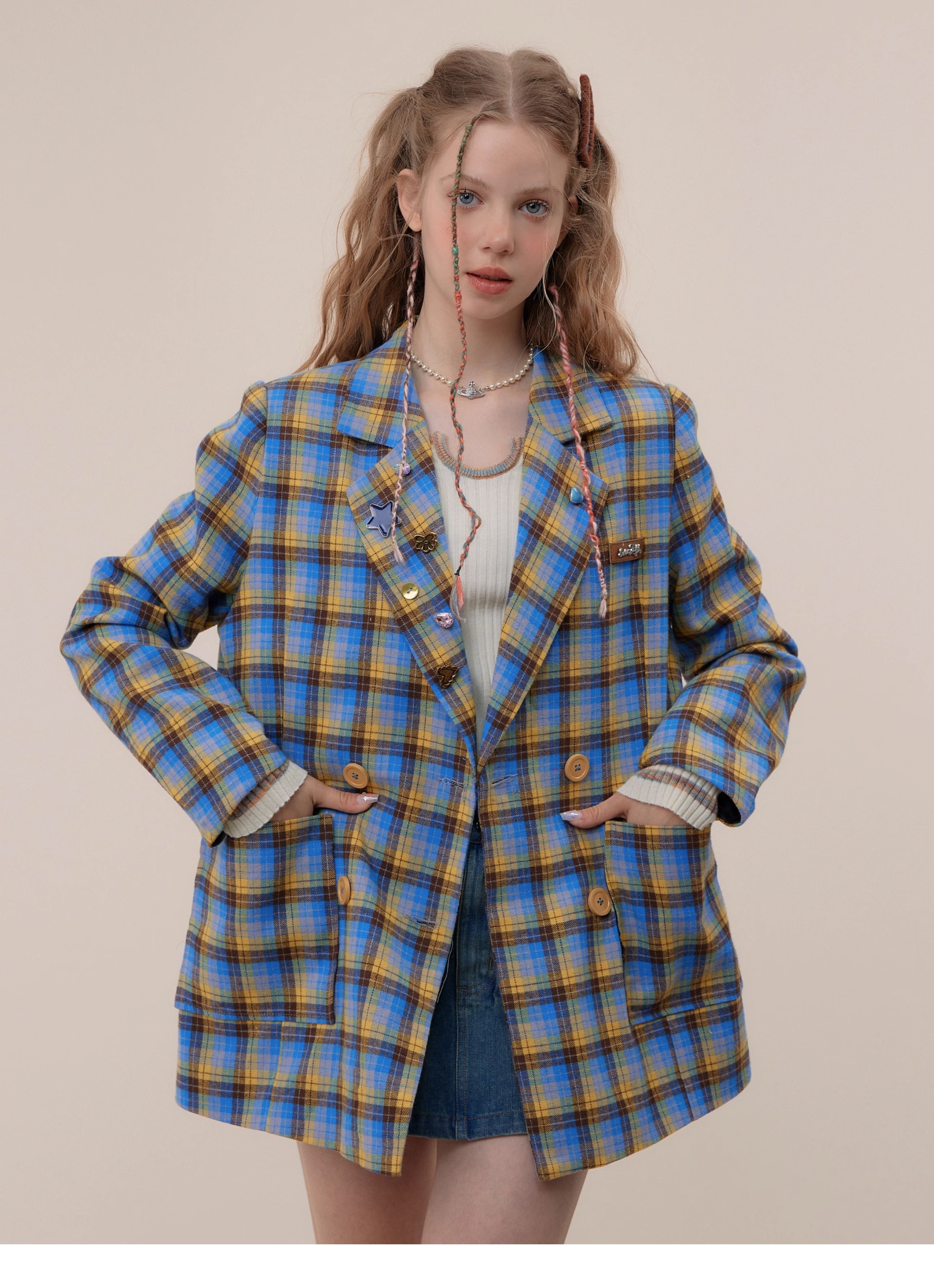 চেকার্ড ক্যাজুয়াল স্যুট কোট | শরৎ/শীতের জন্য হাই-এন্ড পাতলা ফিট রেট্রো ডিজাইন