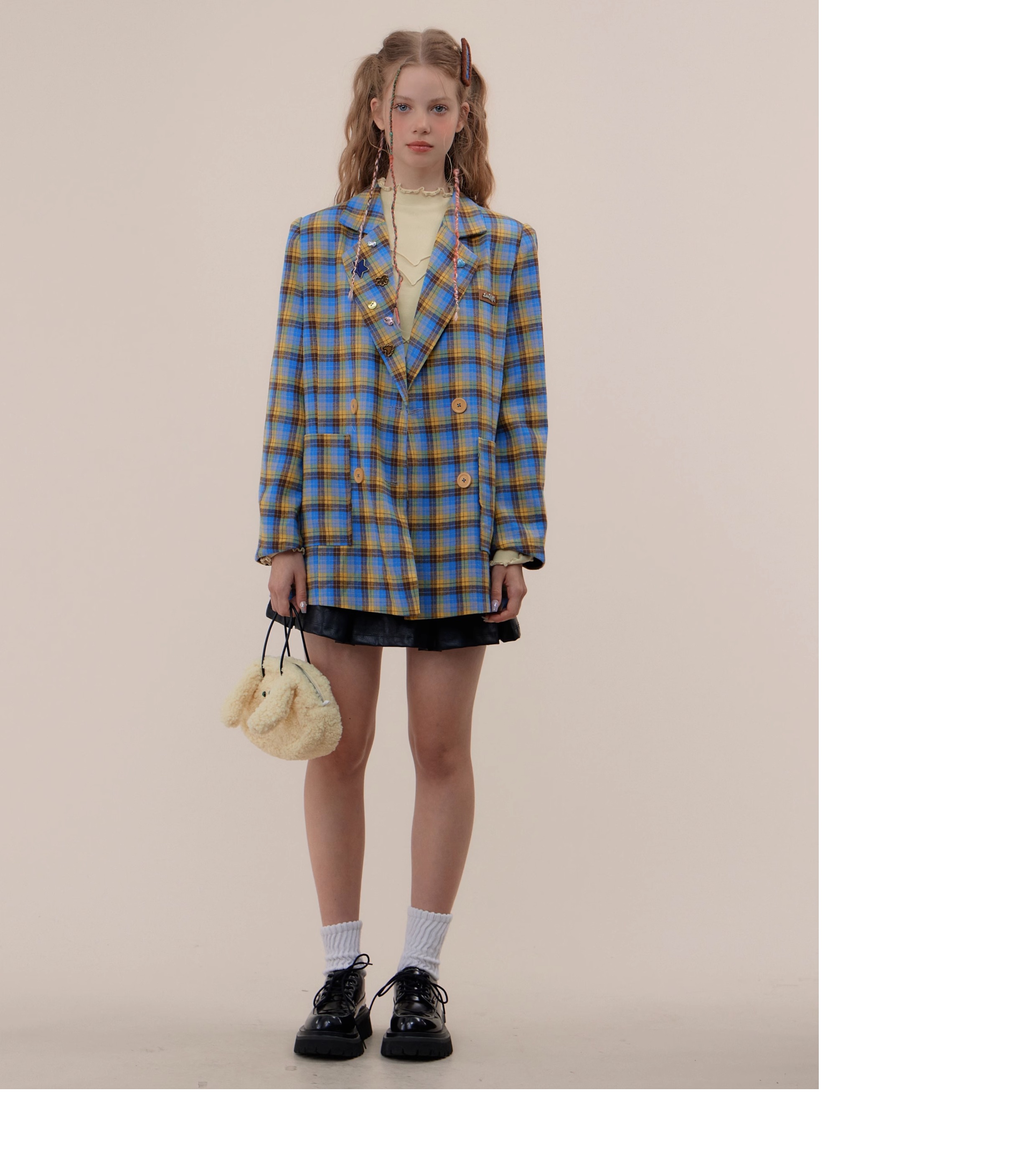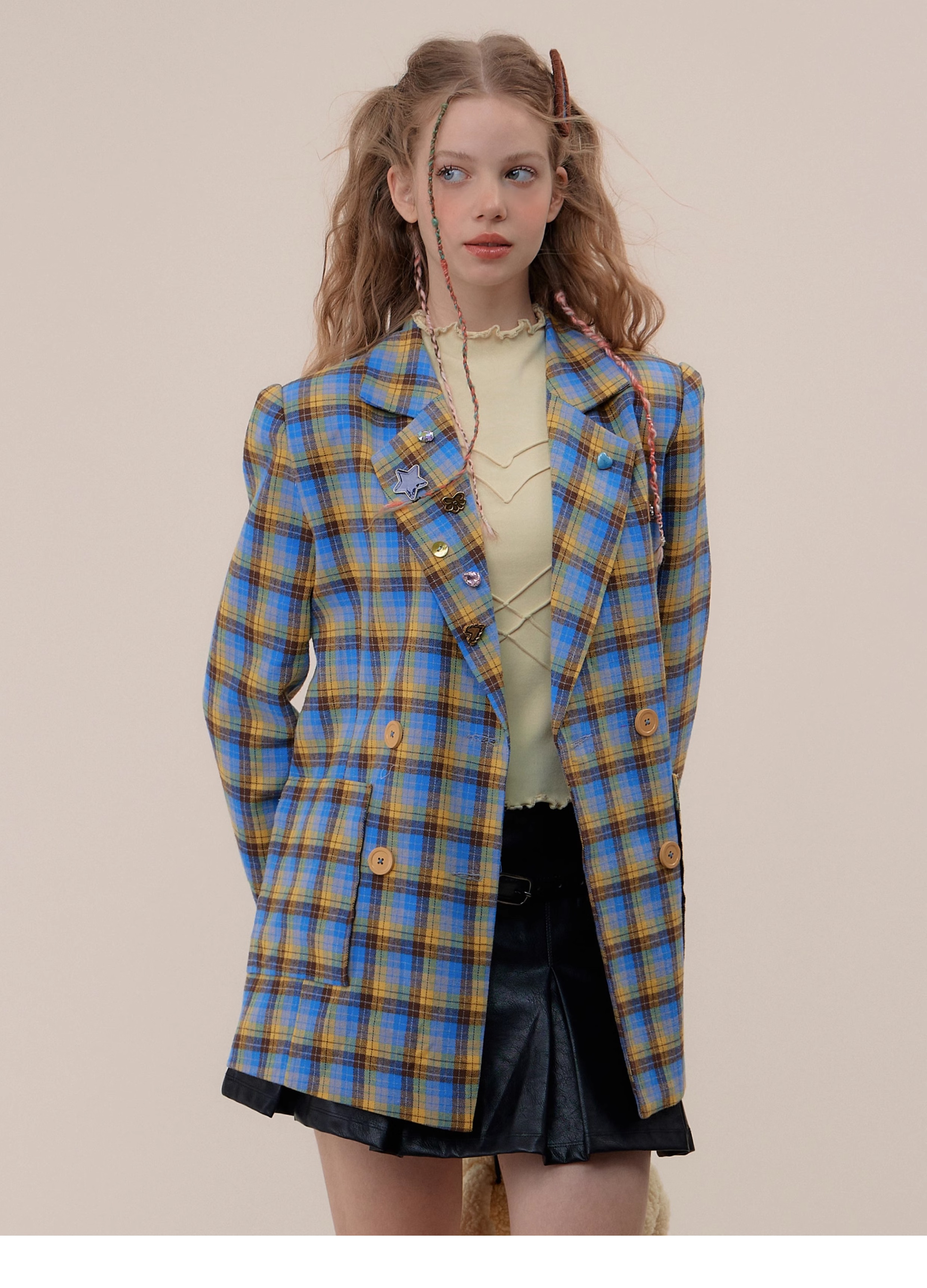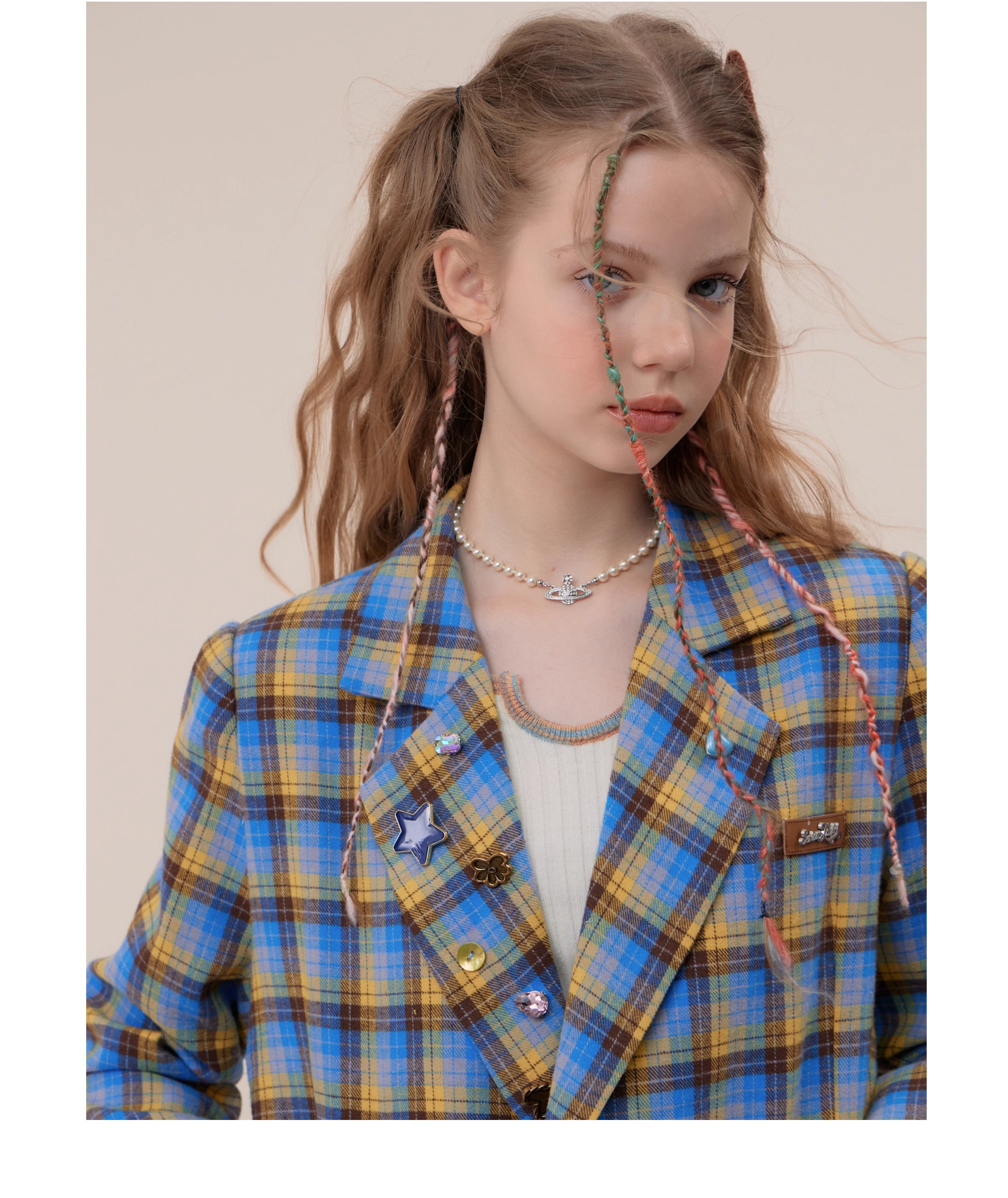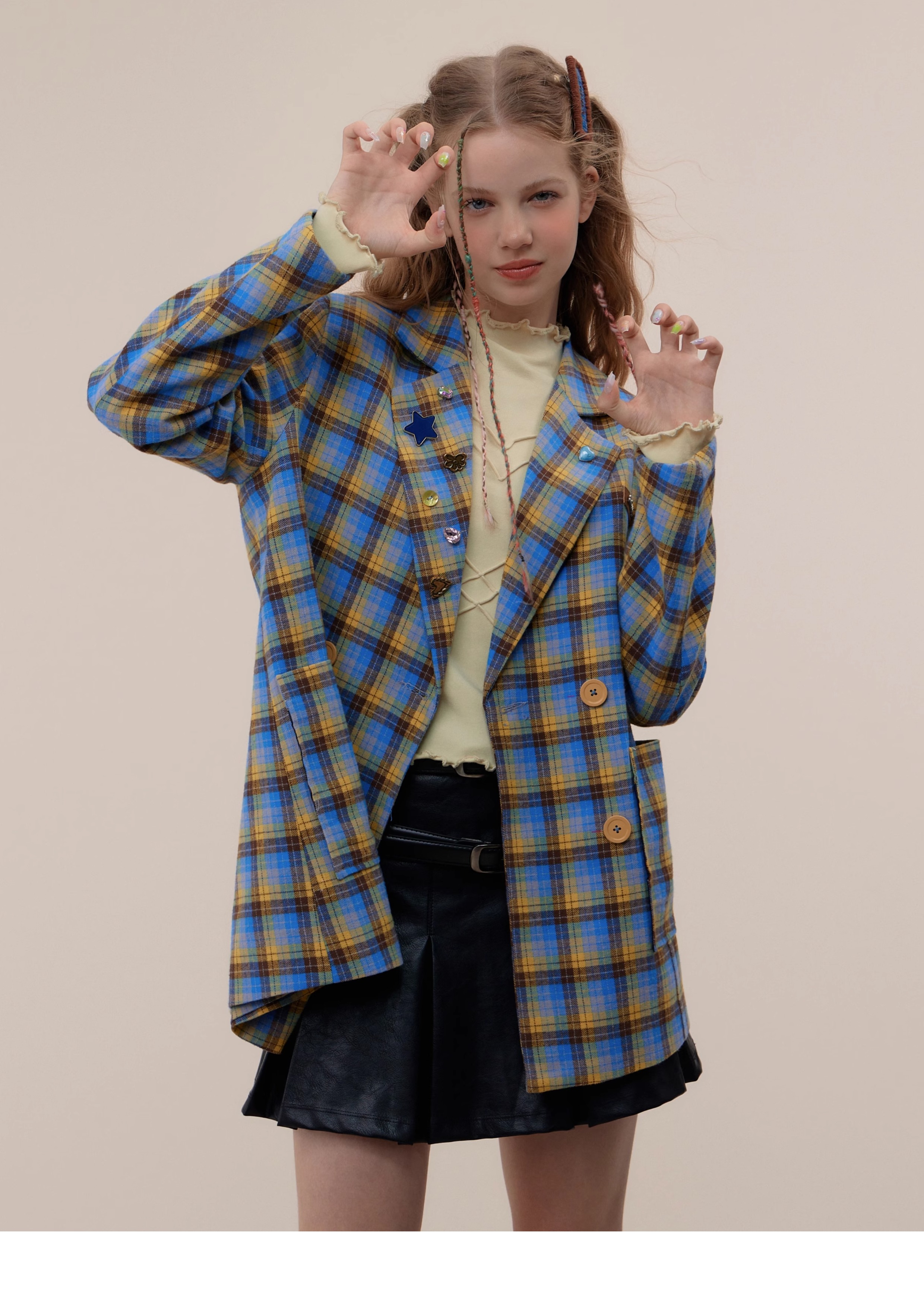 চেকার্ড ক্যাজুয়াল স্যুট কোট | শরৎ/শীতের জন্য হাই-এন্ড পাতলা ফিট রেট্রো ডিজাইন
