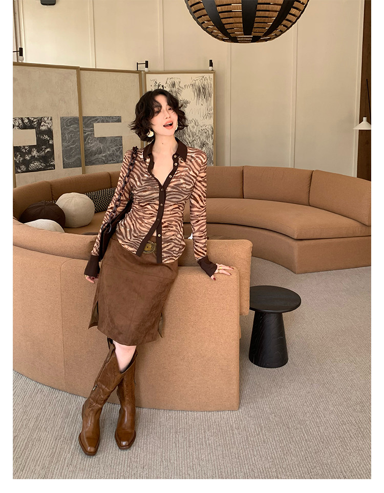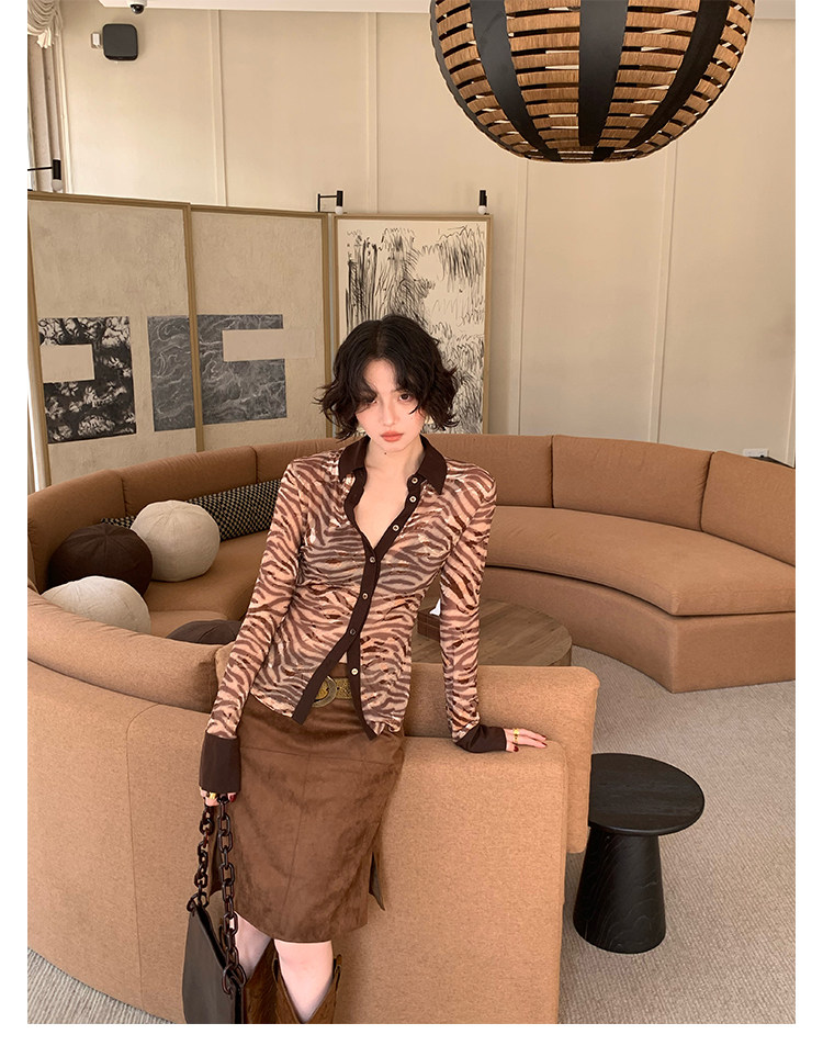 Beast Print Zebra Slim-Waist Shirt – Hong Kong Retro Autumn Bold Look