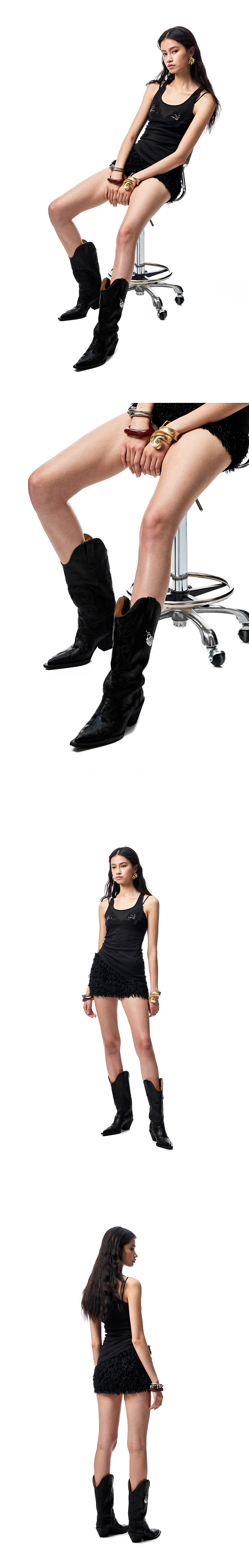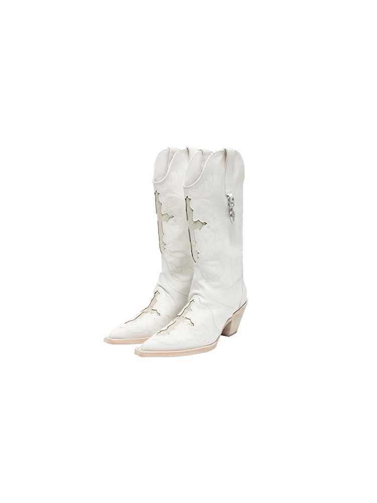 Classic V-Cut Embroidered Leather Knight Boots – Mid-Calf Pointed Toe