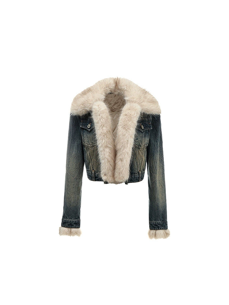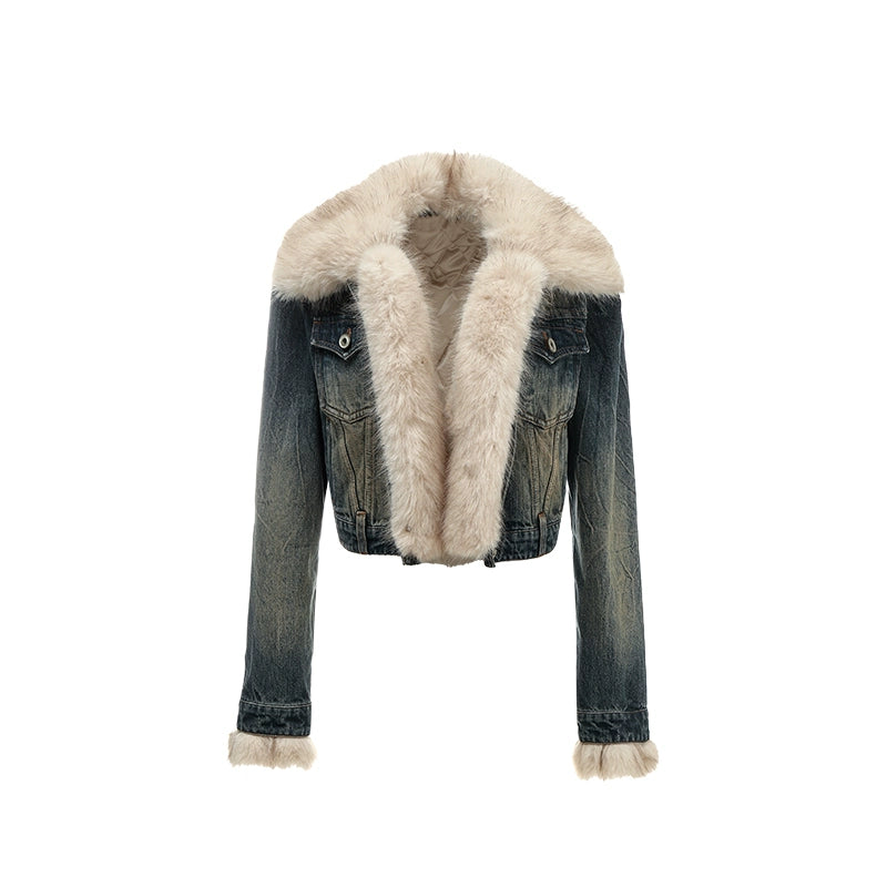 Vintage Slim Fit Detachable Denim Jacket with Cotton Patchwork – Fall/Winter Style