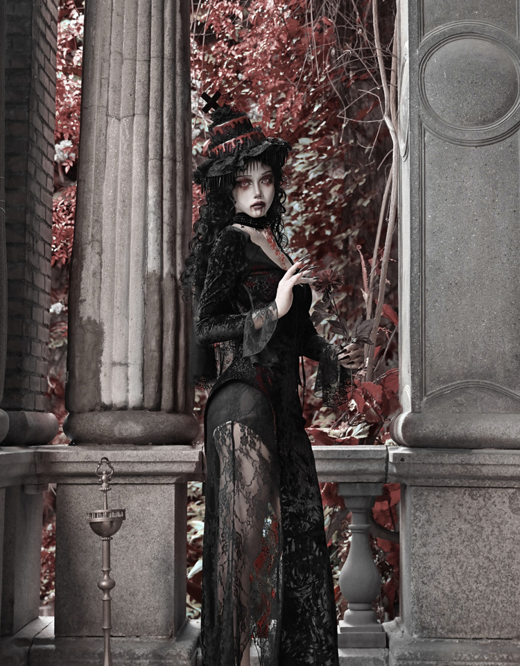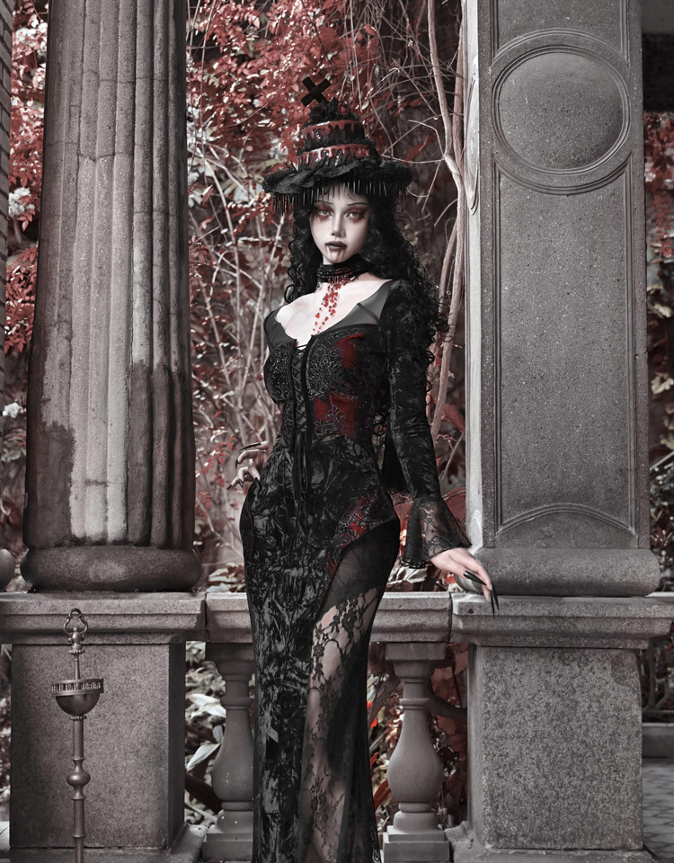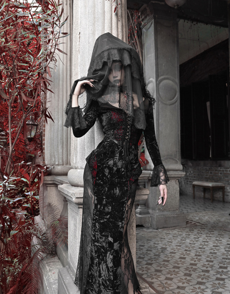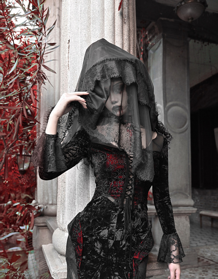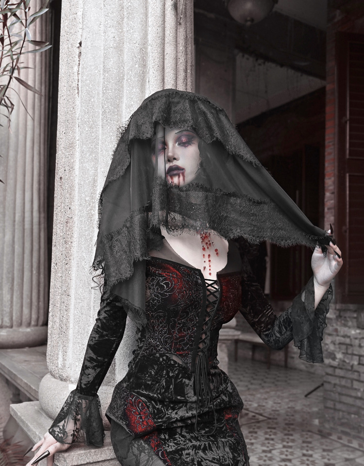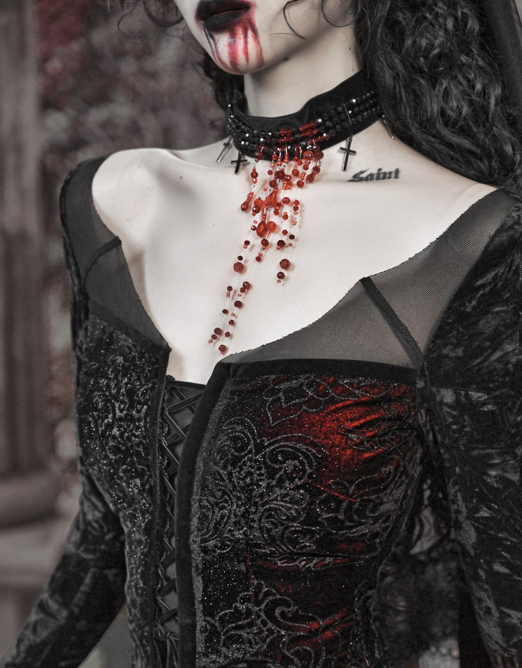 Crimson Gothic Velvet Dress – Slim Bat-Sleeve Glitter Fishtail Gown