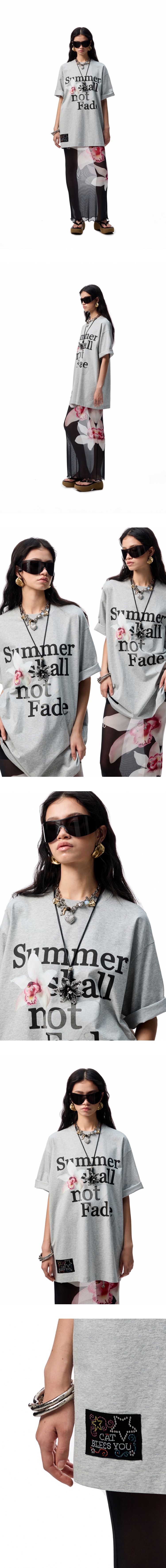 Floral Monogram Oversized T-Shirt – Loose Dropped Shoulder Rhinestone Top
