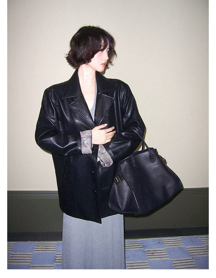 Eco-Leather Loose Silhouette Jacket – Hong Kong Retro Autumn Modern Look
