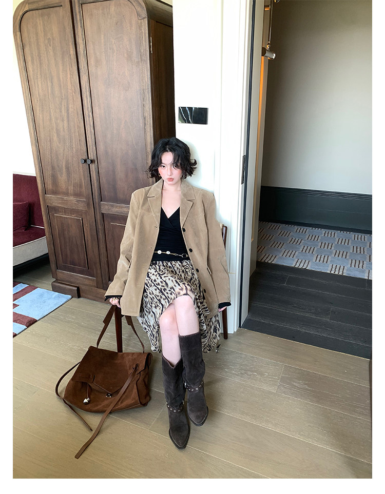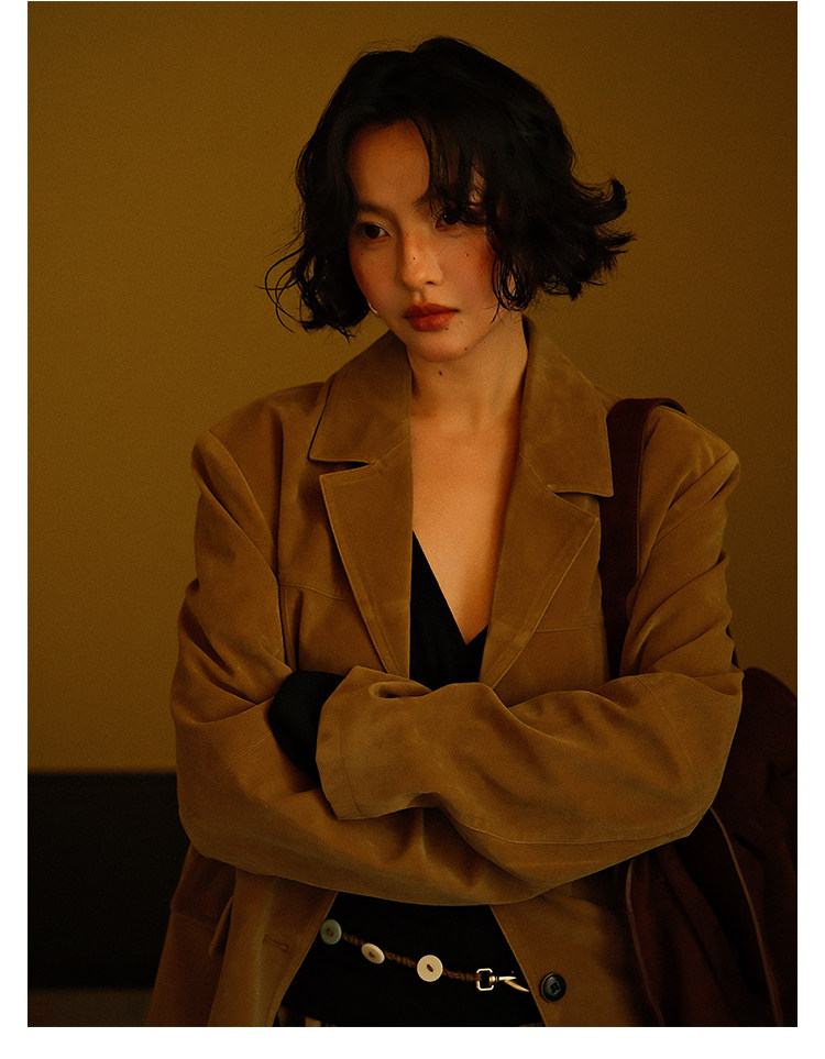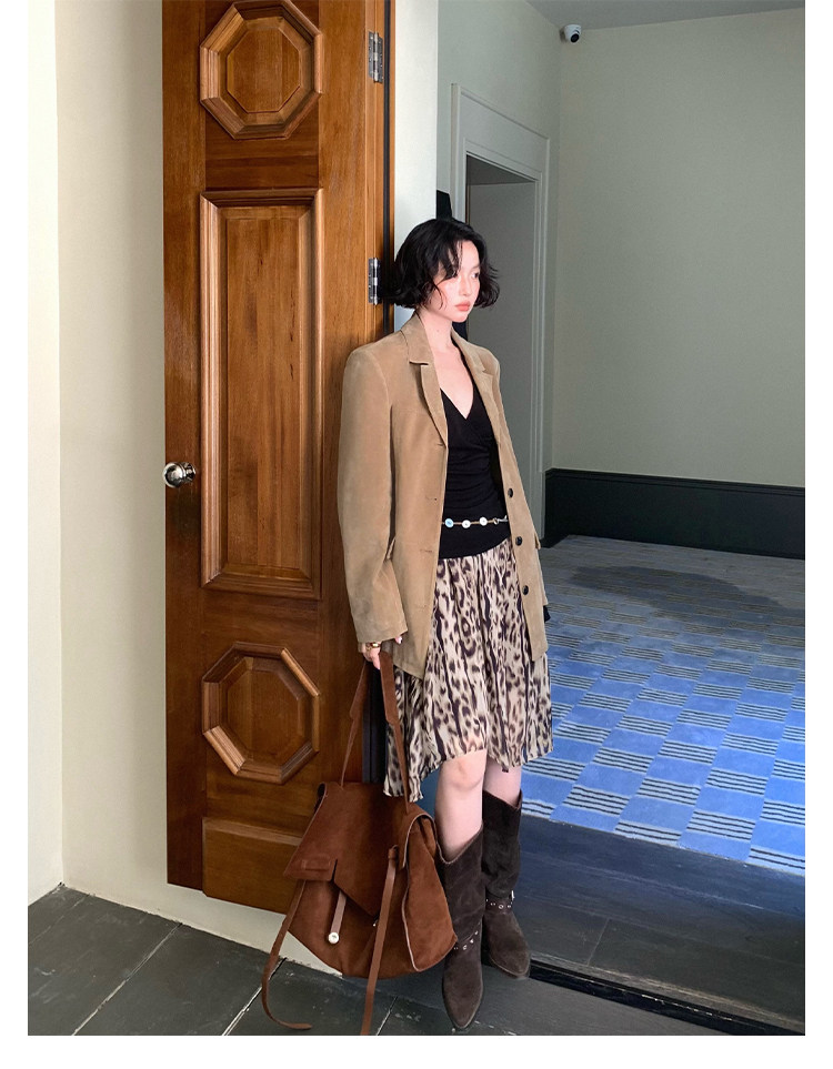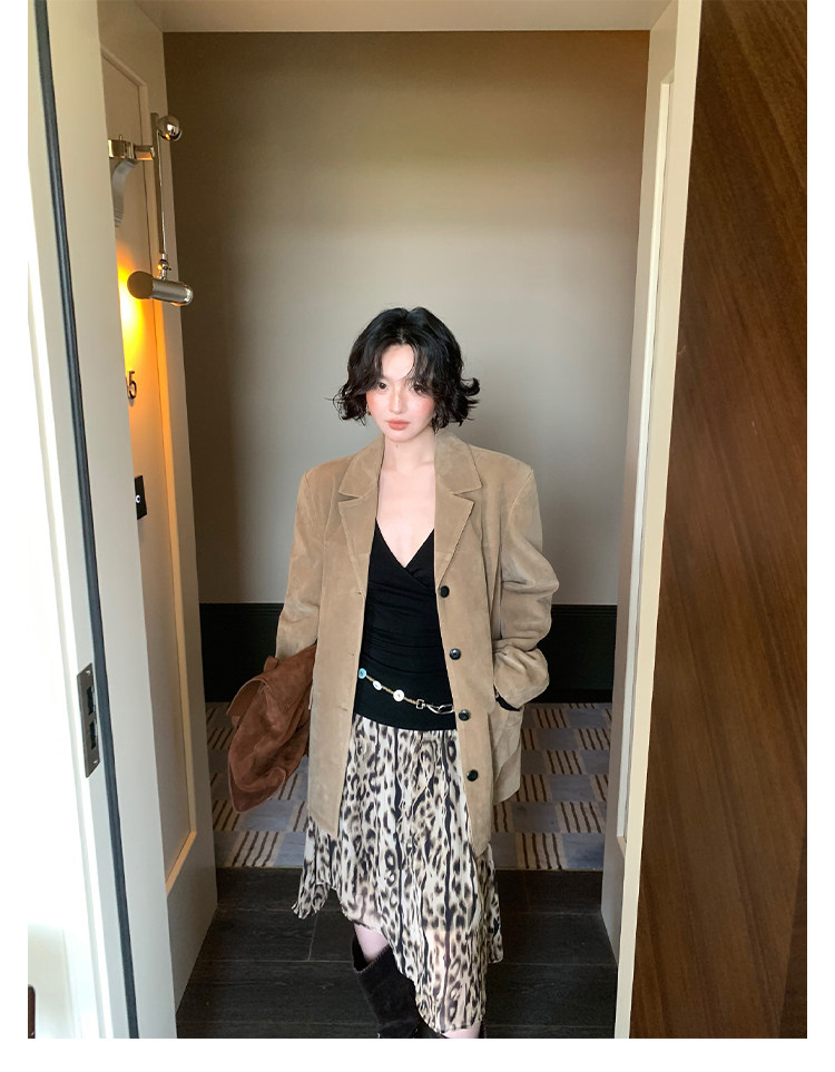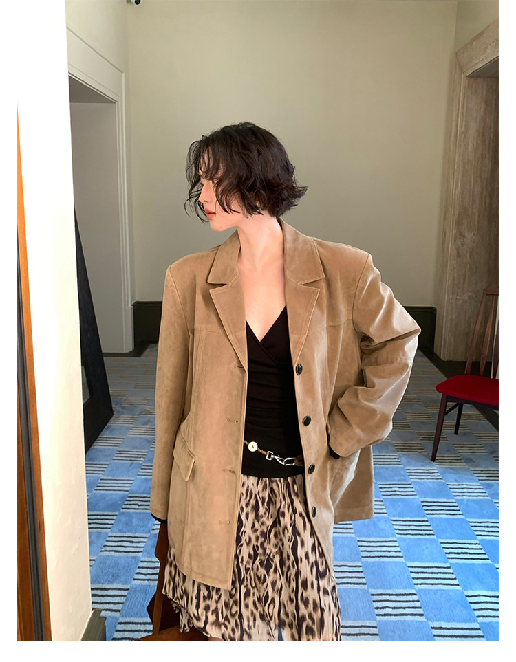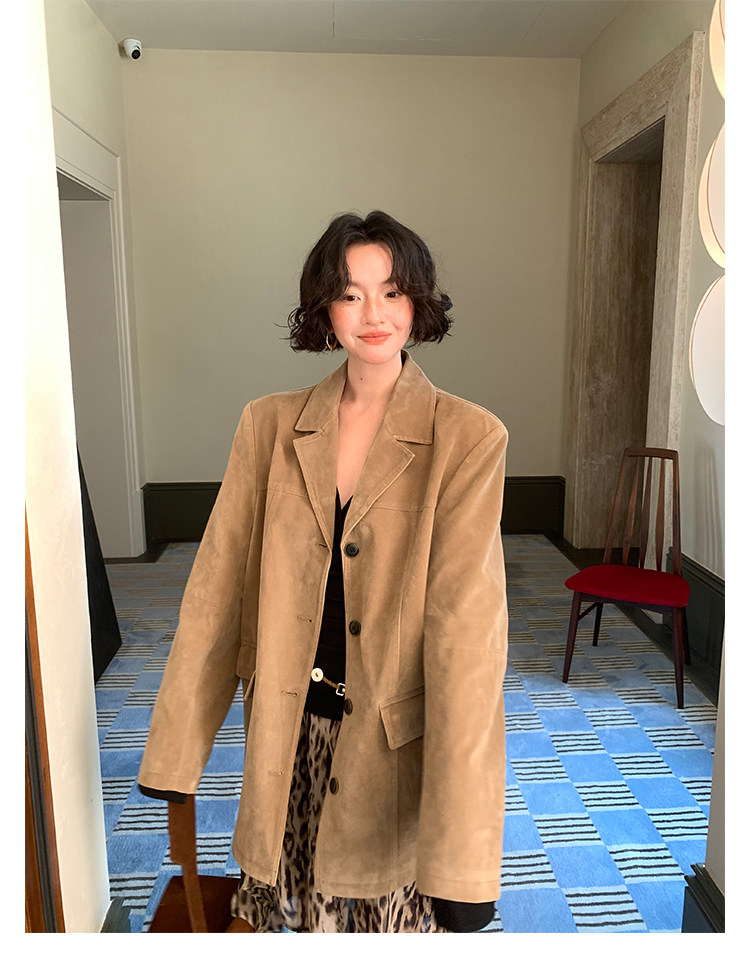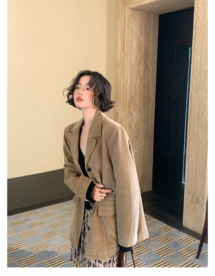 Suede Single-Breasted Blazer – Hong Kong Retro Autumn Casual Tailoring