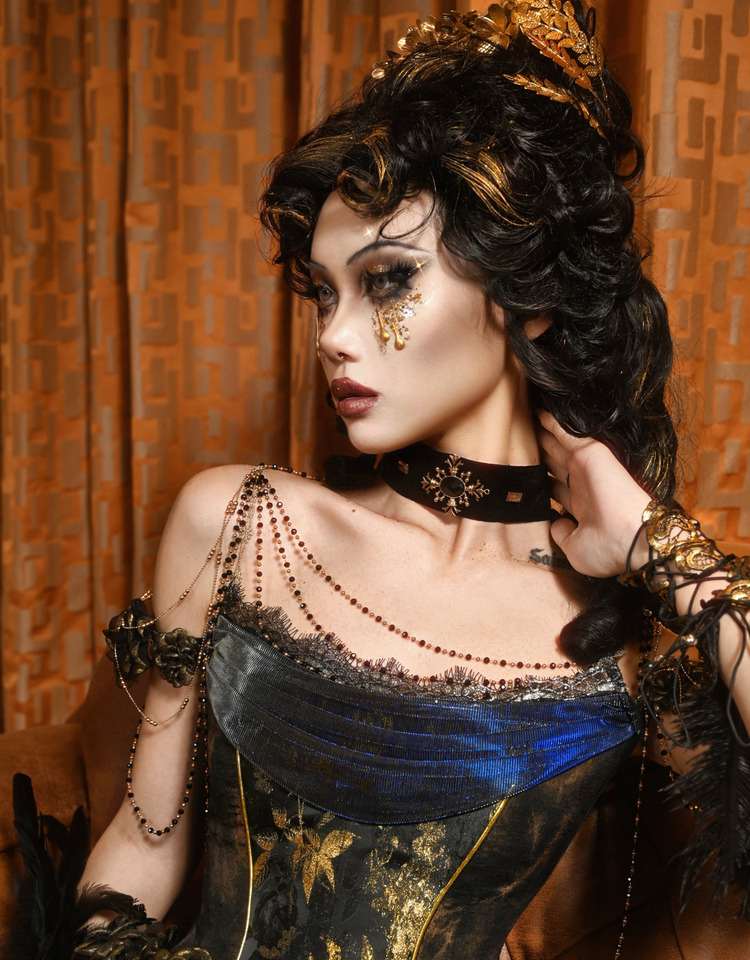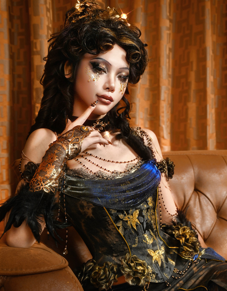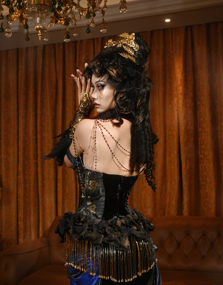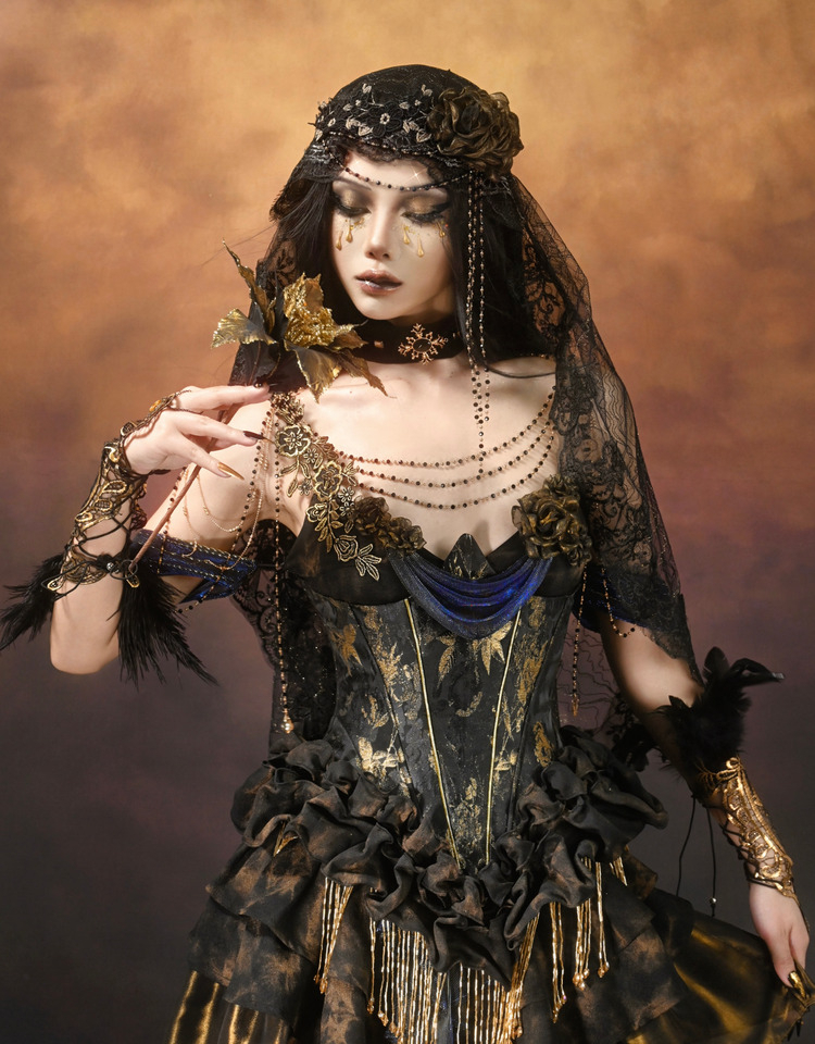 Hua Lantern Velvet Evening Dress with Necklace