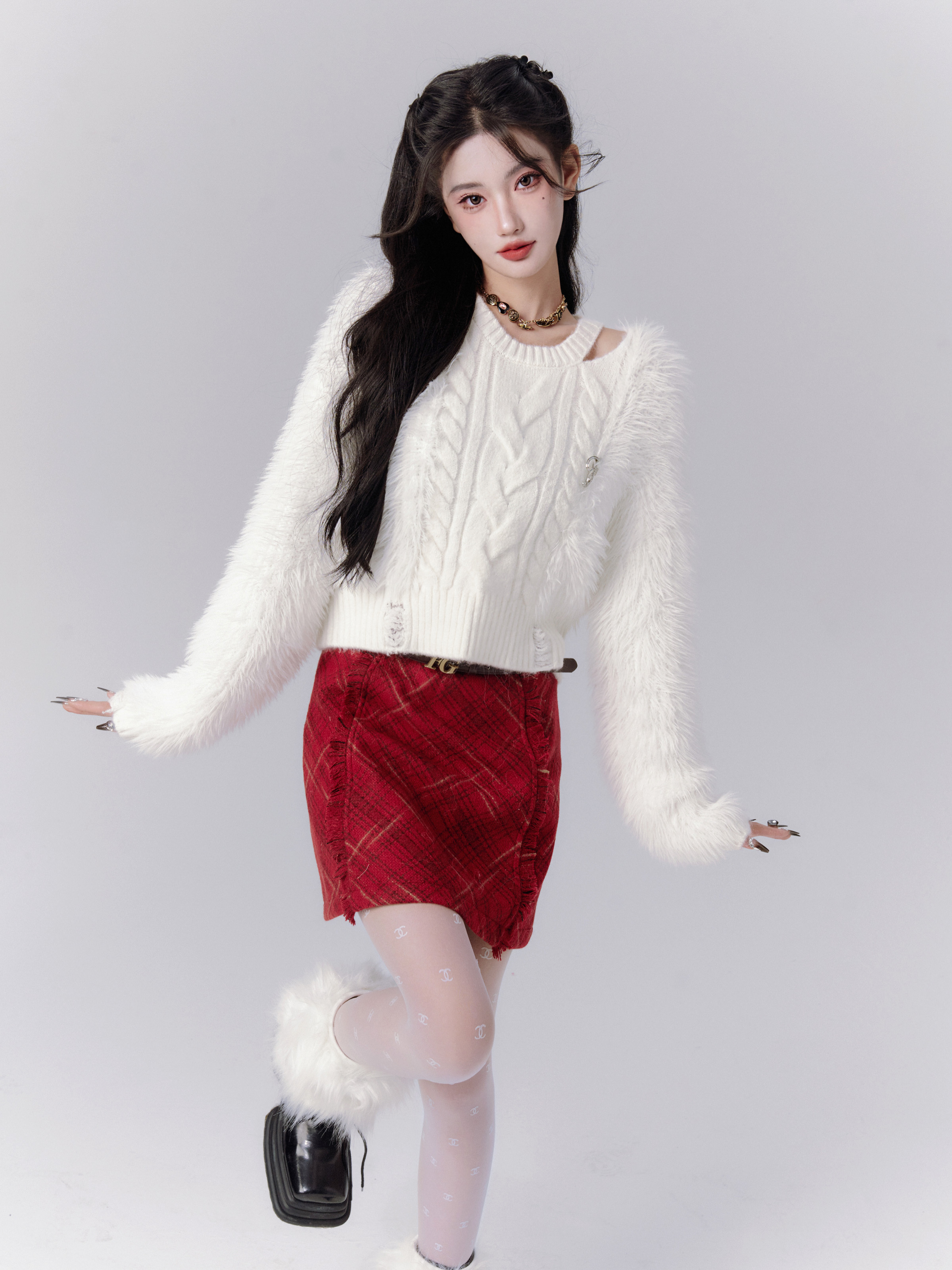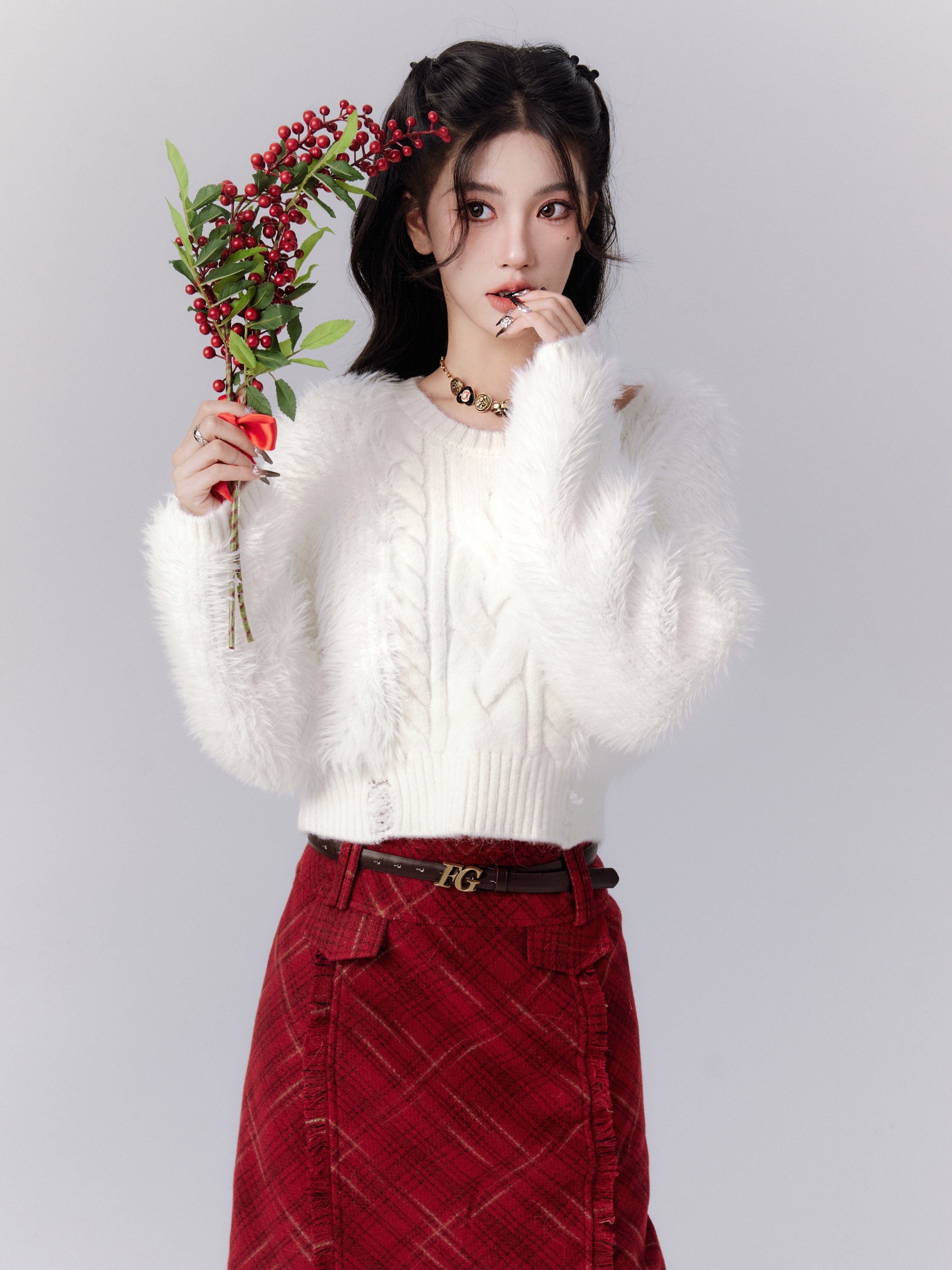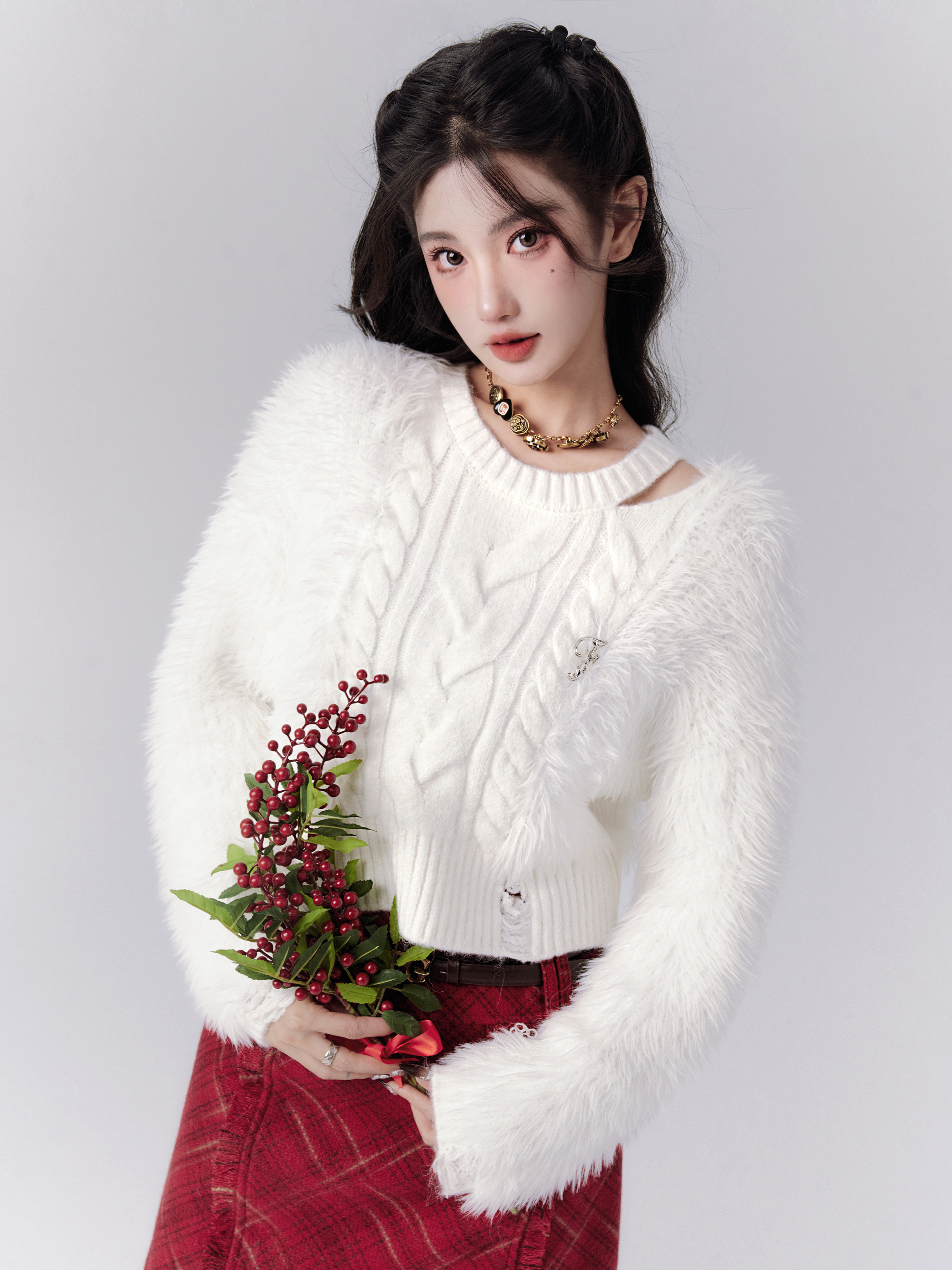 FGHT টুইস্টেড ফ্লাওয়ার নিটেড সাদা সোয়েটার