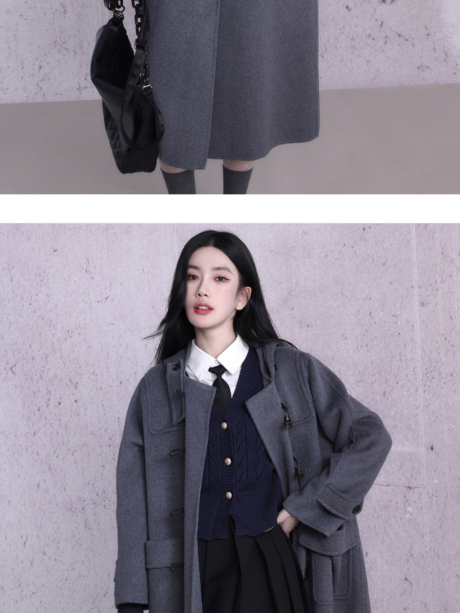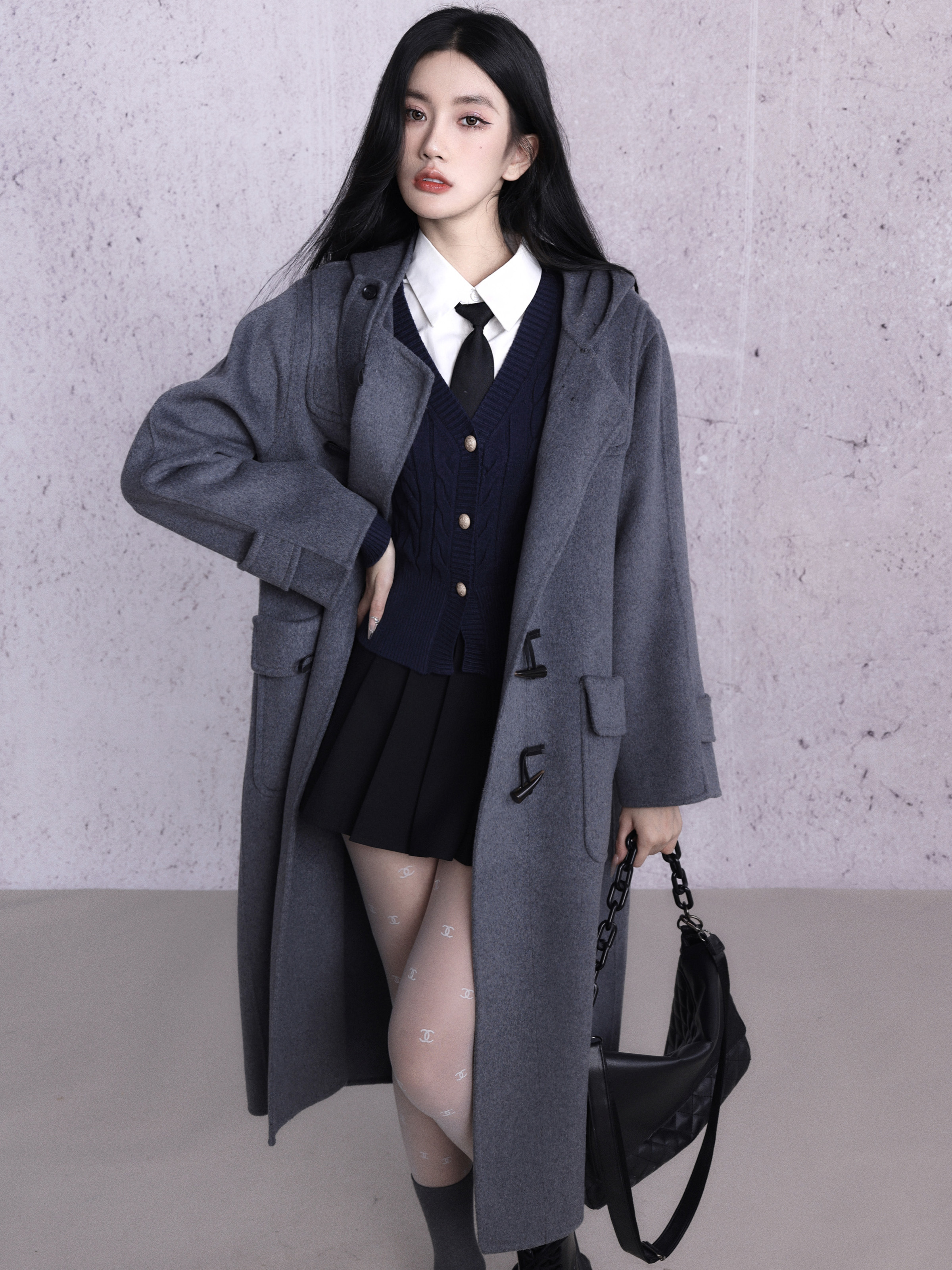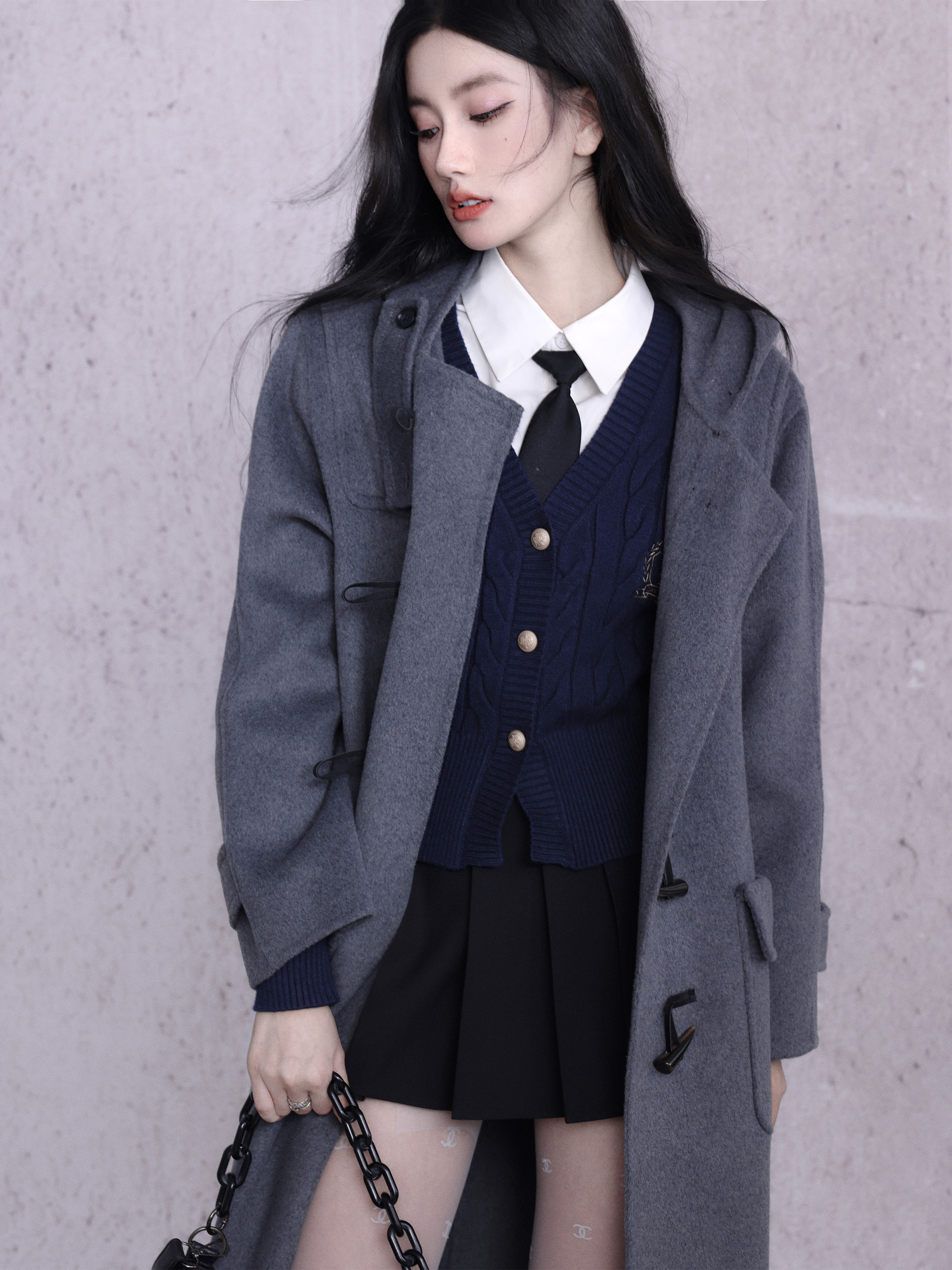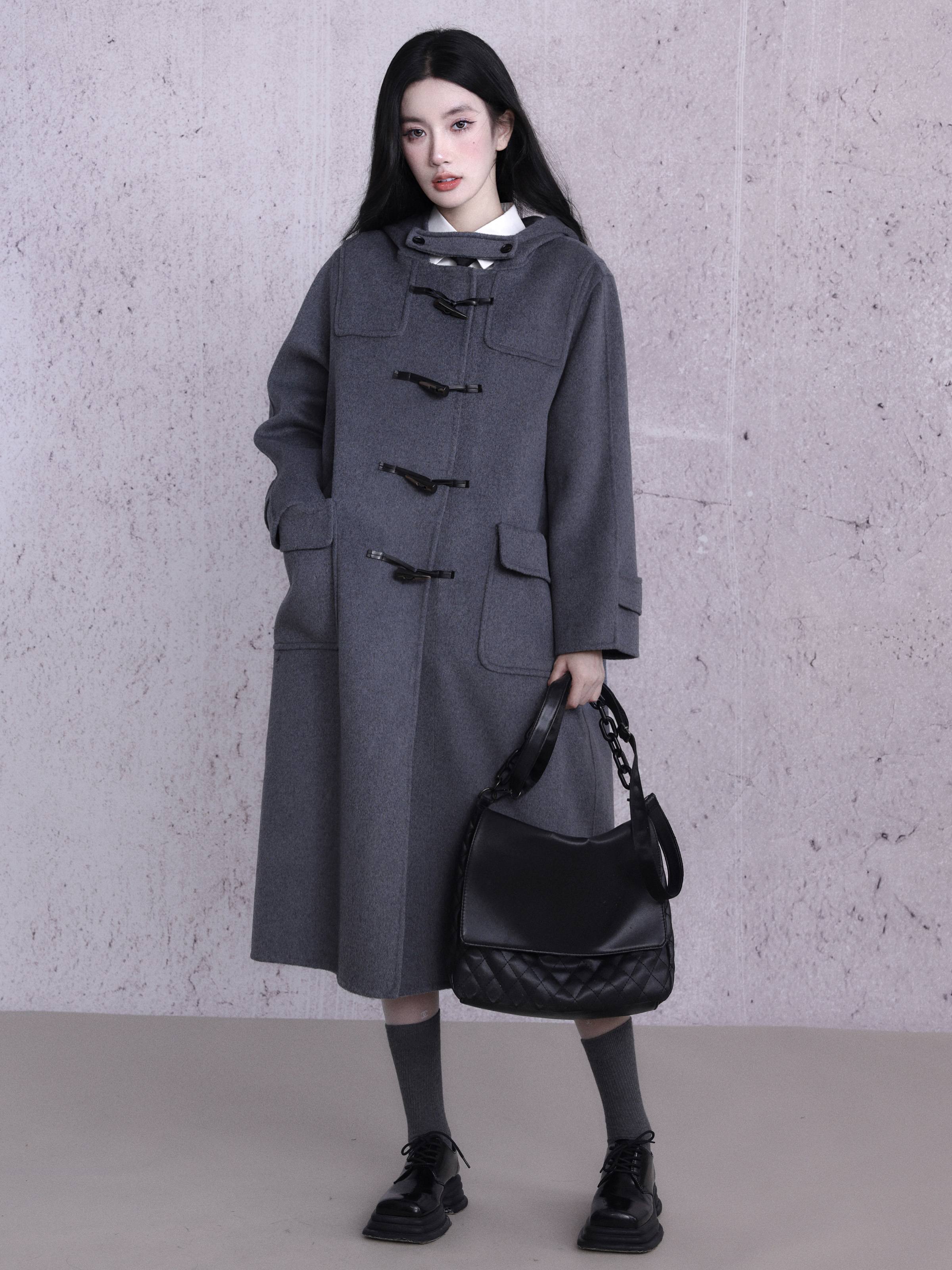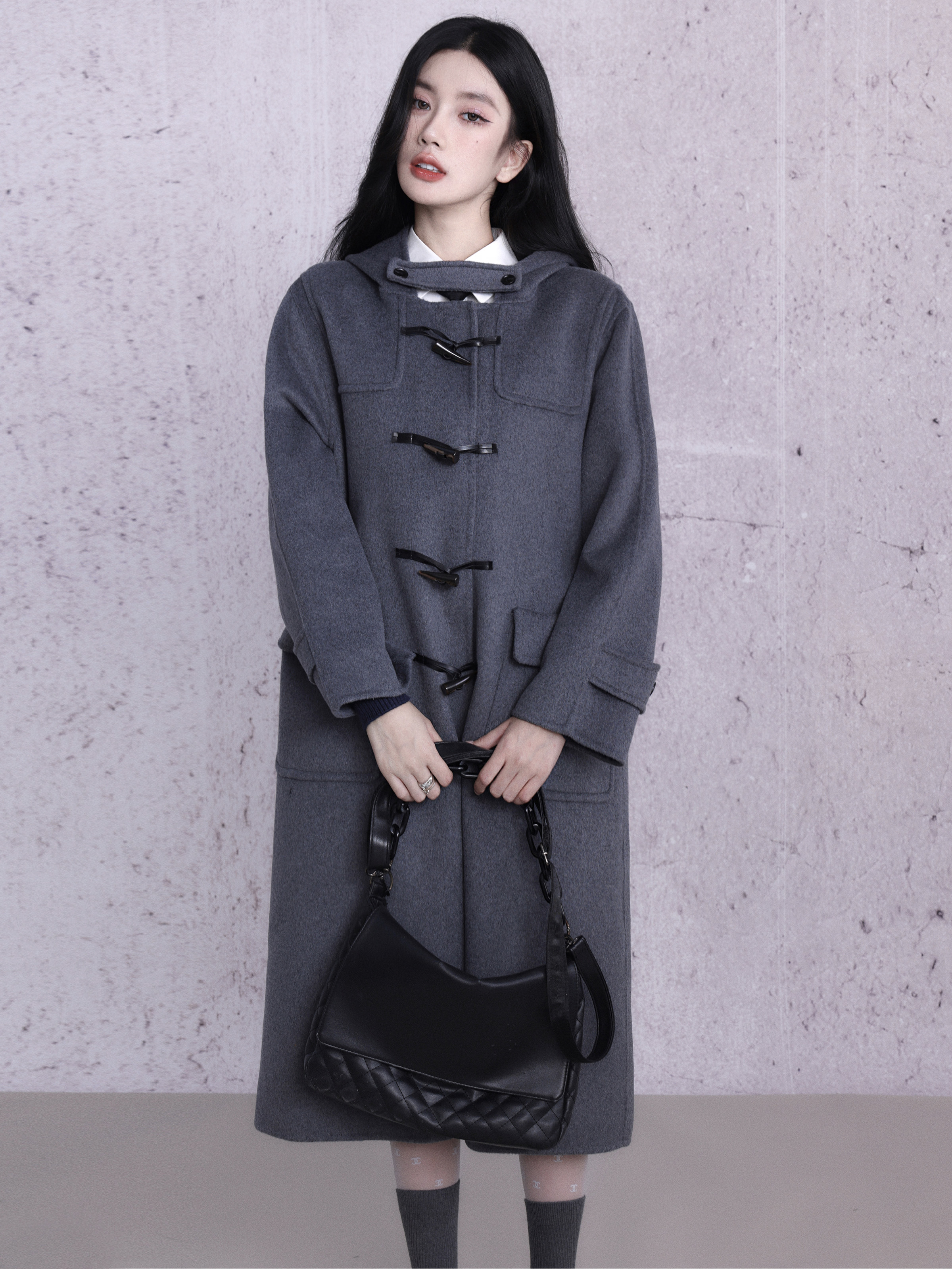 কাউহাইড বোতাম ডবল-পার্শ্বযুক্ত উলেন কোট