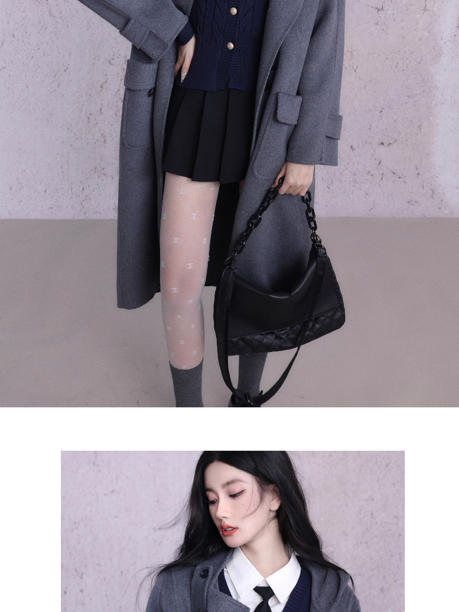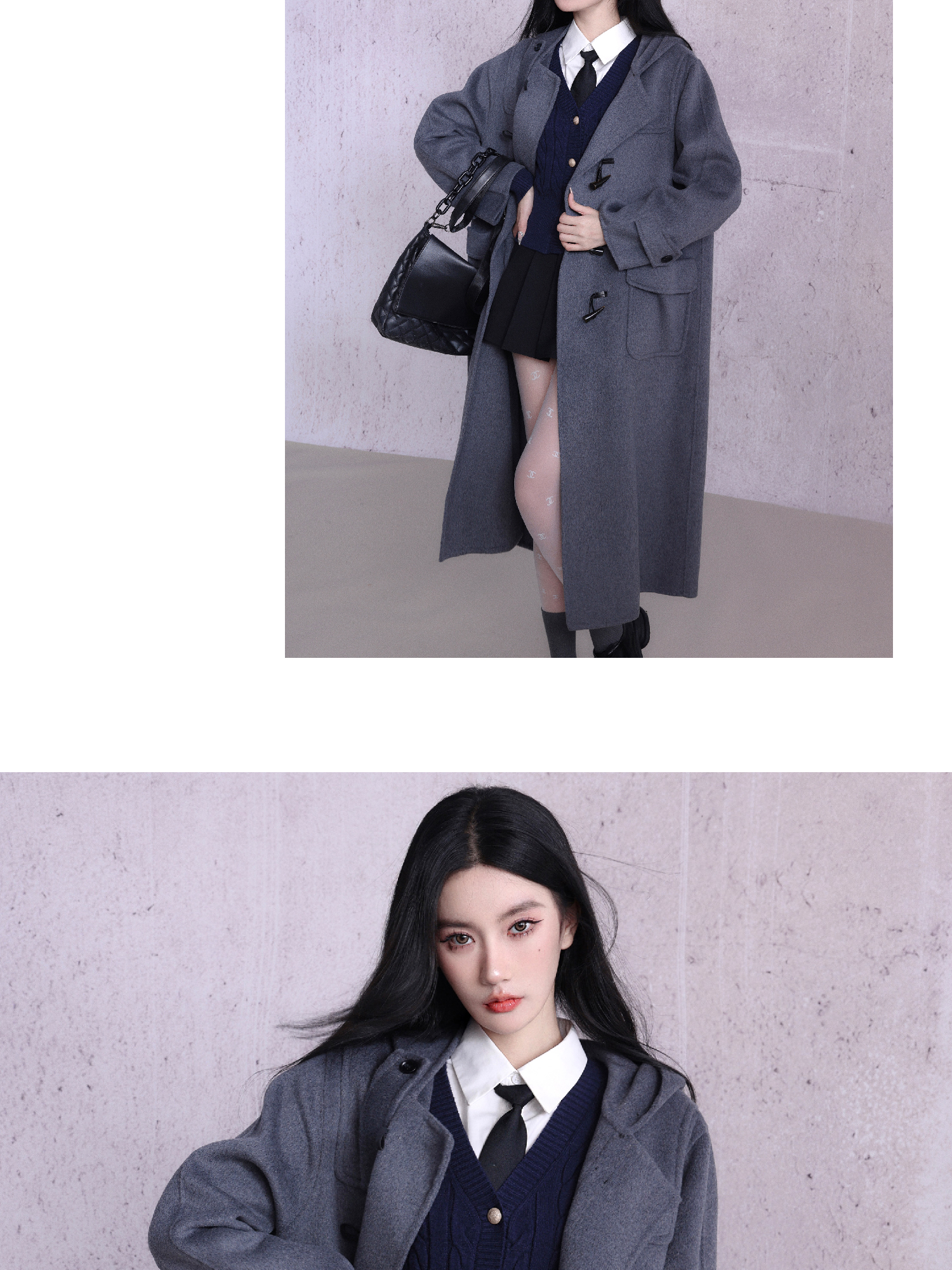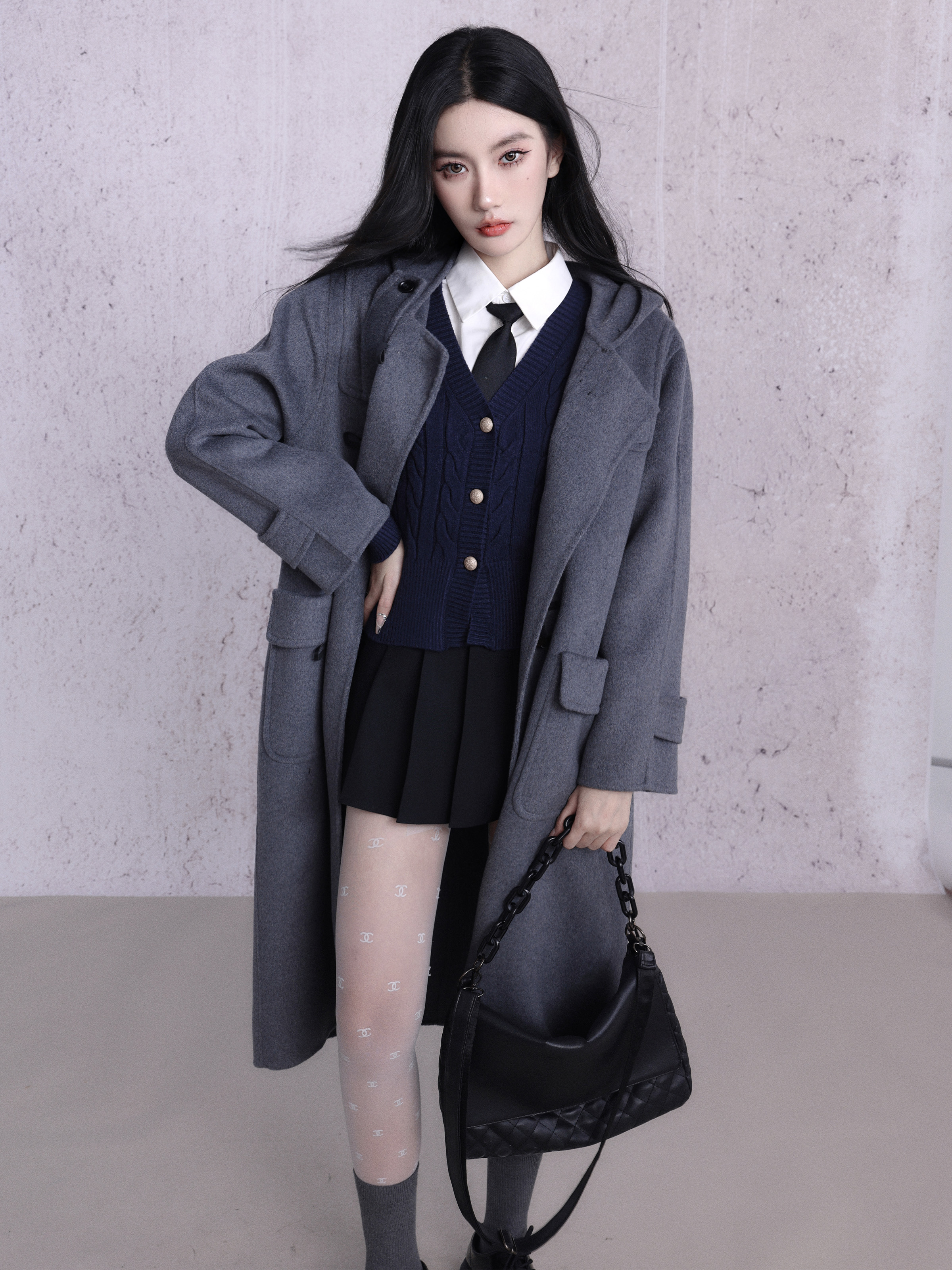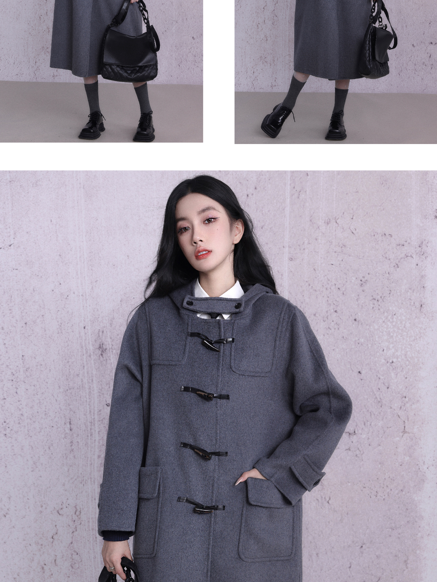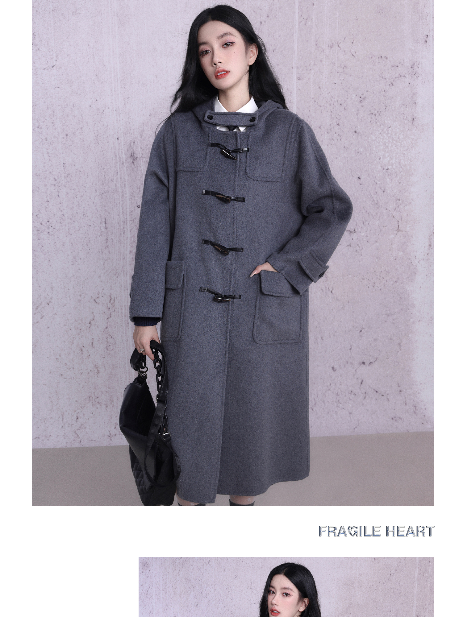 কাউহাইড বোতাম ডবল-পার্শ্বযুক্ত উলেন কোট