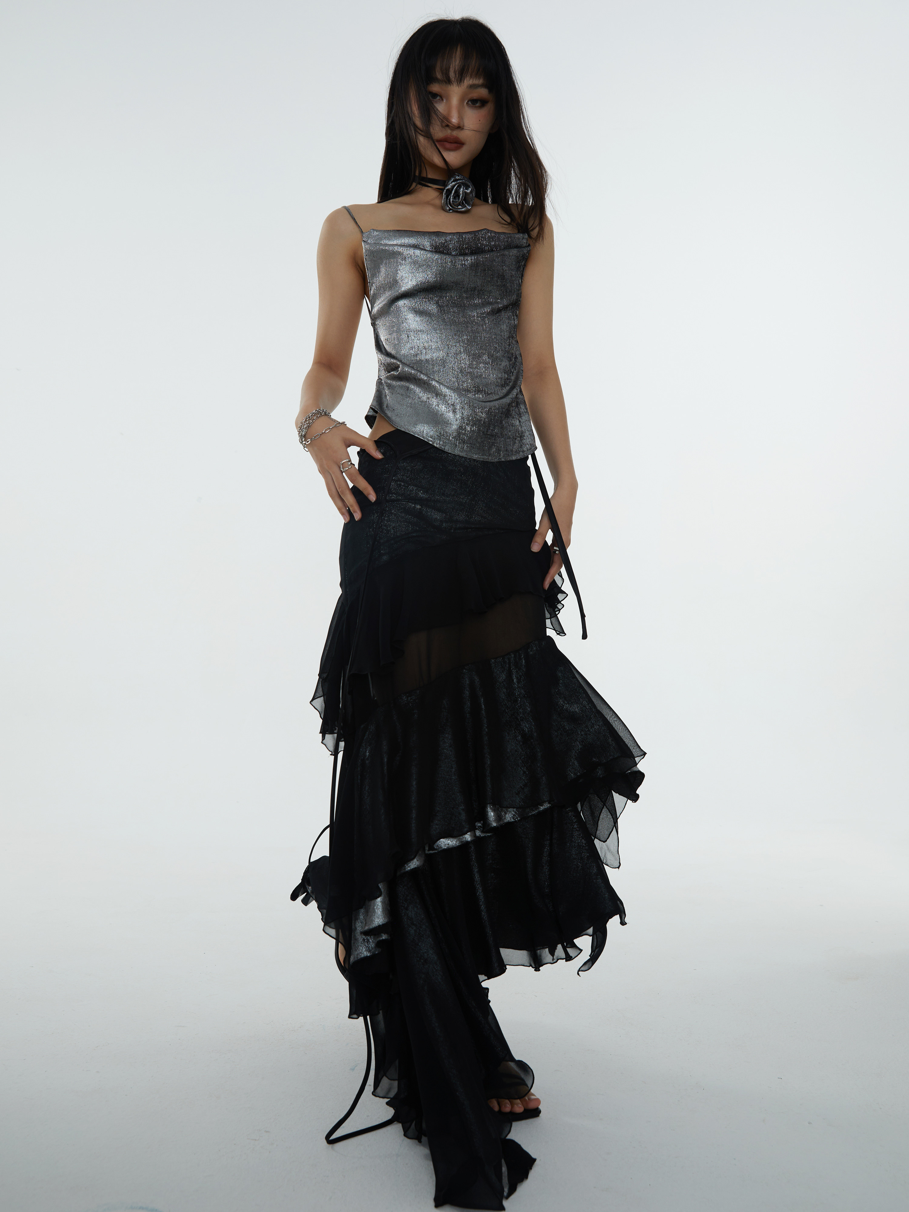 কালো পরী অনিয়মিত spliced খোলা লেগ হেভিওয়েট স্কার্ট