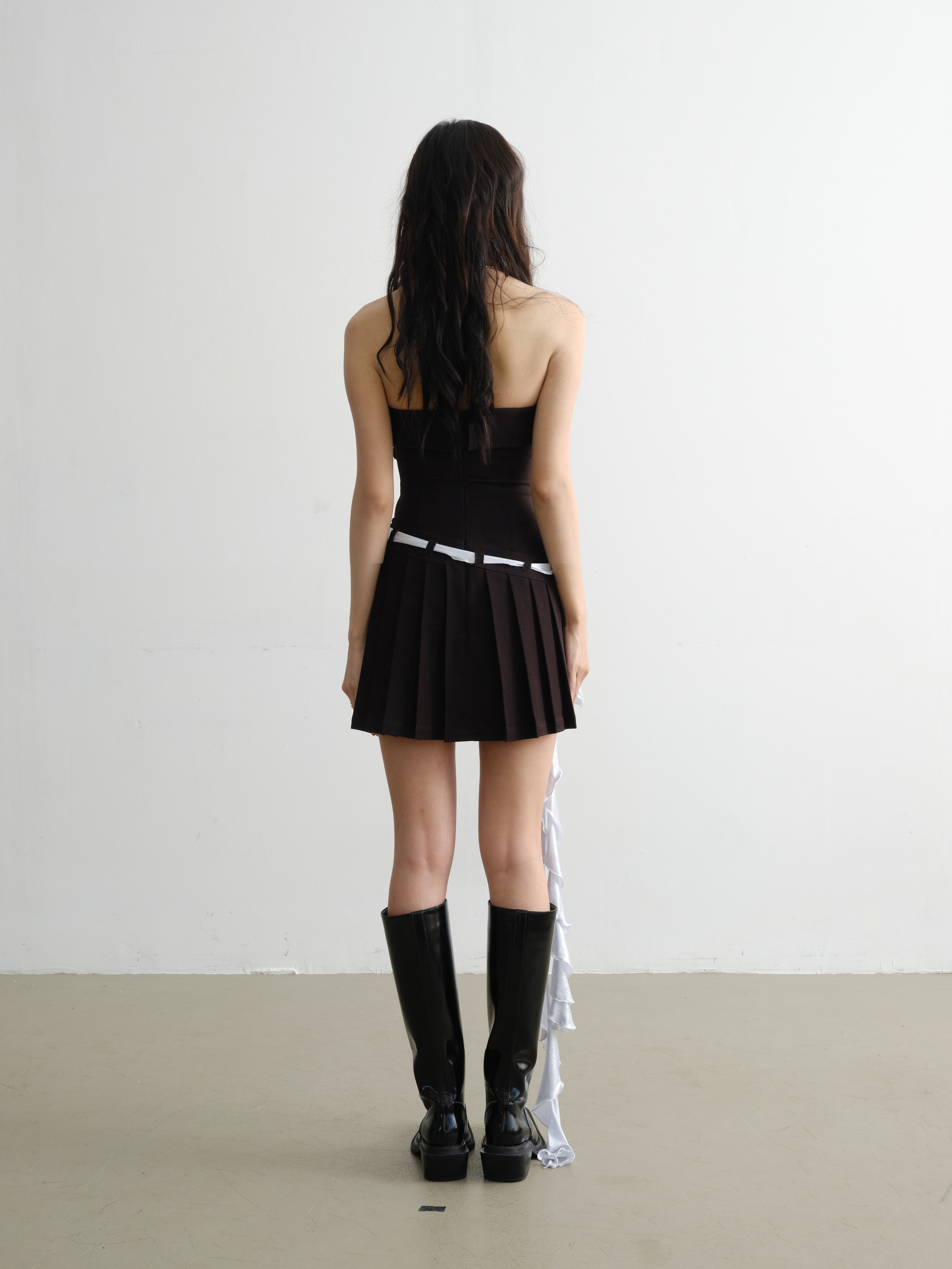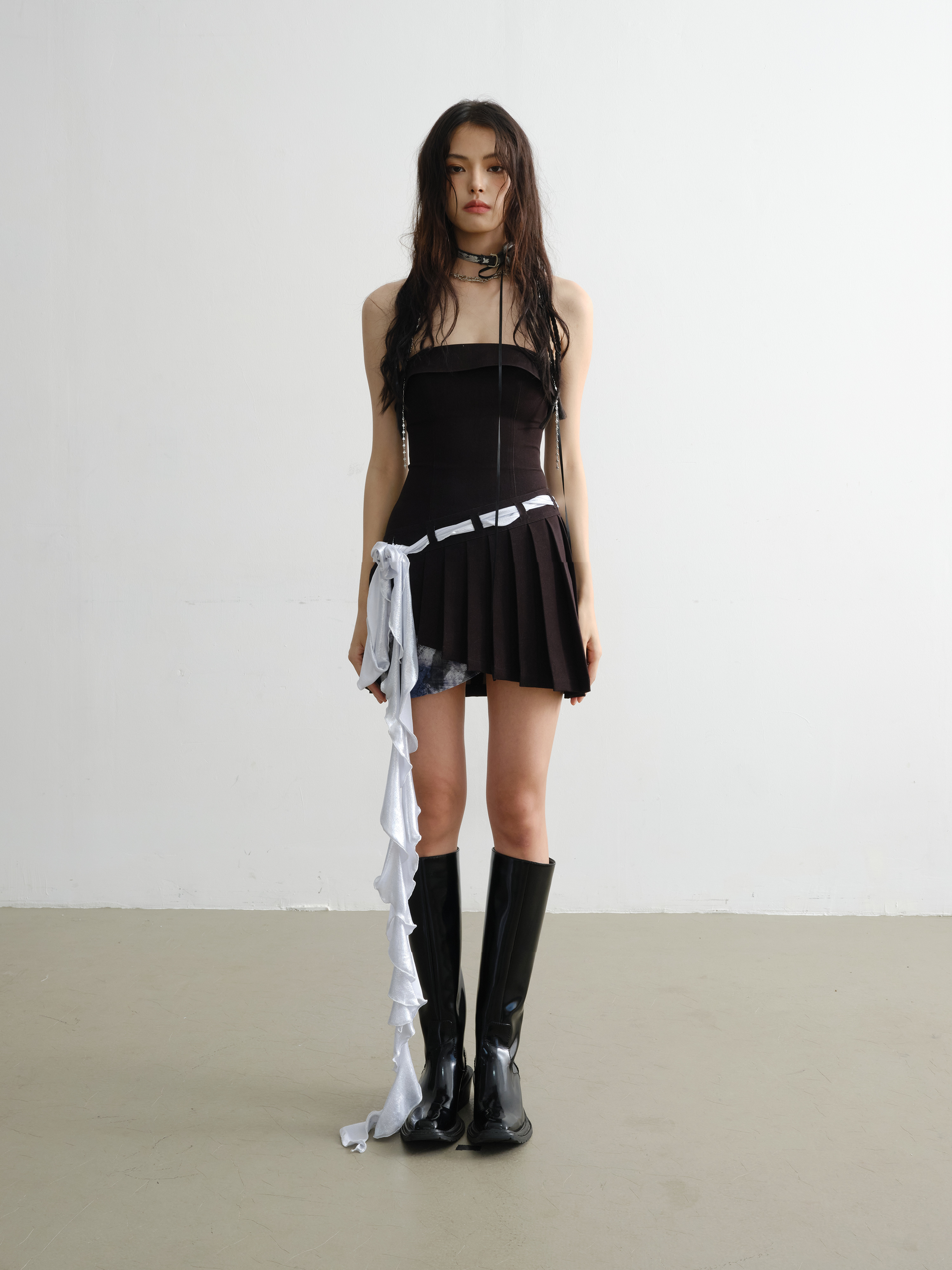 ব্যালে ইলাস্টিক ডেনিম মেটাল বেল্ট স্ট্র্যাপলেস স্কার্ট