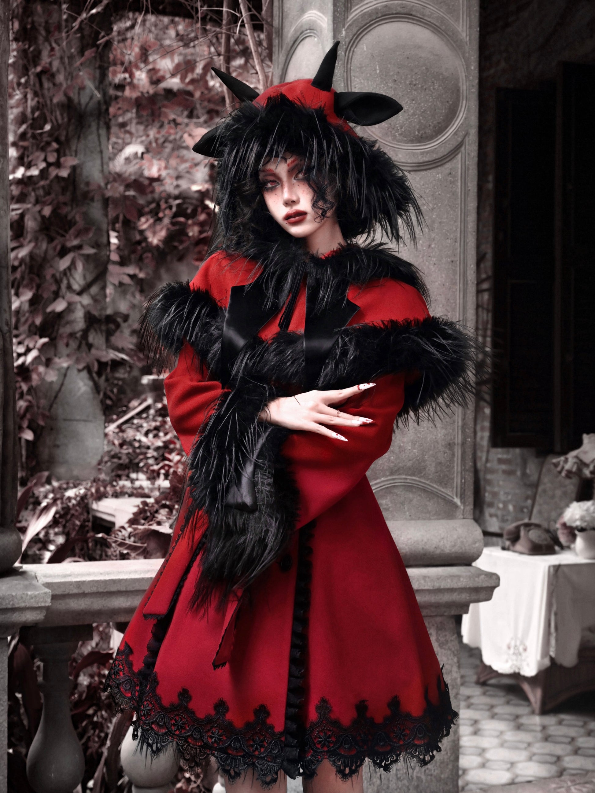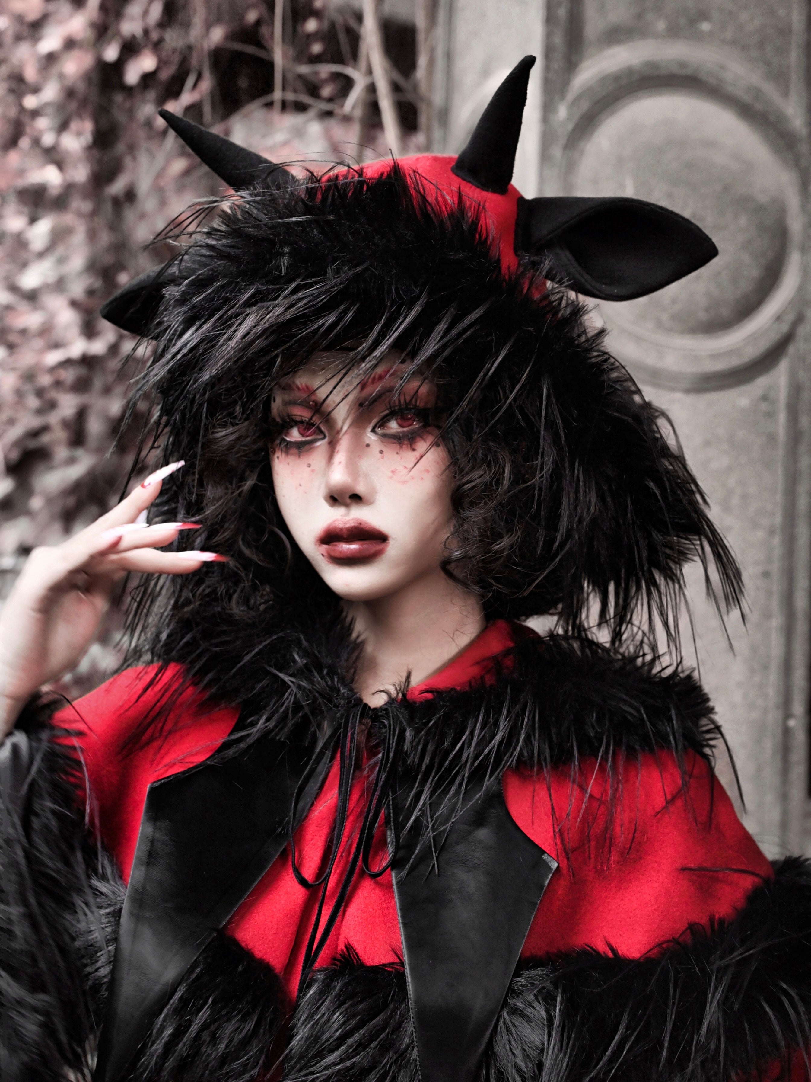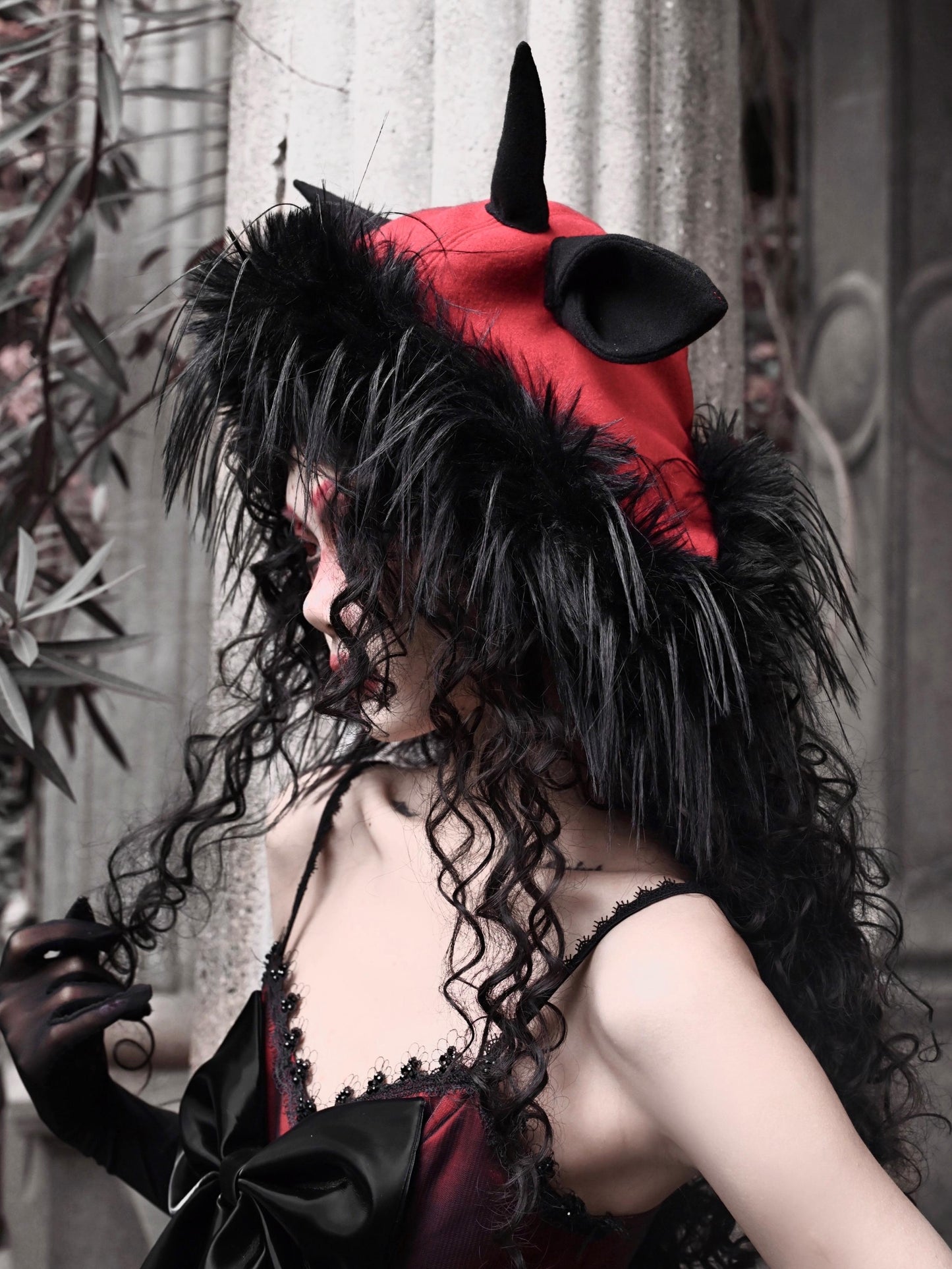 Gothic Devil Horn Fur Hat – New Year’s Warm Christmas Accessory