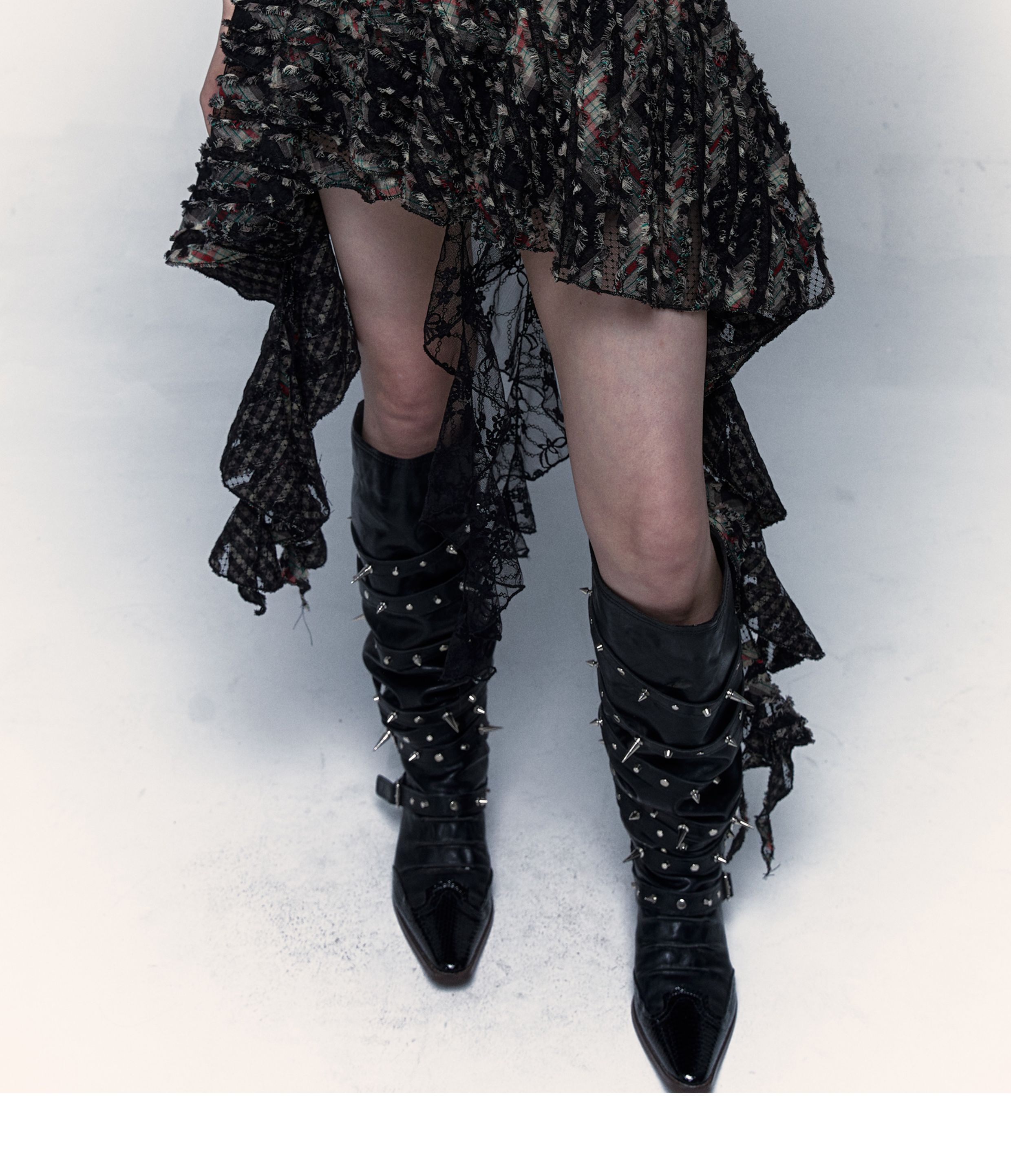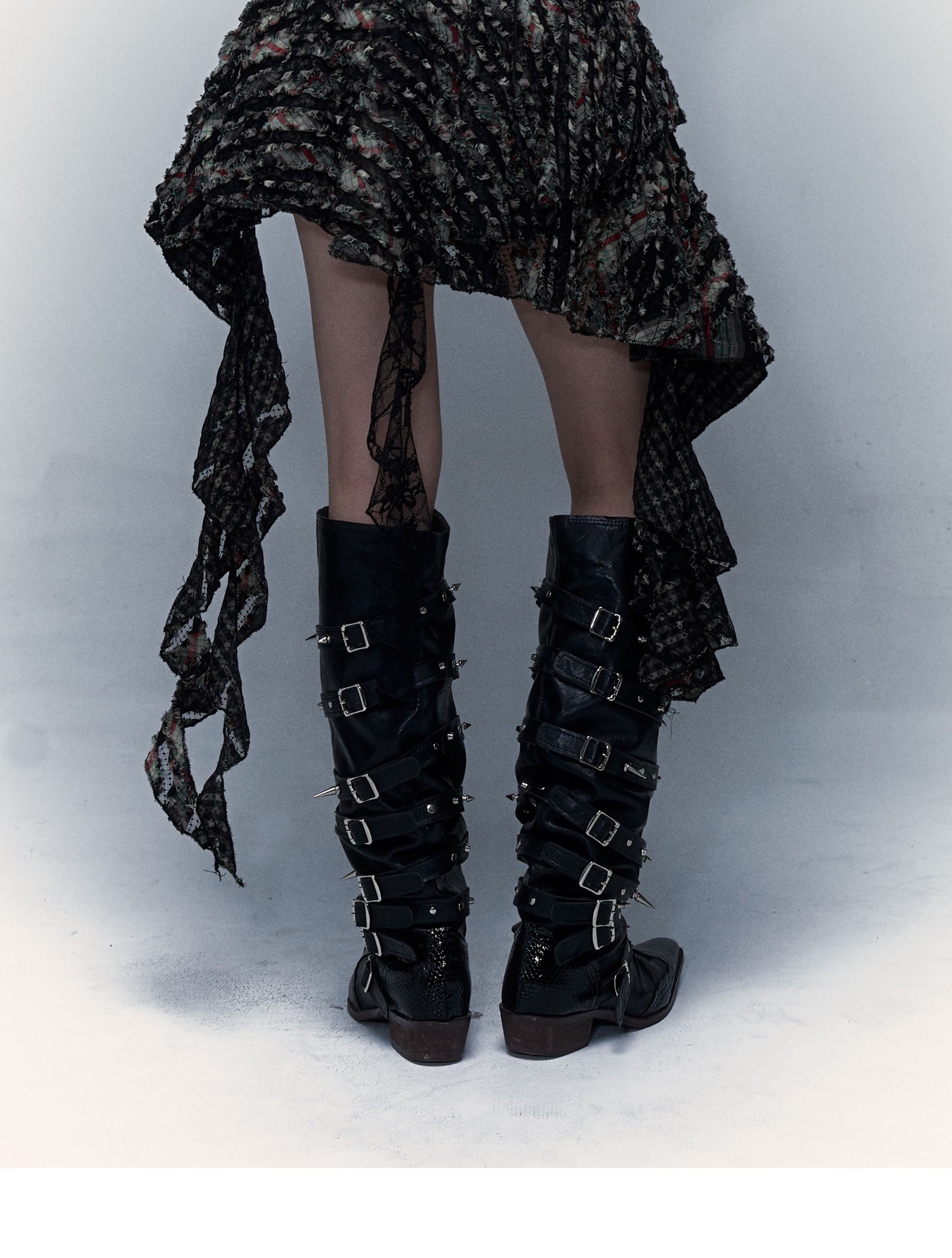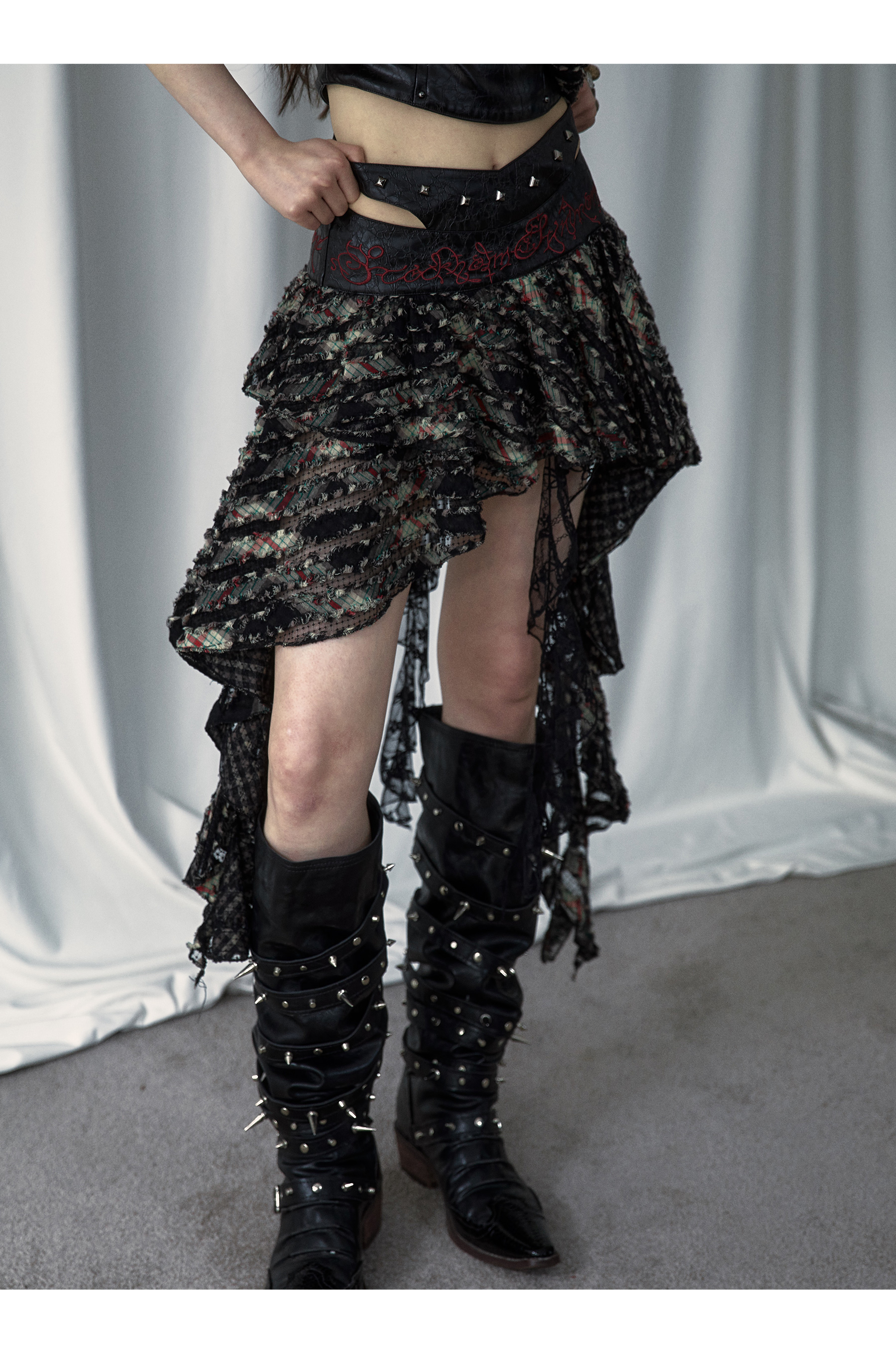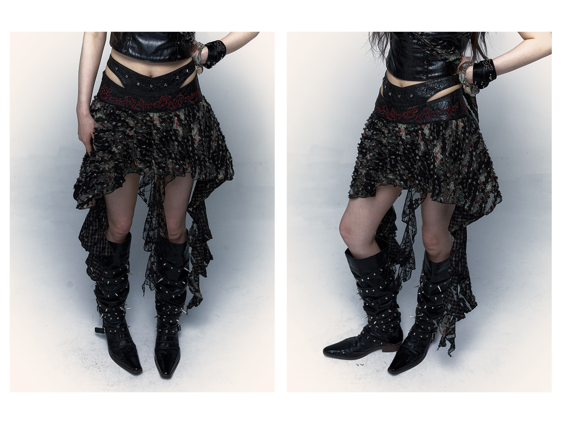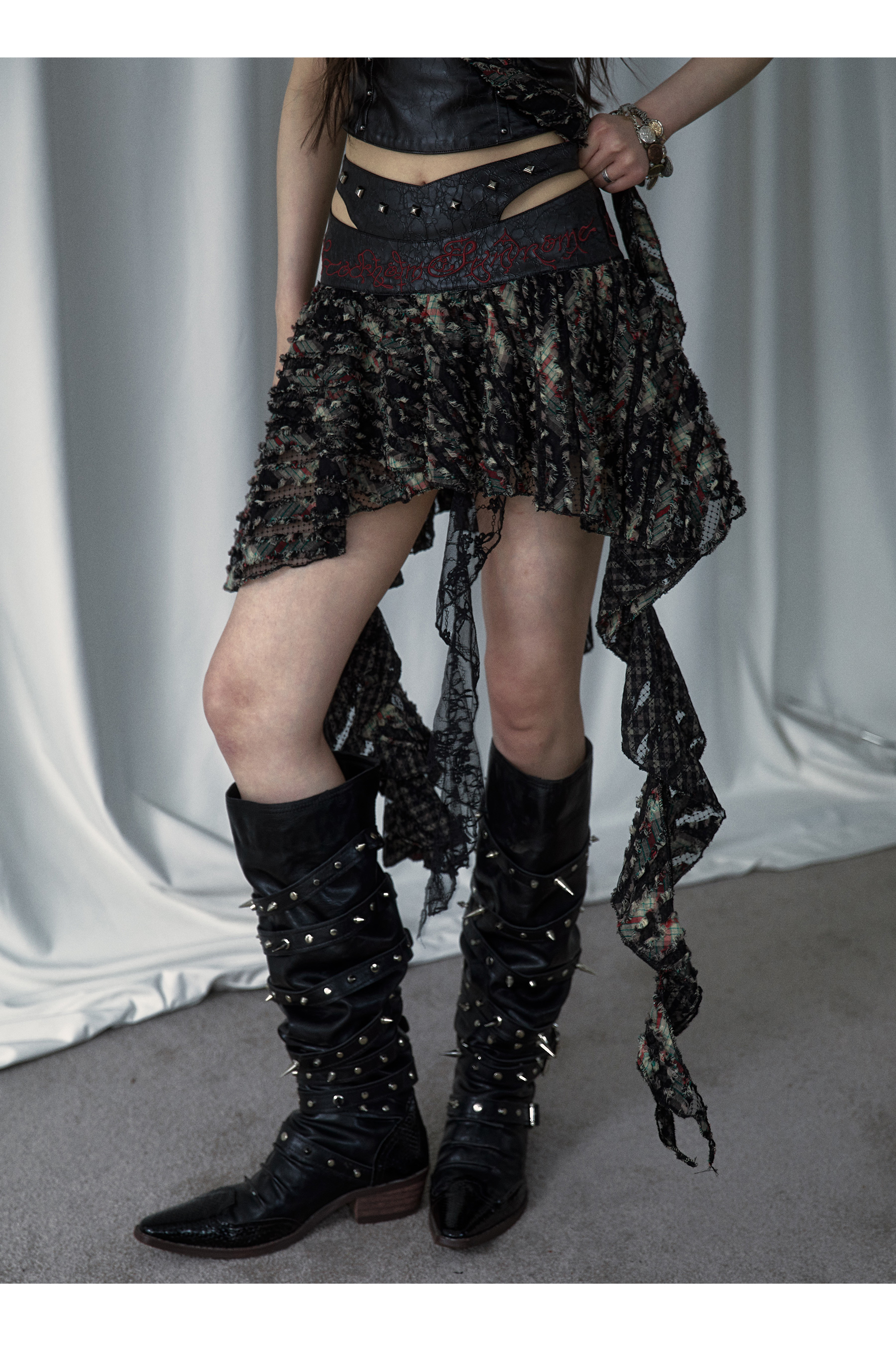 রক প্যাচওয়ার্ক লেদার টিউব টপ স্কার্ট | রেট্রো হেভি ইন্ডাস্ট্রি পাঙ্ক ডিজাইন