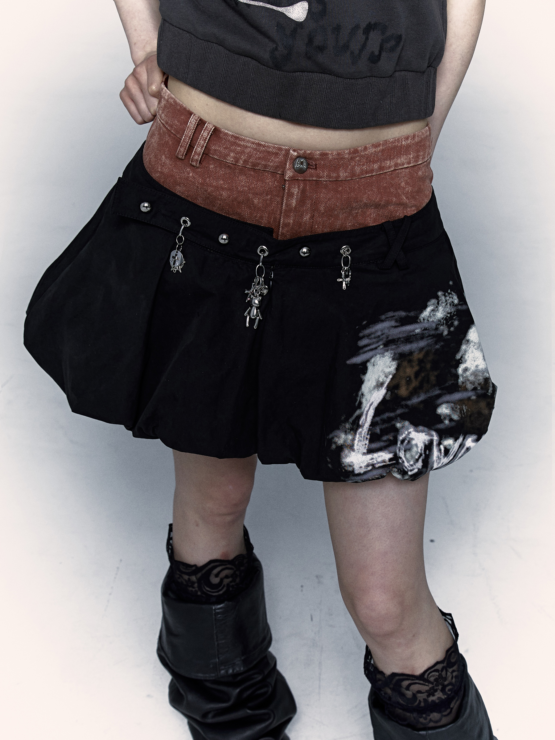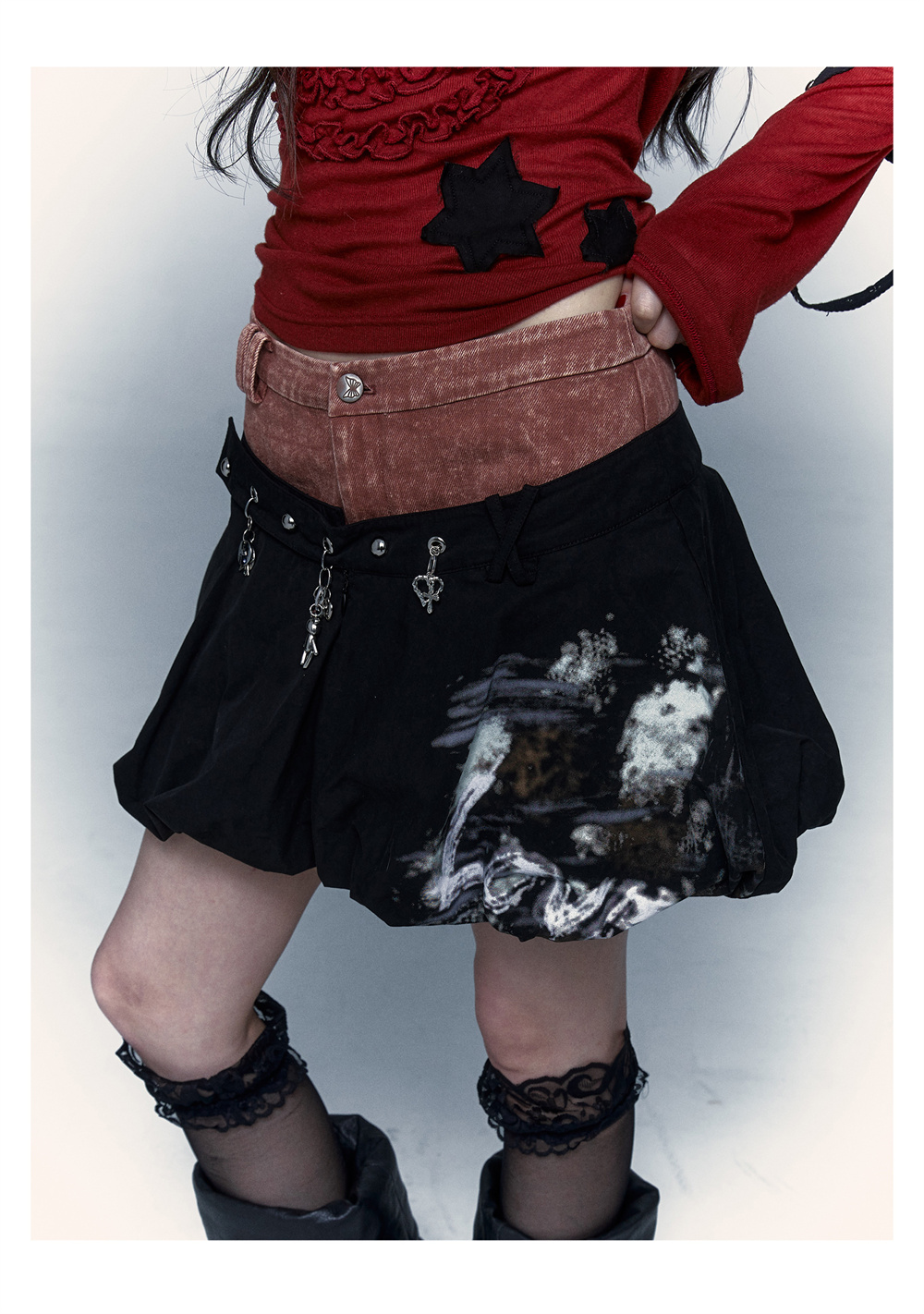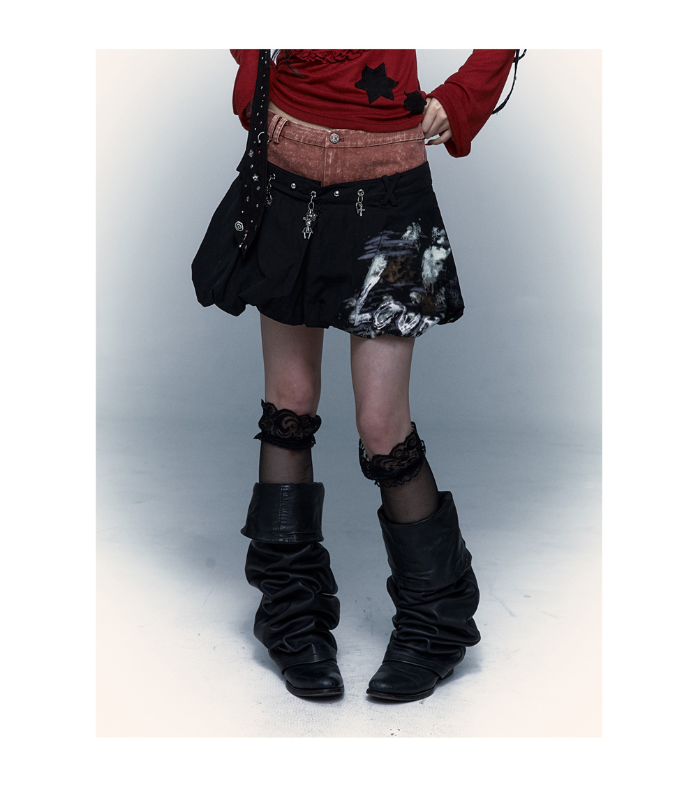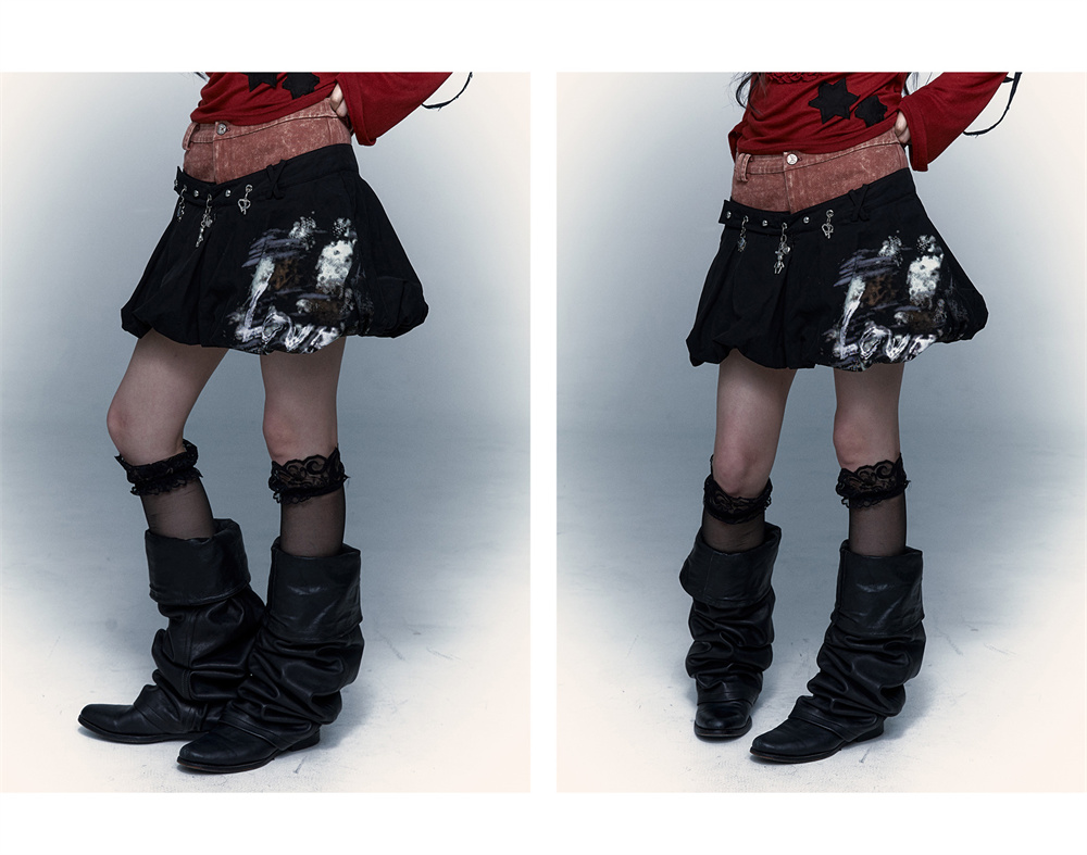প্যাচওয়ার্ক বাড স্কার্ট | নকল টু-পিস ধোয়া পাফ স্কার্ট ডিজাইন