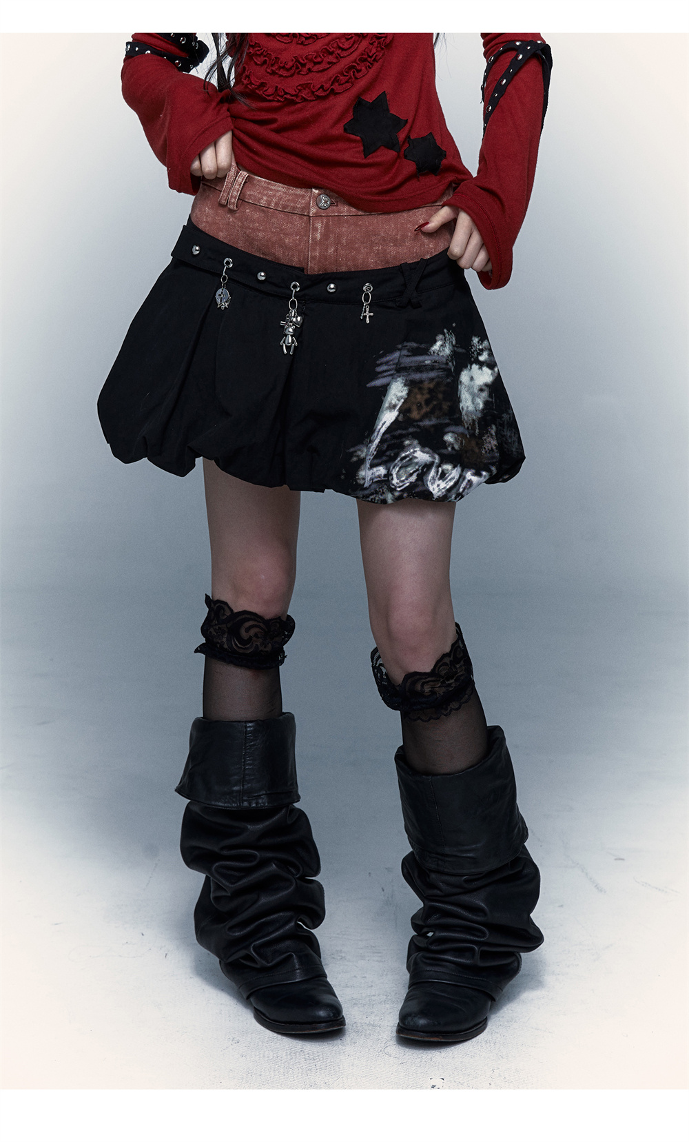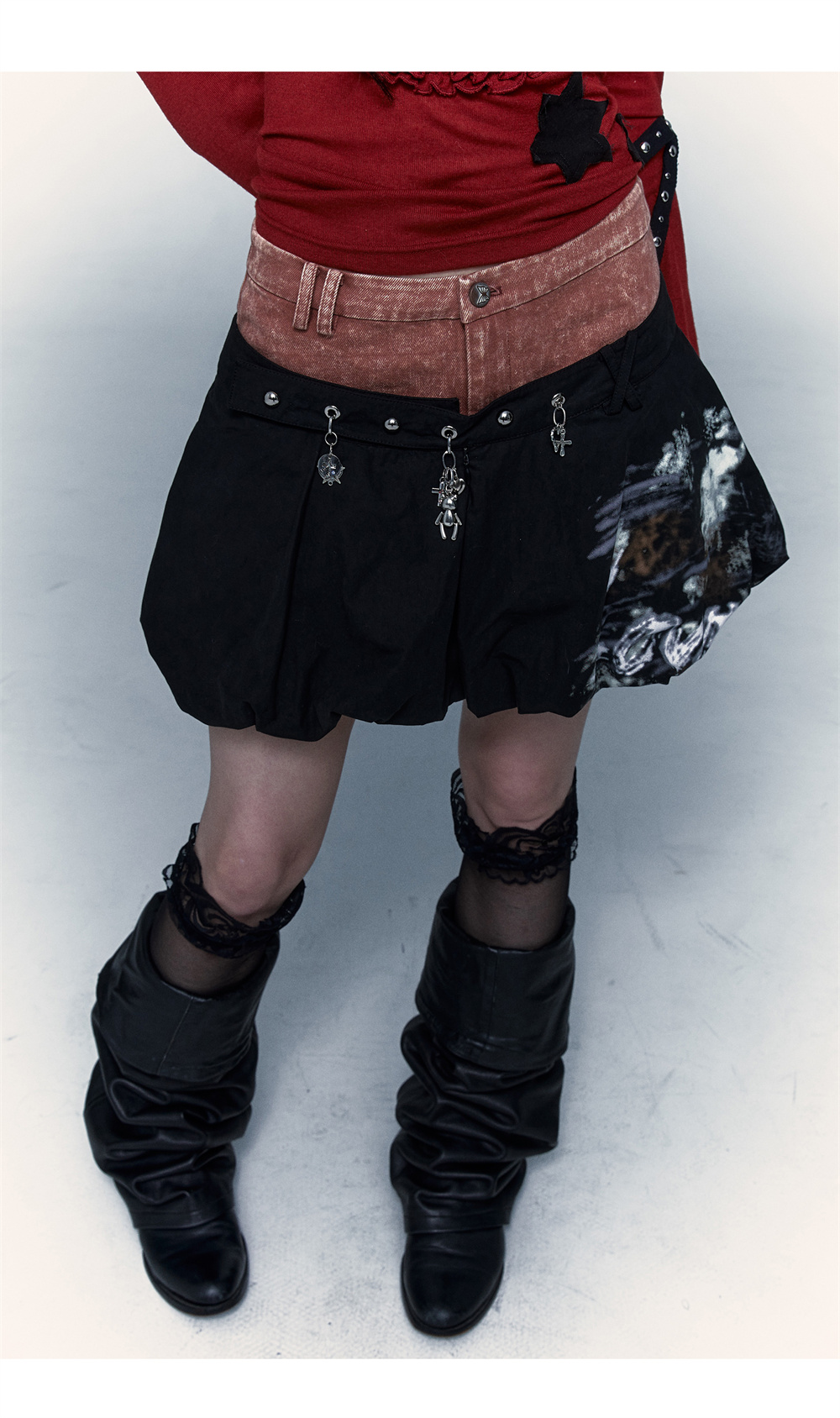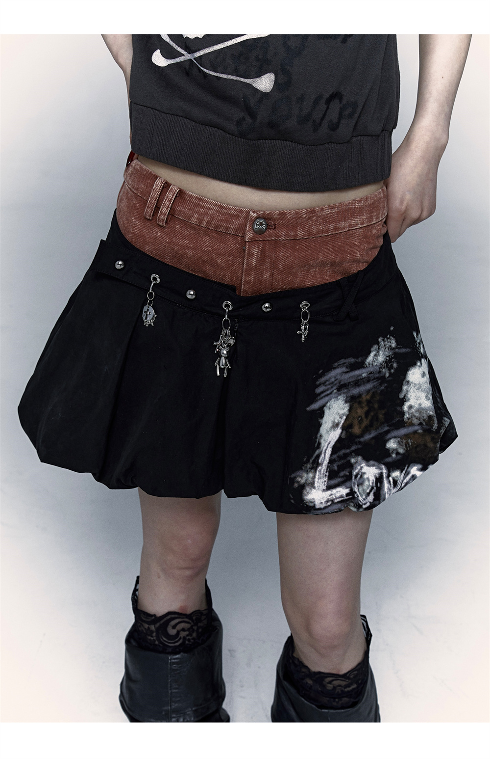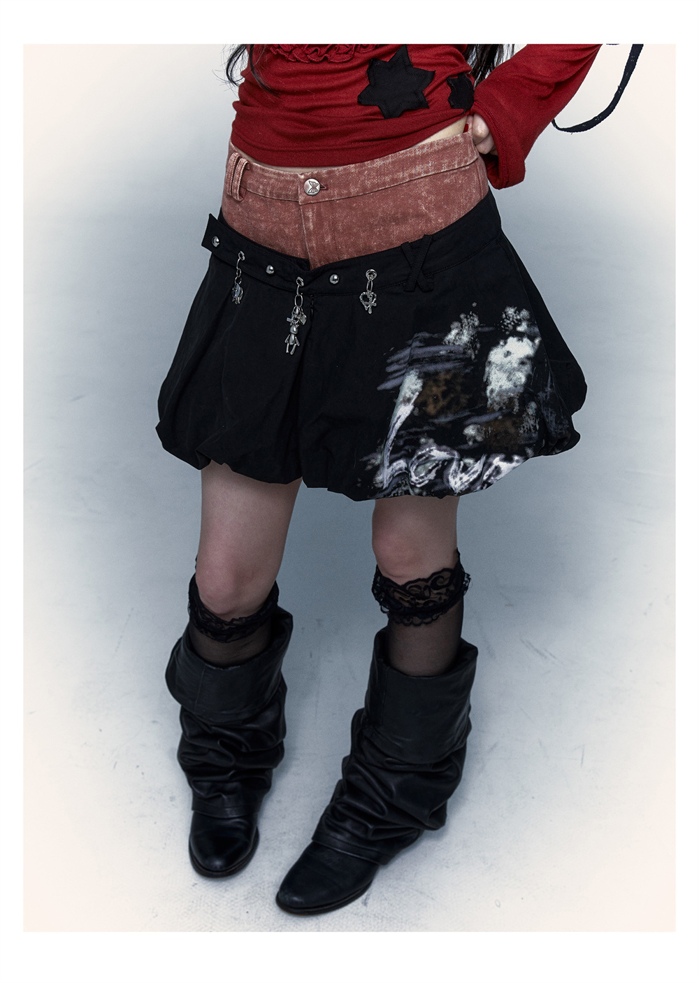 প্যাচওয়ার্ক বাড স্কার্ট | নকল টু-পিস ধোয়া পাফ স্কার্ট ডিজাইন
