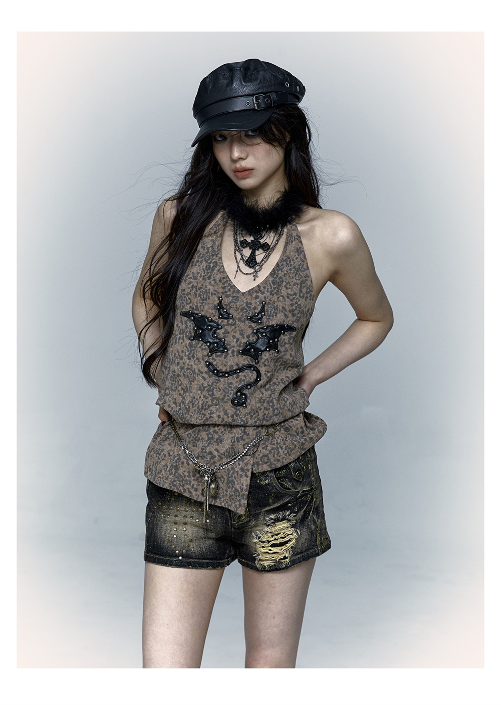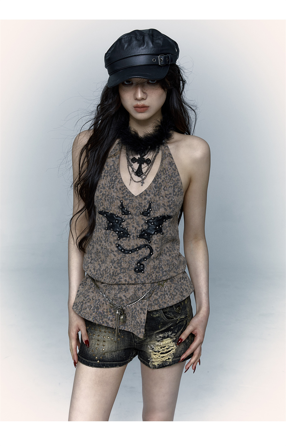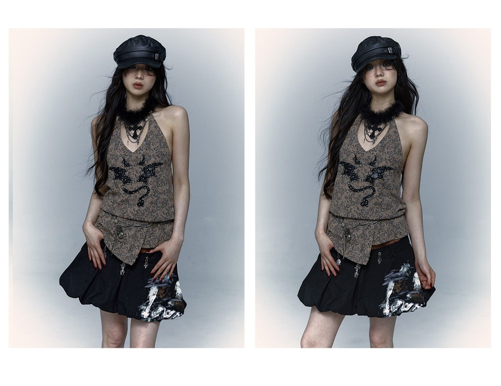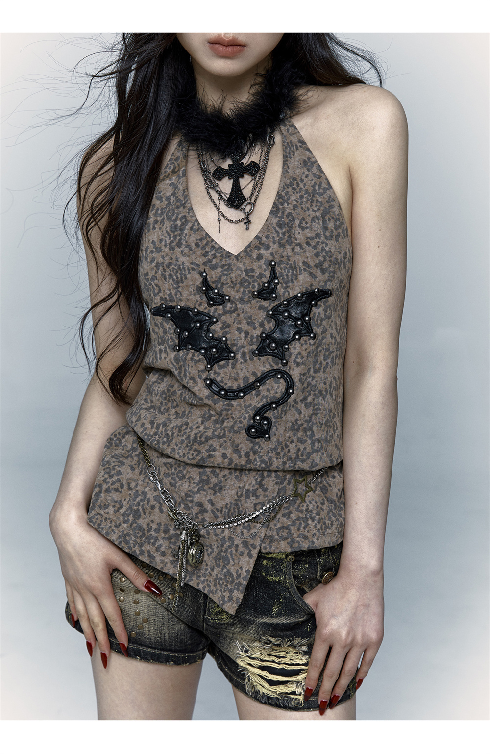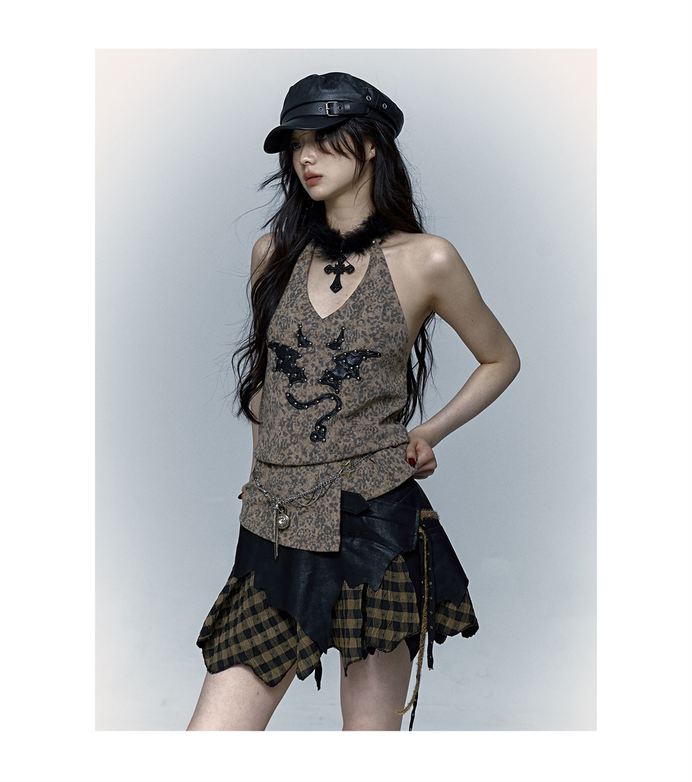 Leopard Print Rivet Halter Vest | রেট্রো পাঙ্ক ডেভিল এমব্রয়ডারি ডিজাইন